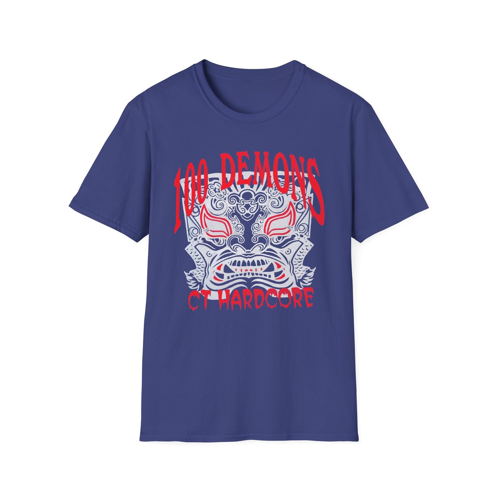 The 100 Demons 1998 demo unisex soft-style t-shirt puts a new spin on casual comfort. Made from very soft materials, this tee is 100% cotton for solid colors. Heather colors and sports grey include polyester. The shoulders have twill tape for improved durability. There are no side seams. The collar is made with ribbed knitting to prevent curling damage.