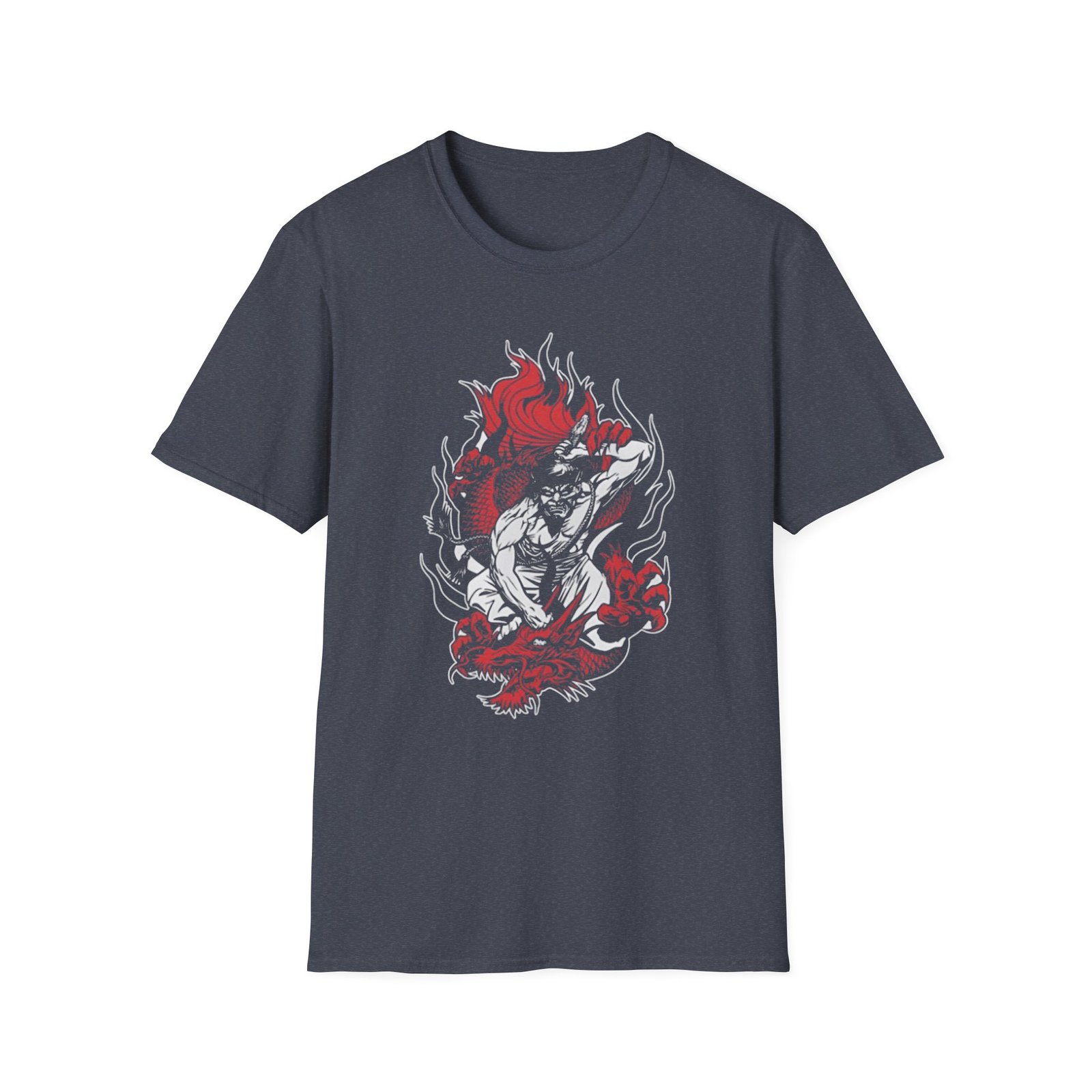 The 100 Demons Samurai Dragon unisex soft-style t-shirt puts a new spin on casual comfort. Made from very soft materials, this tee is 100% cotton for solid colors. Heather colors and sports grey include polyester. The shoulders have twill tape for improved durability. There are no side seams. The collar is made with ribbed knitting to prevent curling damage.