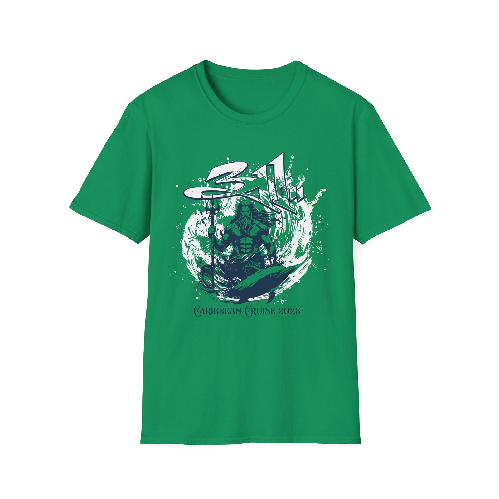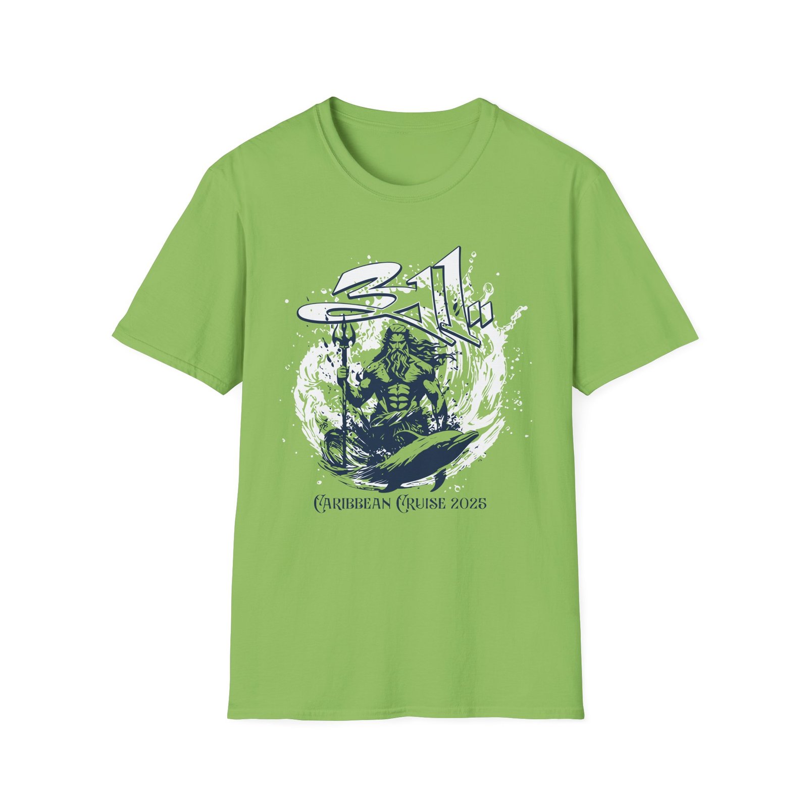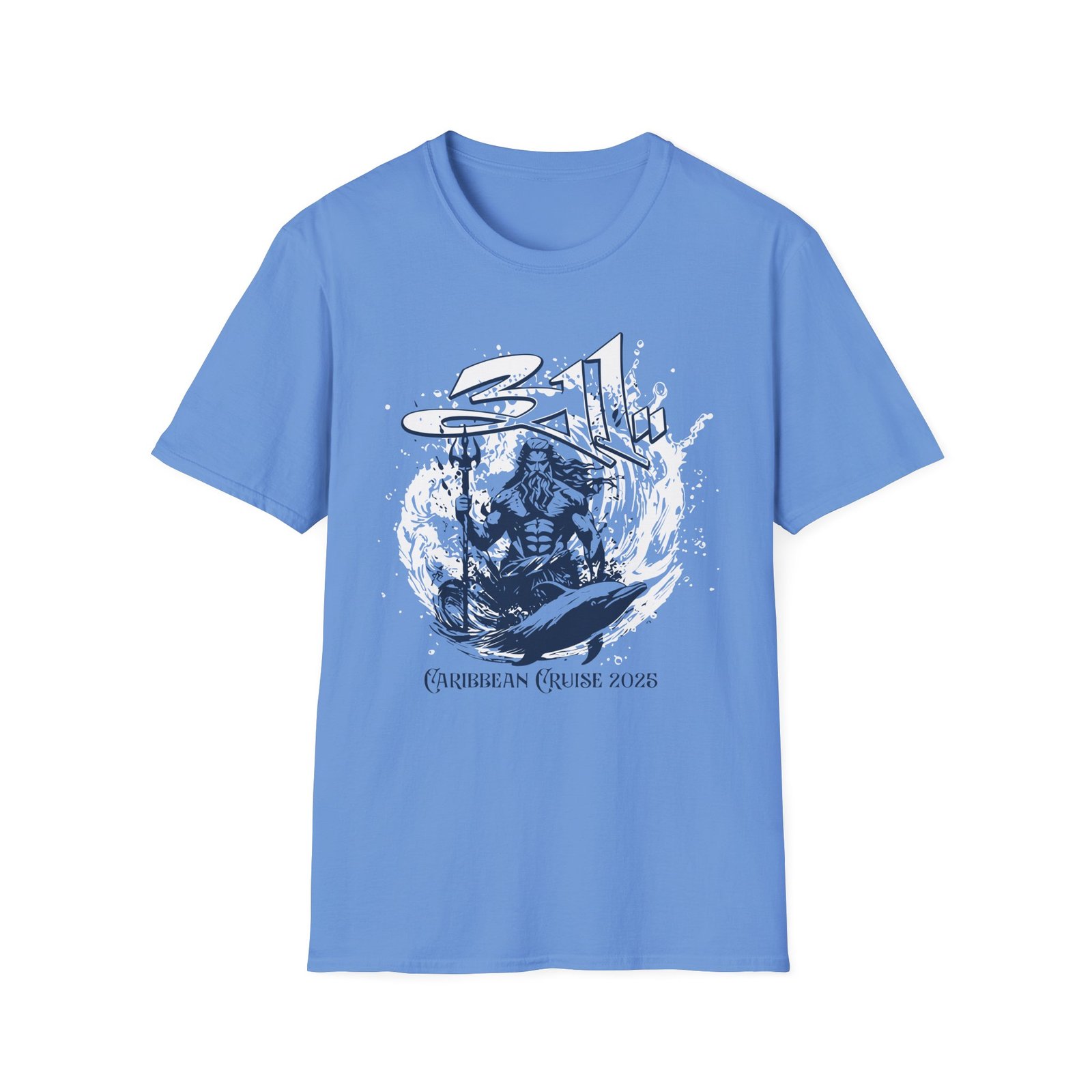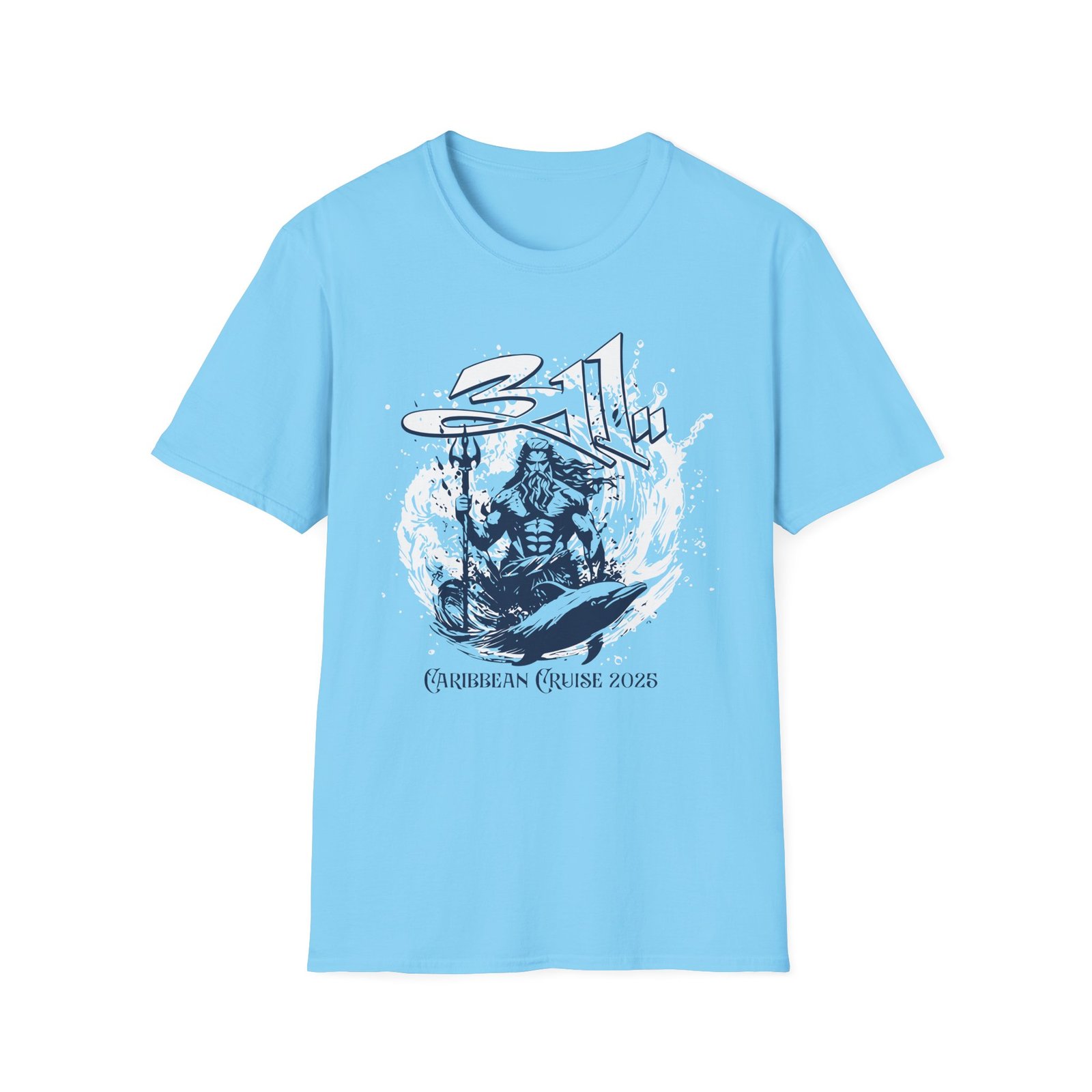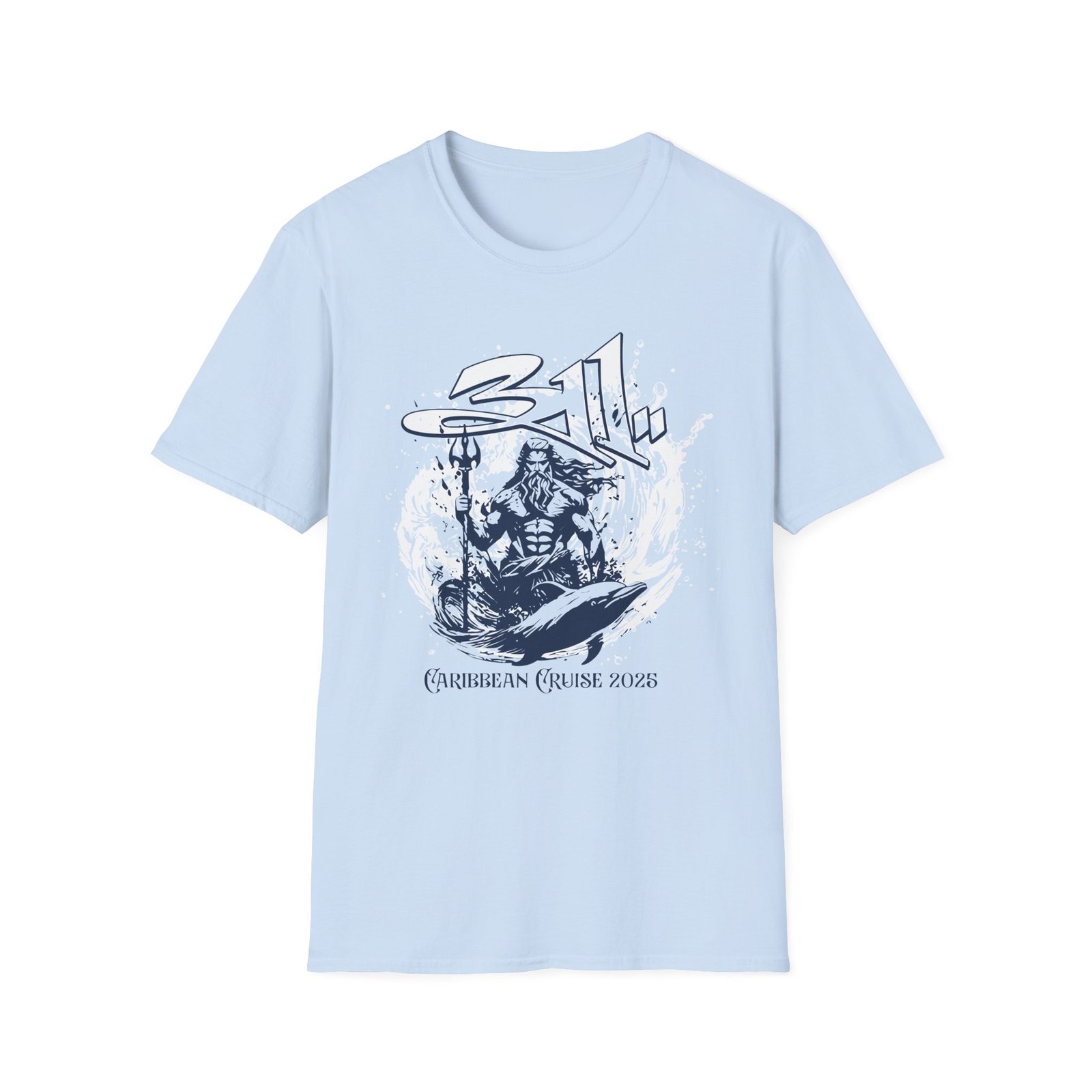 The 311 Caribbean Cruise 2025 Poseidon unisex soft-style t-shirt puts a new spin on casual comfort. Made from very soft materials, this tee is 100% cotton for solid colors. Heather colors and sports grey include polyester. The shoulders have twill tape for improved durability. There are no side seams. The collar is made with ribbed knitting to prevent curling damage.