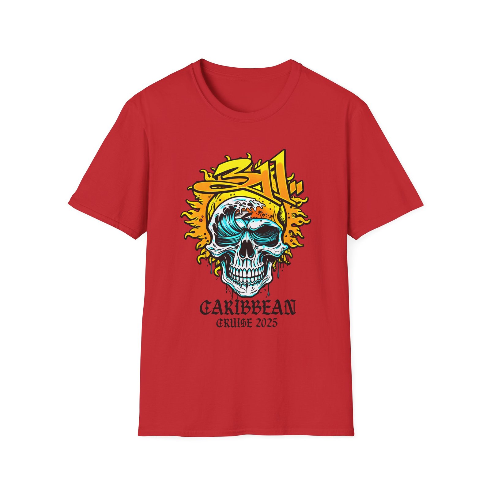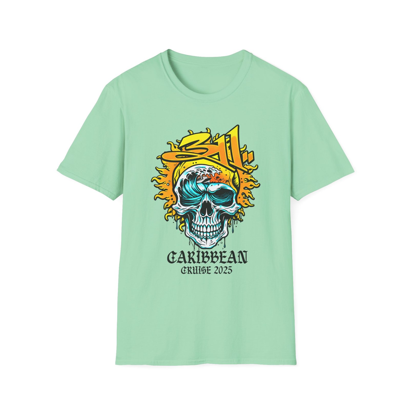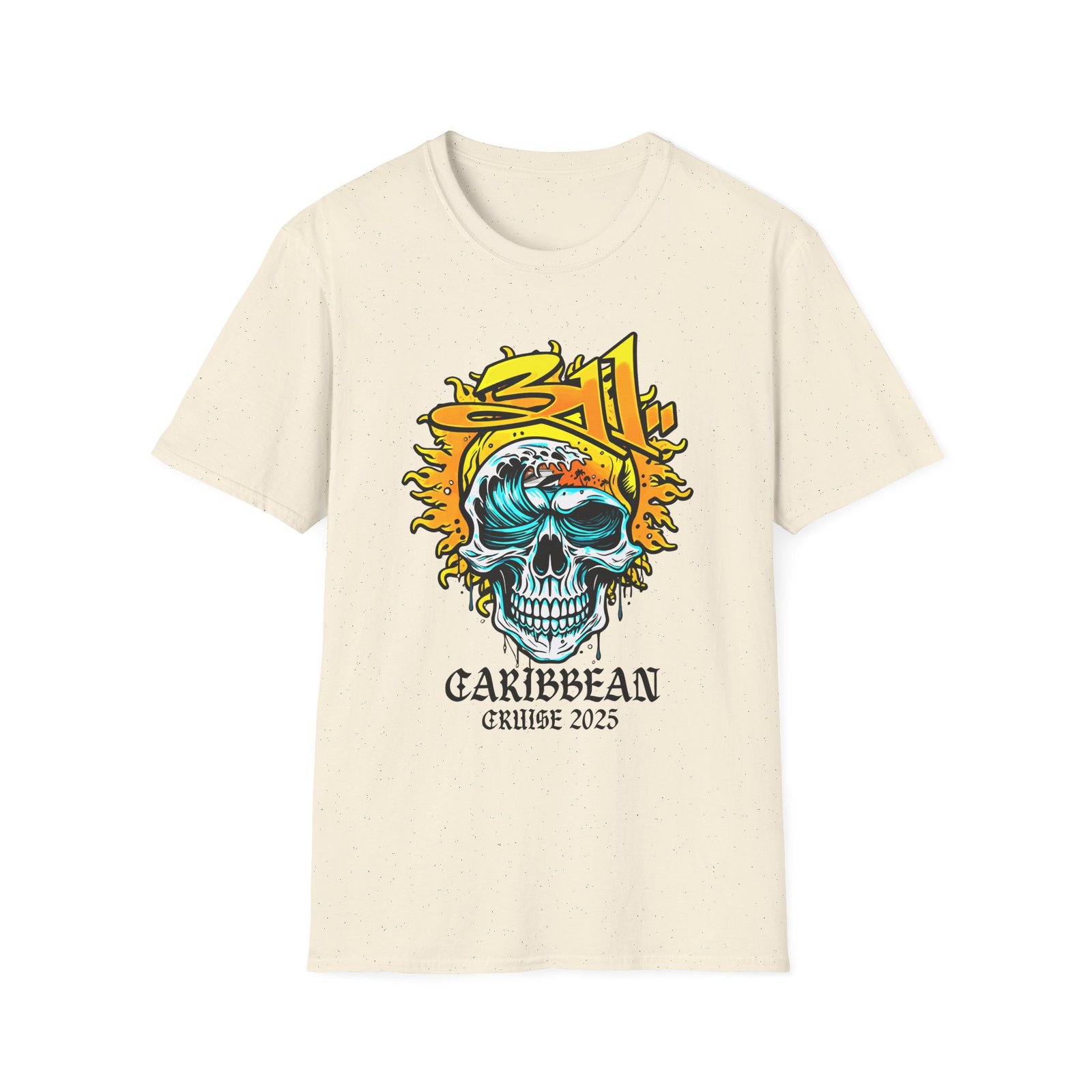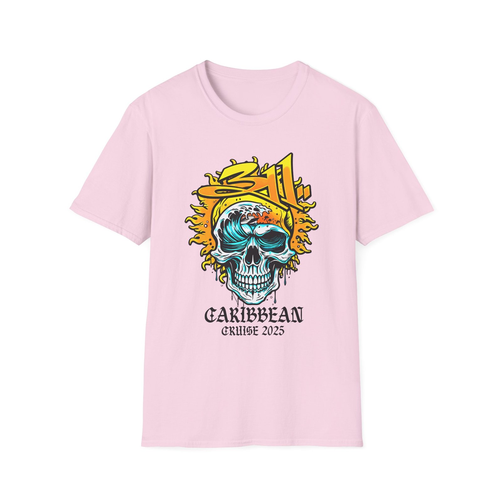 The 311 Caribbean Cruise 2025 Skull unisex soft-style t-shirt puts a new spin on casual comfort. Made from very soft materials, this tee is 100% cotton for solid colors. Heather colors and sports grey include polyester. The shoulders have twill tape for improved durability. There are no side seams. The collar is made with ribbed knitting to prevent curling damage.