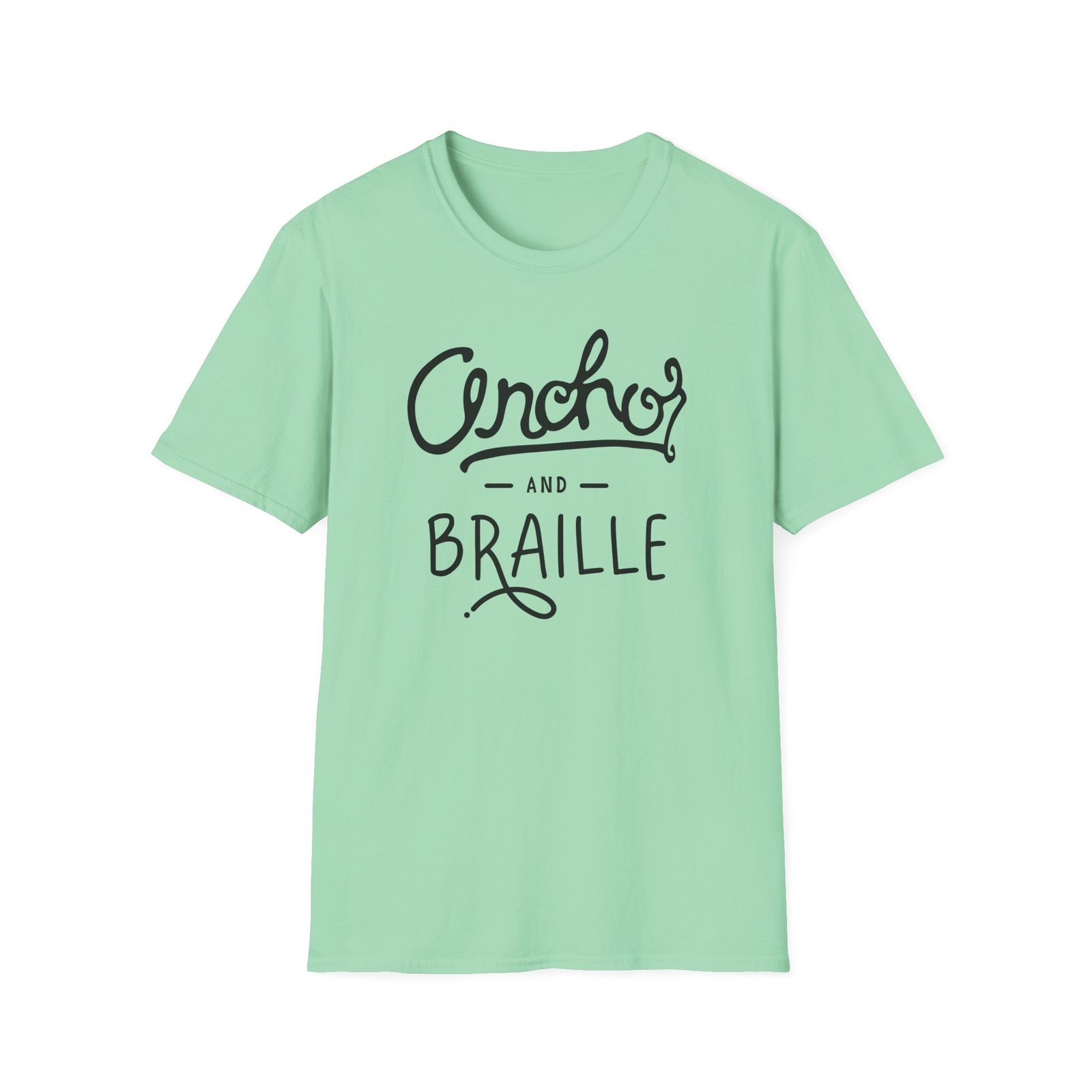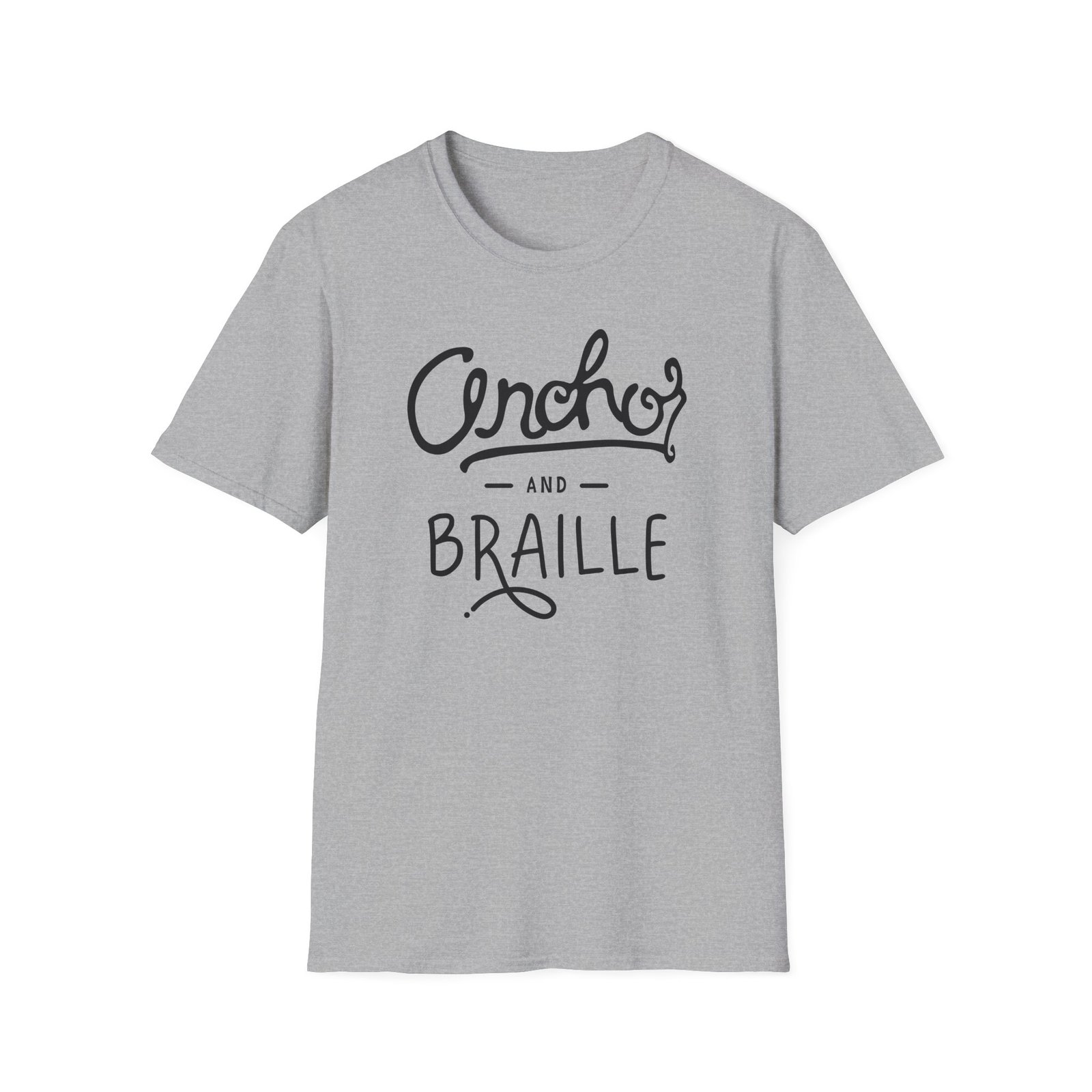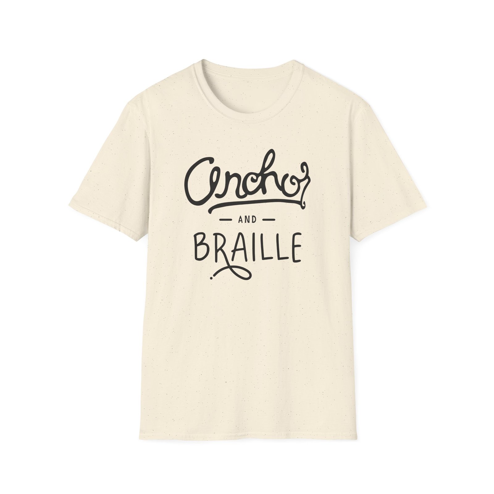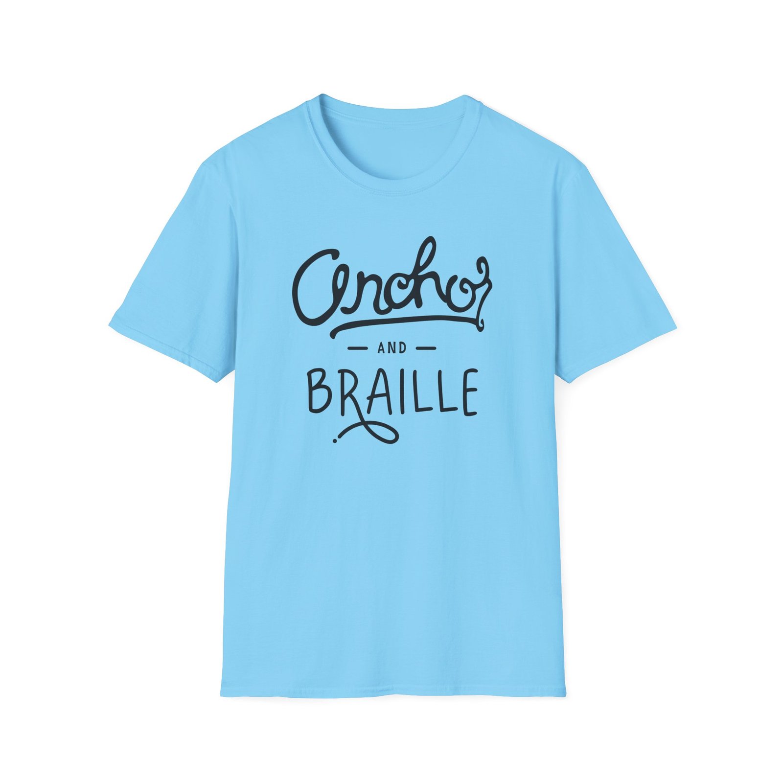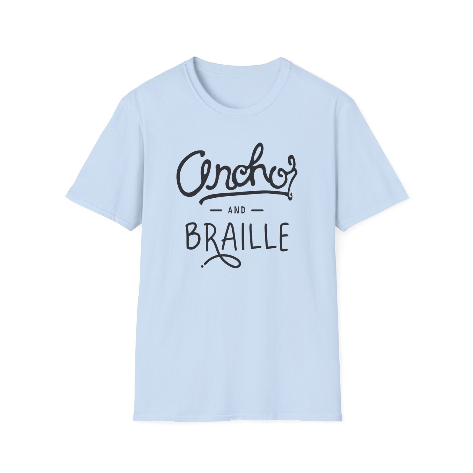 The Anchor and Braille unisex soft-style t-shirt puts a new spin on casual comfort. Made from very soft materials, this tee is 100% cotton for solid colors. Heather colors and sports grey include polyester. The shoulders have twill tape for improved durability. There are no side seams. The collar is made with ribbed knitting to prevent curling damage.