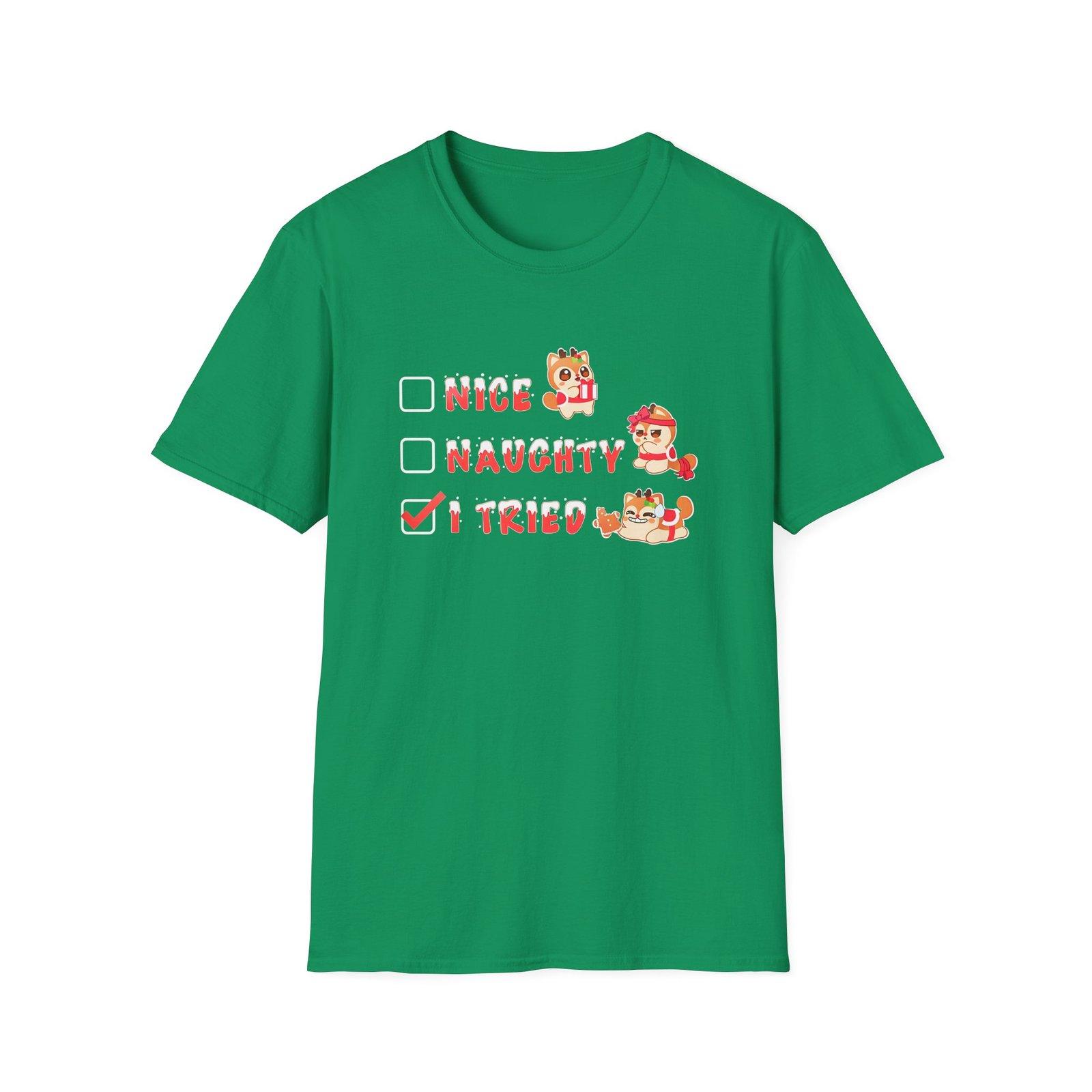 The Aphmau Naughty Nice Holiday unisex soft-style t-shirt puts a new spin on casual comfort. Made from very soft materials, this tee is 100% cotton for solid colors. Heather colors and sports grey include polyester. The shoulders have twill tape for improved durability. There are no side seams. The collar is made with ribbed knitting to prevent curling damage.