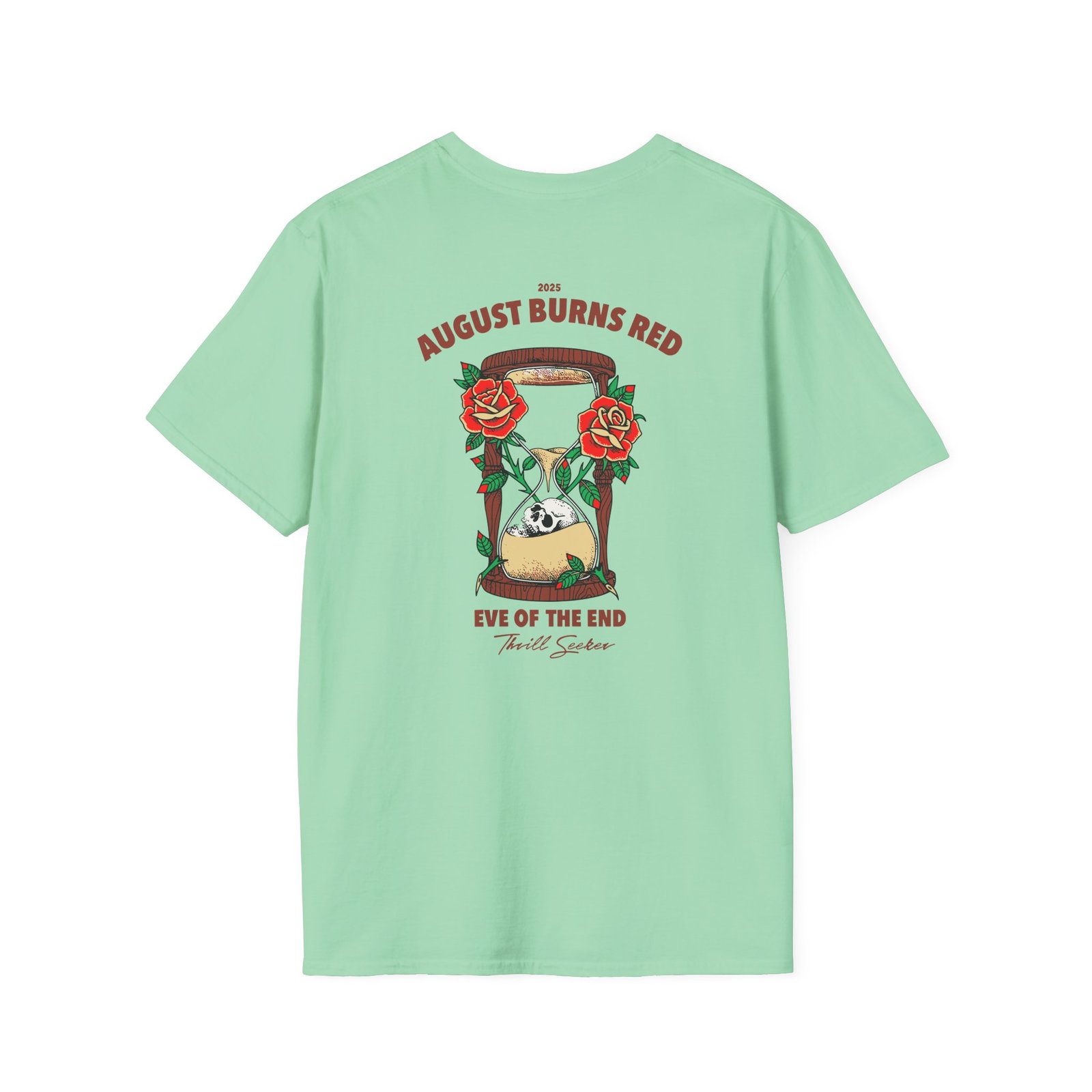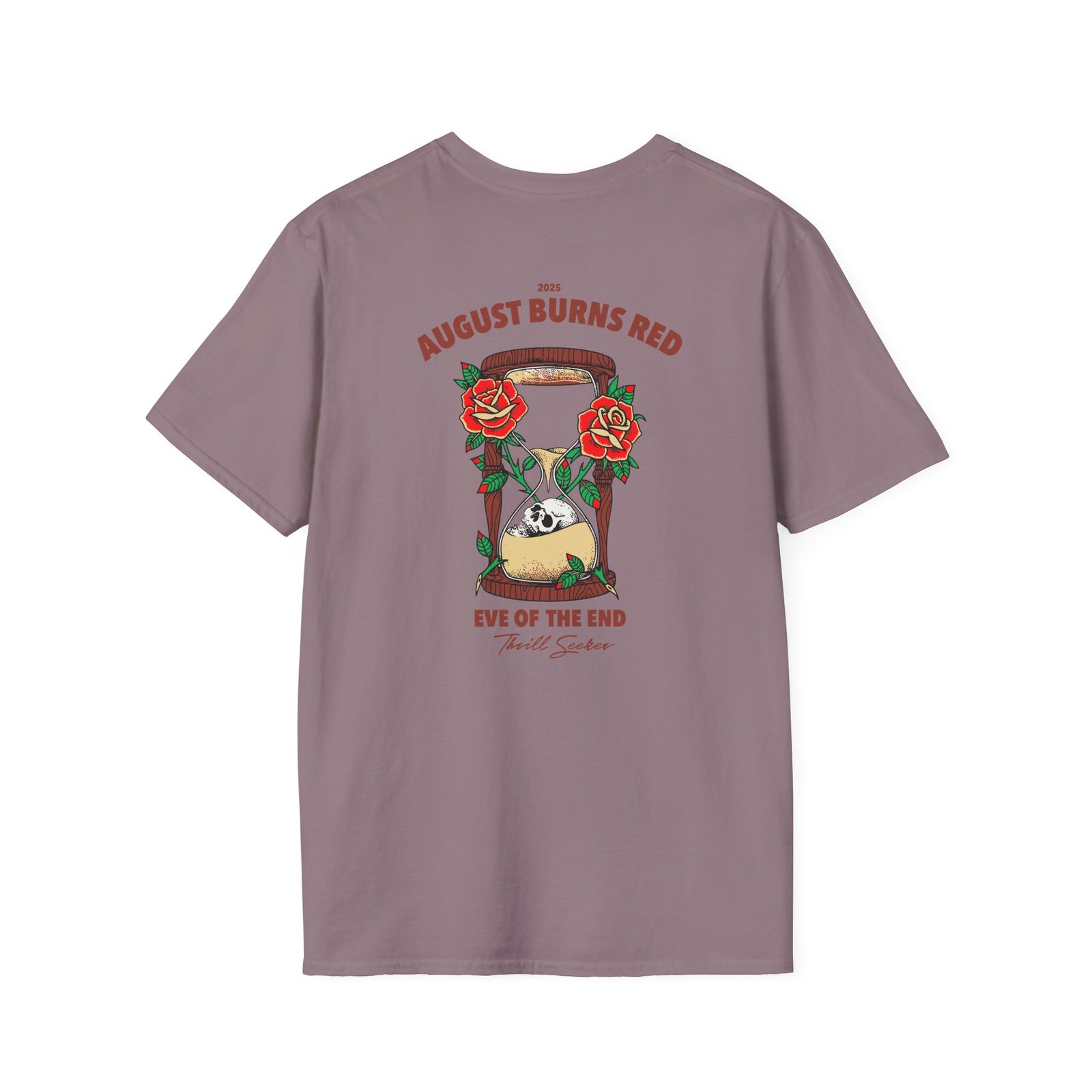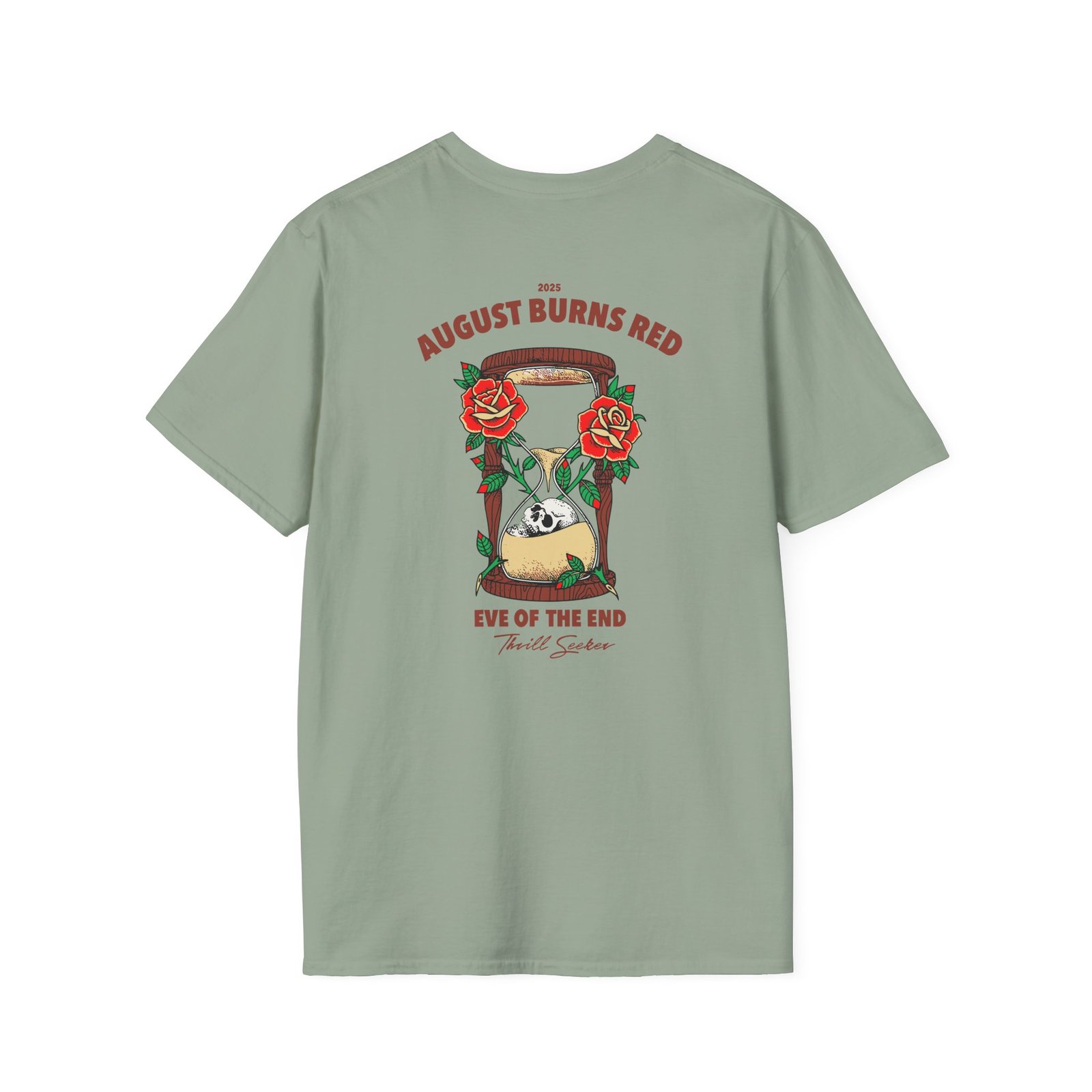 The August Burns Red Eve of the End unisex soft-style t-shirt puts a new spin on casual comfort. Made from very soft materials, this tee is 100% cotton for solid colors. Heather colors and sports grey include polyester. The shoulders have twill tape for improved durability. There are no side seams. The collar is made with ribbed knitting to prevent curling damage.
