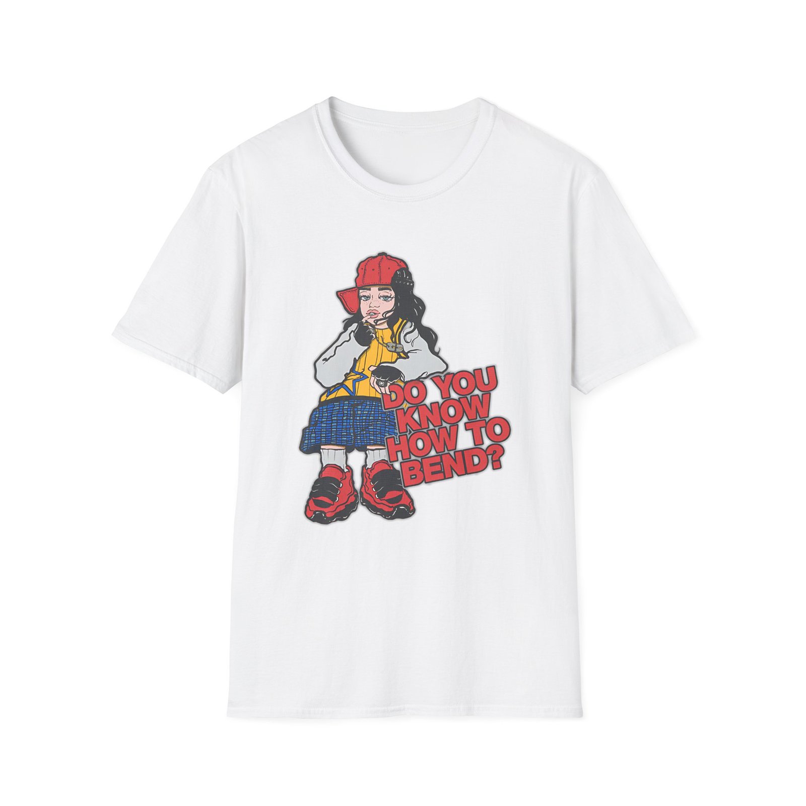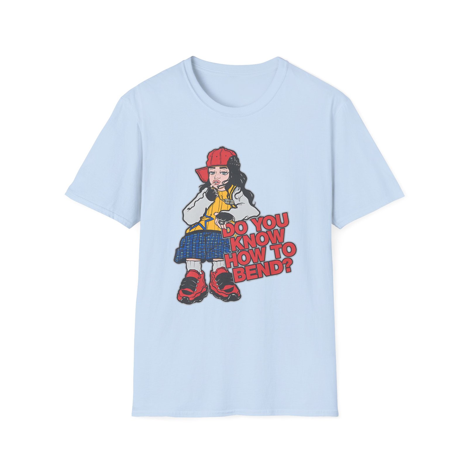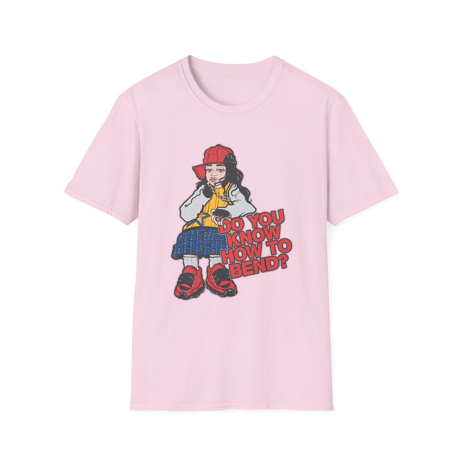 The BE Do You Know How to Bend? unisex soft-style t-shirt puts a new spin on casual comfort. Made from very soft materials, this tee is 100% cotton for solid colors. Heather colors and sports grey include polyester. The shoulders have twill tape for improved durability. There are no side seams. The collar is made with ribbed knitting to prevent curling damage.