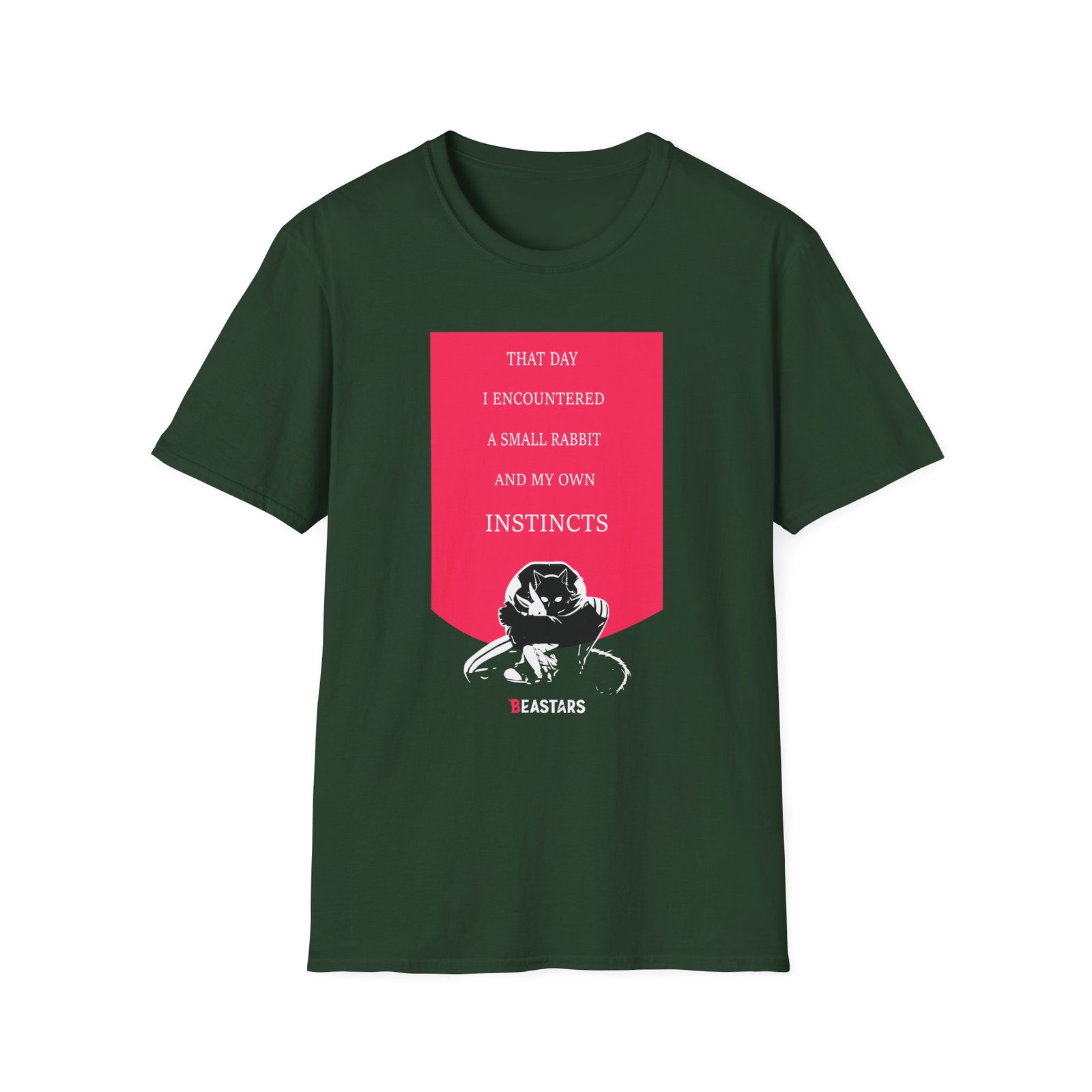 The Beastars Instincts Legoshi & Haru unisex soft-style t-shirt puts a new spin on casual comfort. Made from very soft materials, this tee is 100% cotton for solid colors. Heather colors and sports grey include polyester. The shoulders have twill tape for improved durability. There are no side seams. The collar is made with ribbed knitting to prevent curling damage.