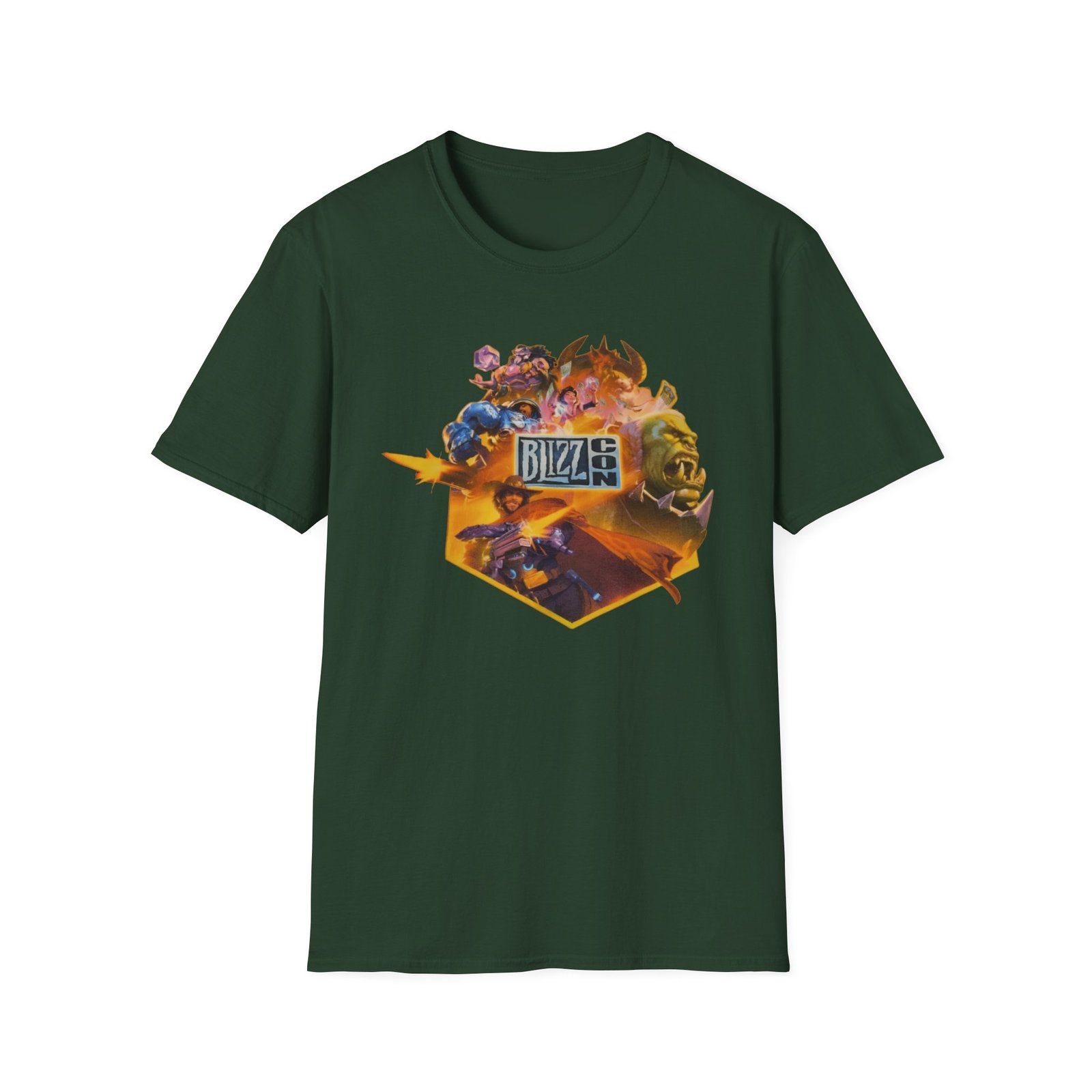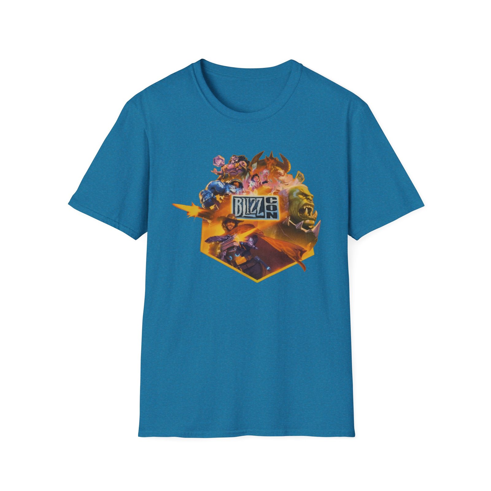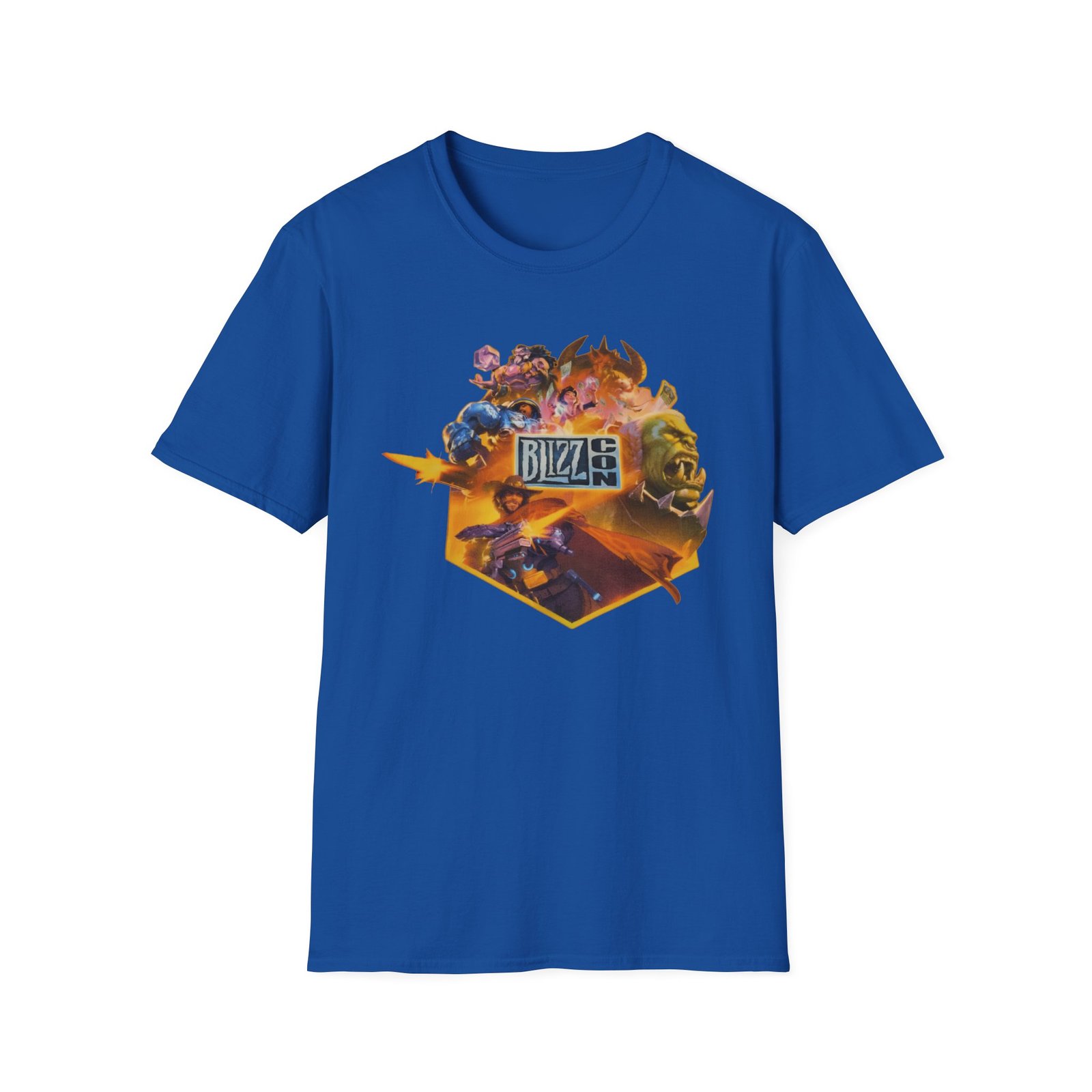 The Blizzcon Entertainment Gaming unisex soft-style t-shirt puts a new spin on casual comfort. Made from very soft materials, this tee is 100% cotton for solid colors. Heather colors and sports grey include polyester. The shoulders have twill tape for improved durability. There are no side seams. The collar is made with ribbed knitting to prevent curling damage.