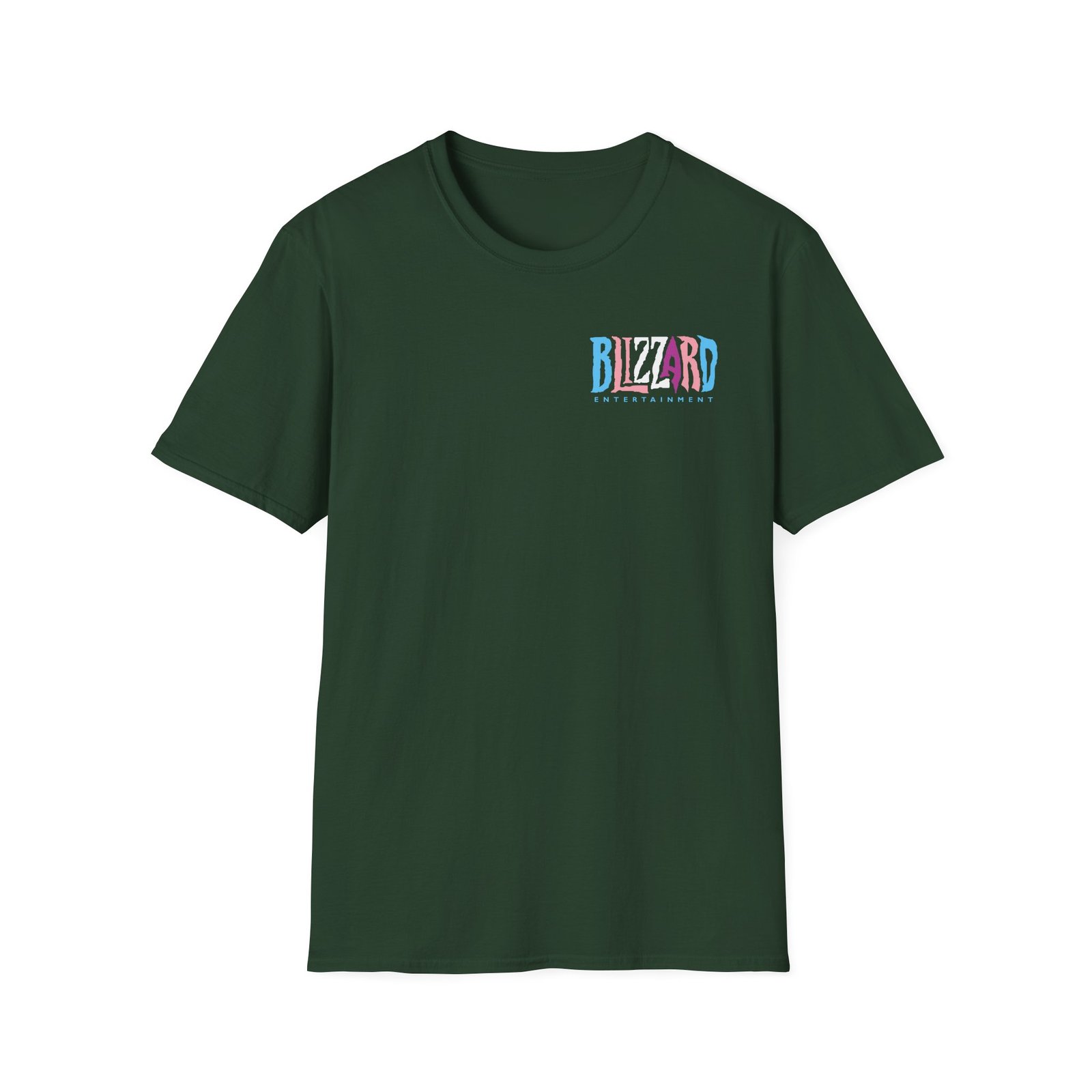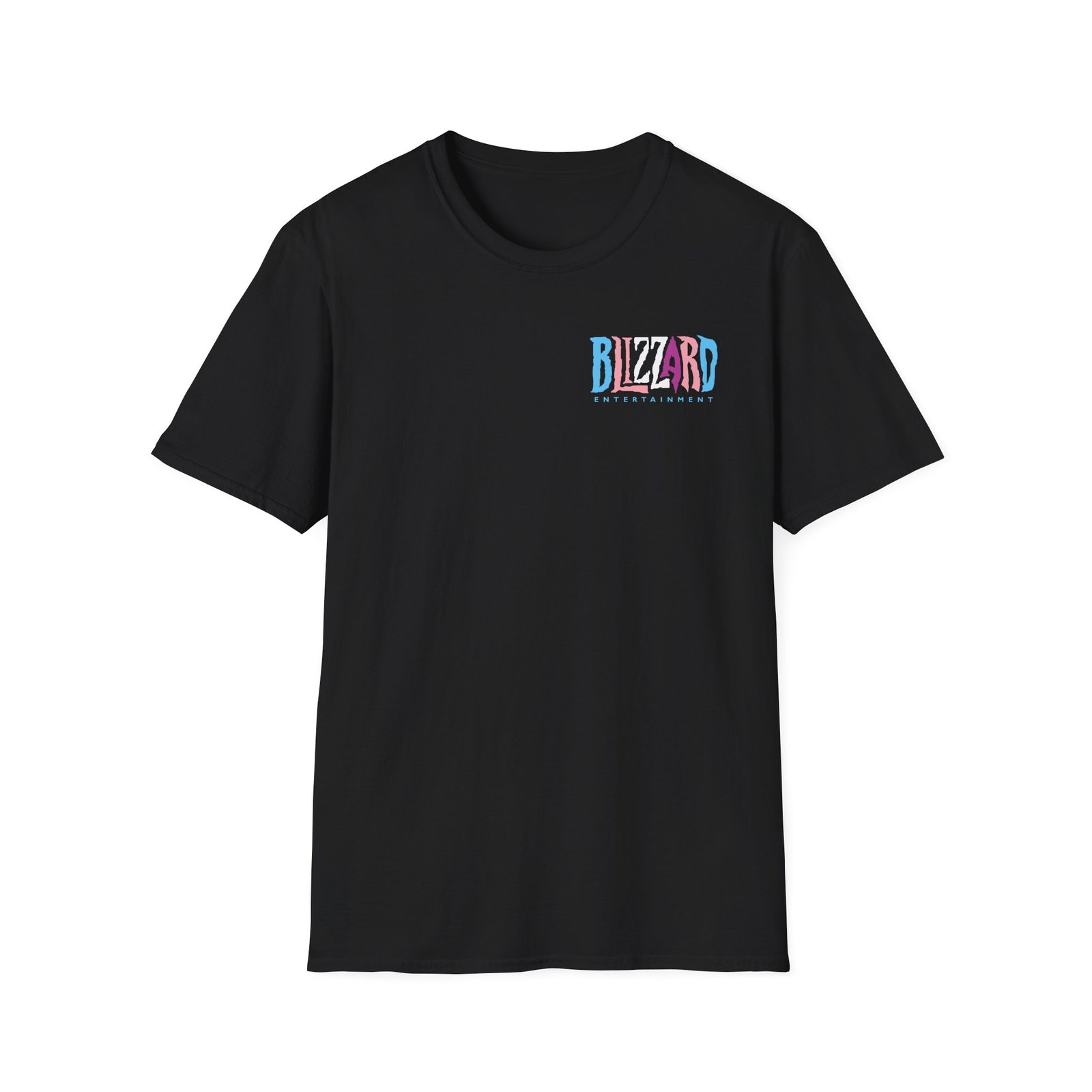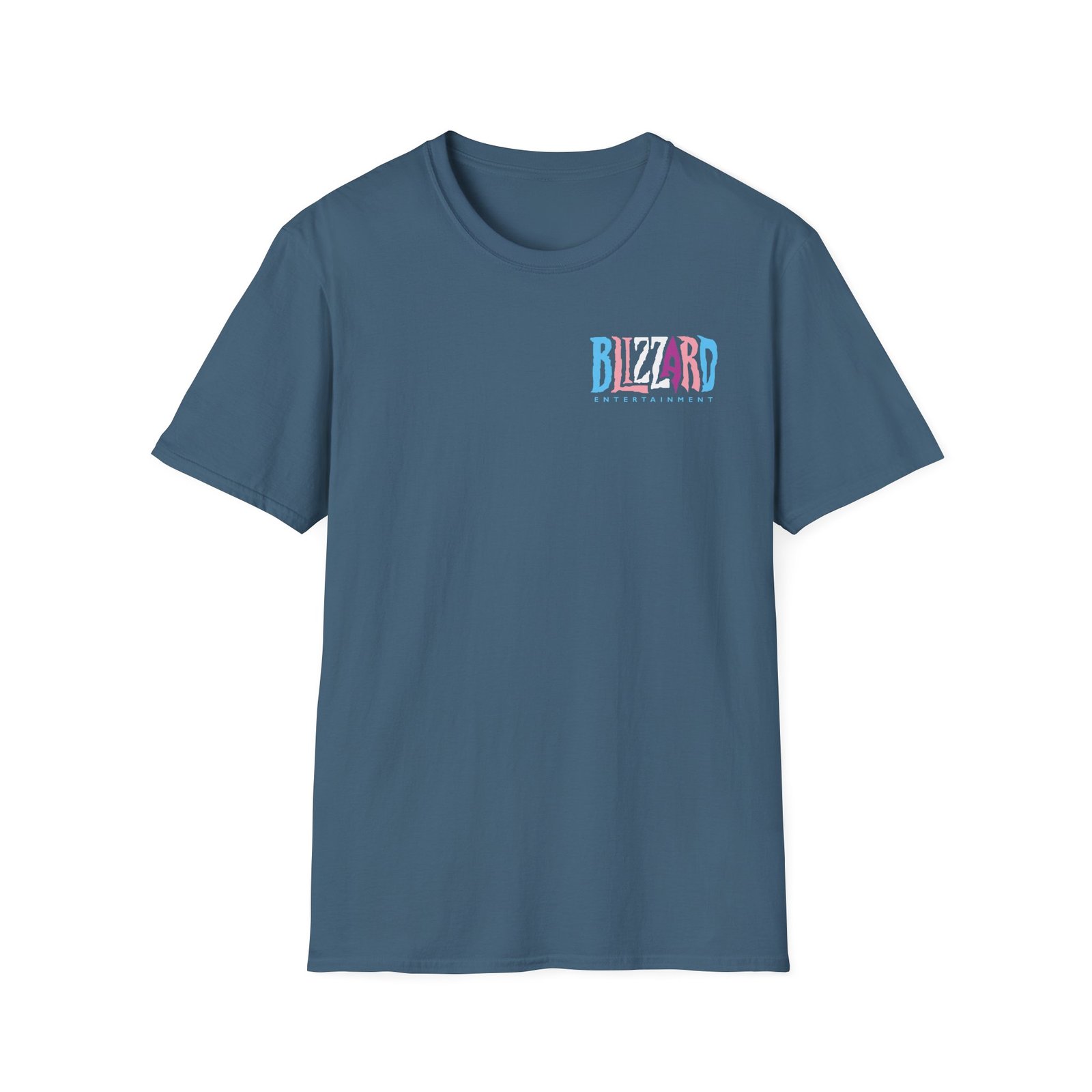The Blizzcon Entertainment Pride unisex soft-style t-shirt puts a new spin on casual comfort. Made from very soft materials, this tee is 100% cotton for solid colors. Heather colors and sports grey include polyester. The shoulders have twill tape for improved durability. There are no side seams. The collar is made with ribbed knitting to prevent curling damage.