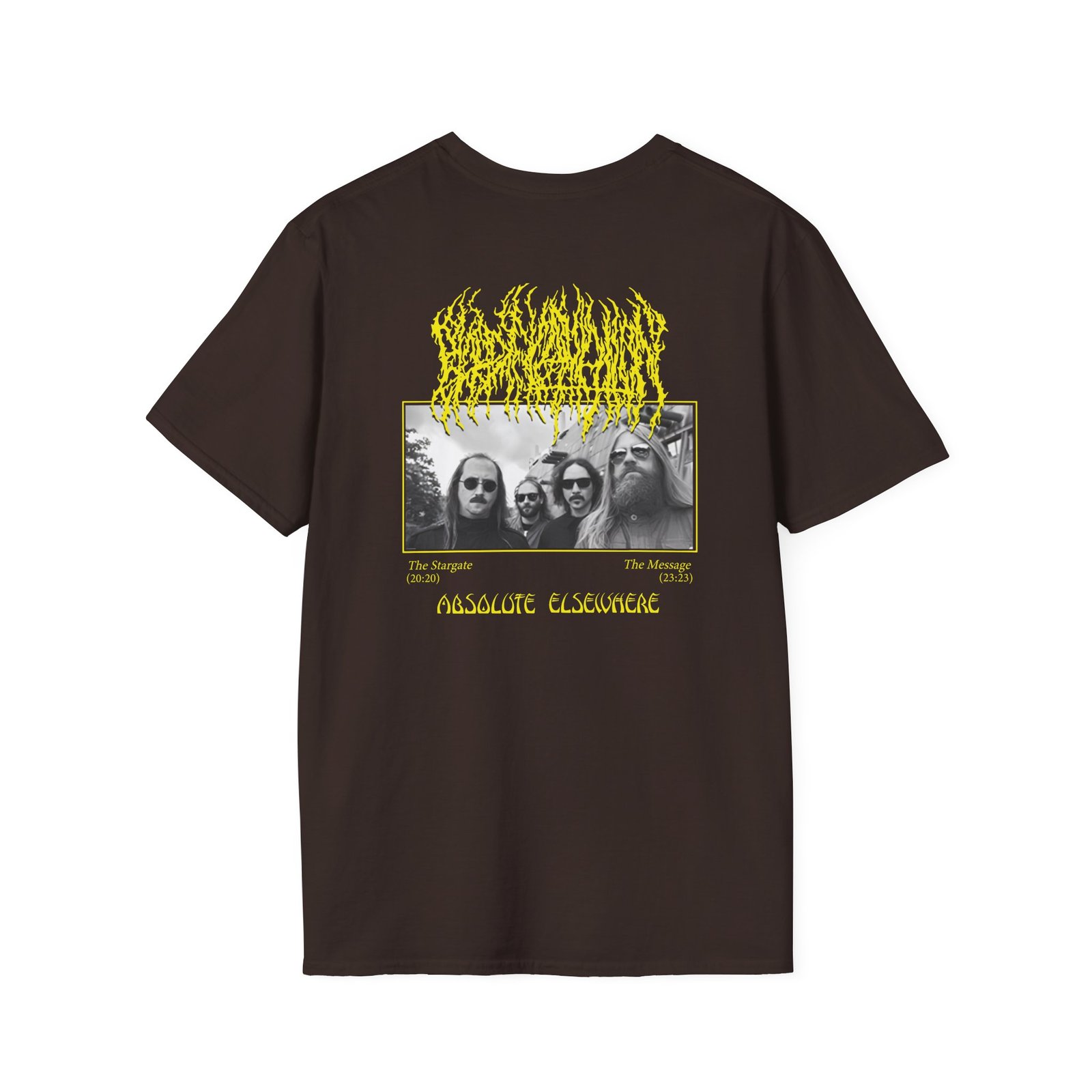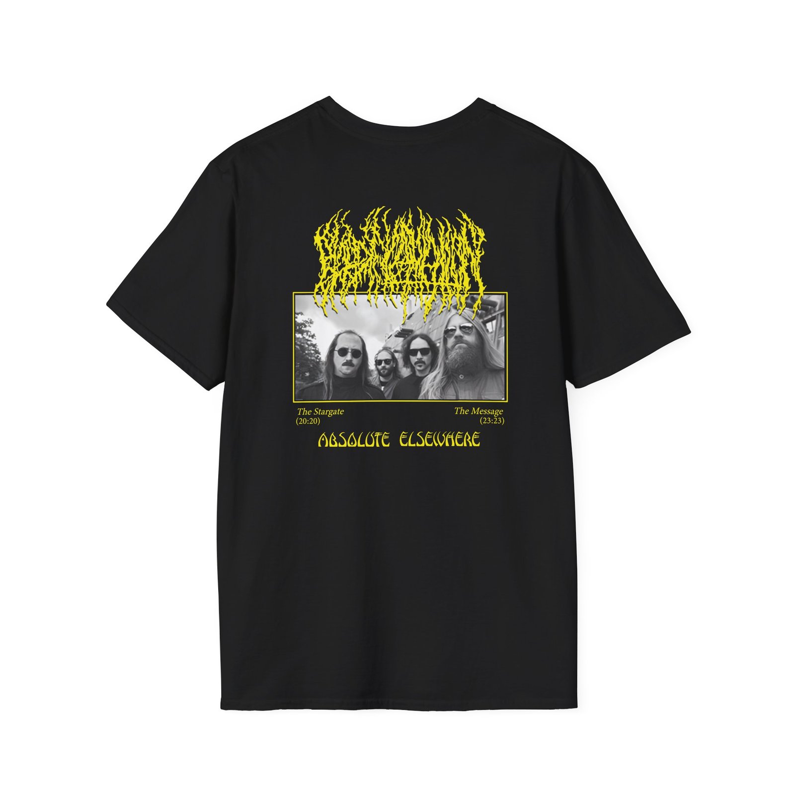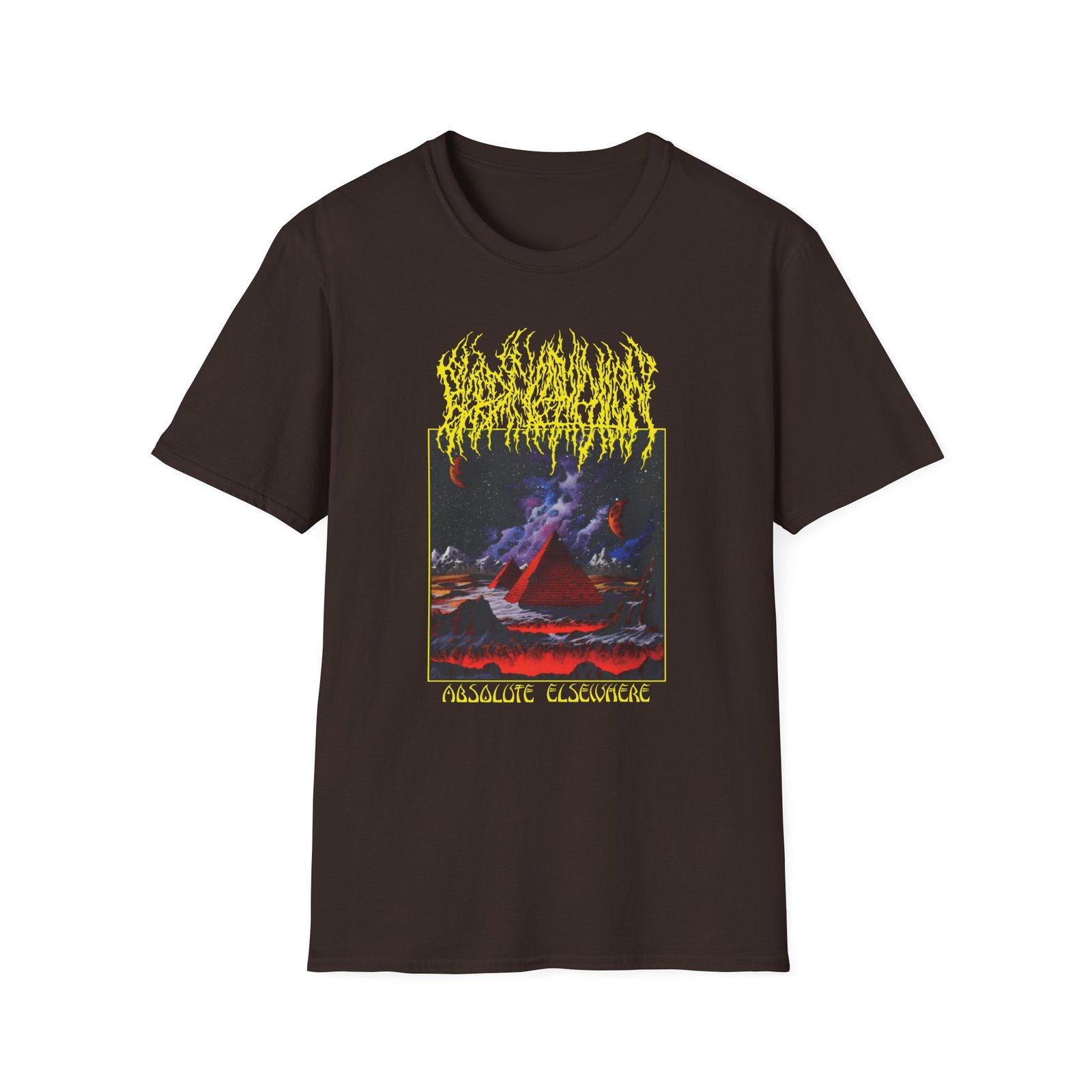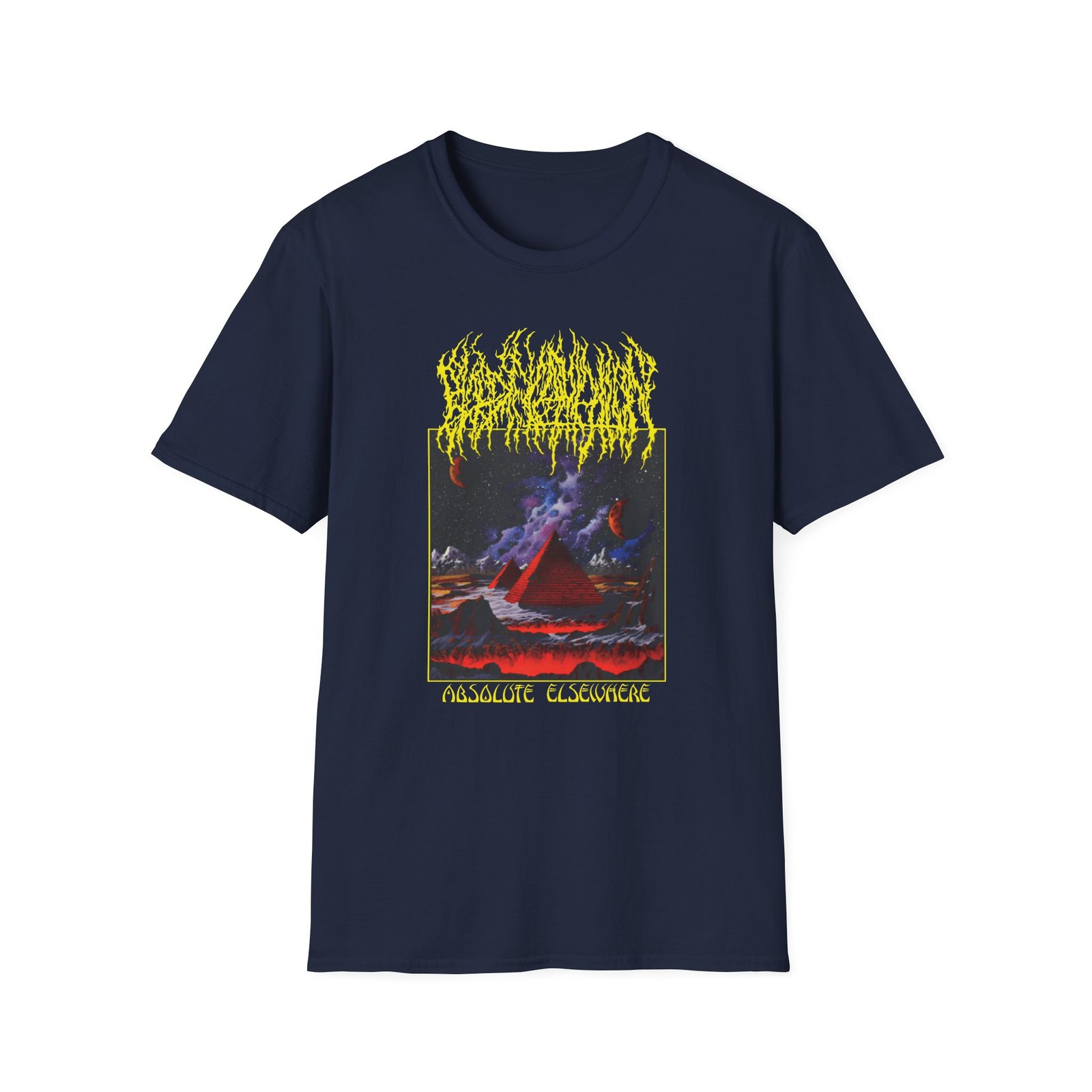 The Blood Incantation Absolute Elsewhere Album unisex soft-style t-shirt puts a new spin on casual comfort. Made from very soft materials, this tee is 100% cotton for solid colors. Heather colors and sports grey include polyester. The shoulders have twill tape for improved durability. There are no side seams. The collar is made with ribbed knitting to prevent curling damage.