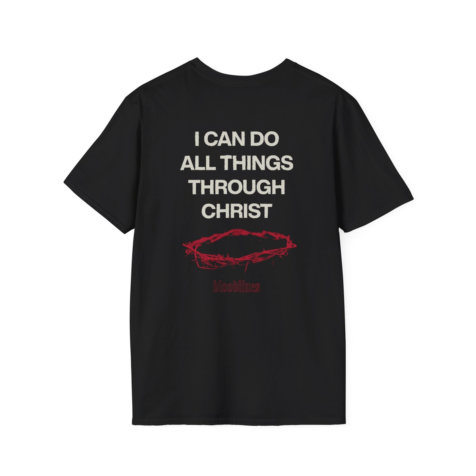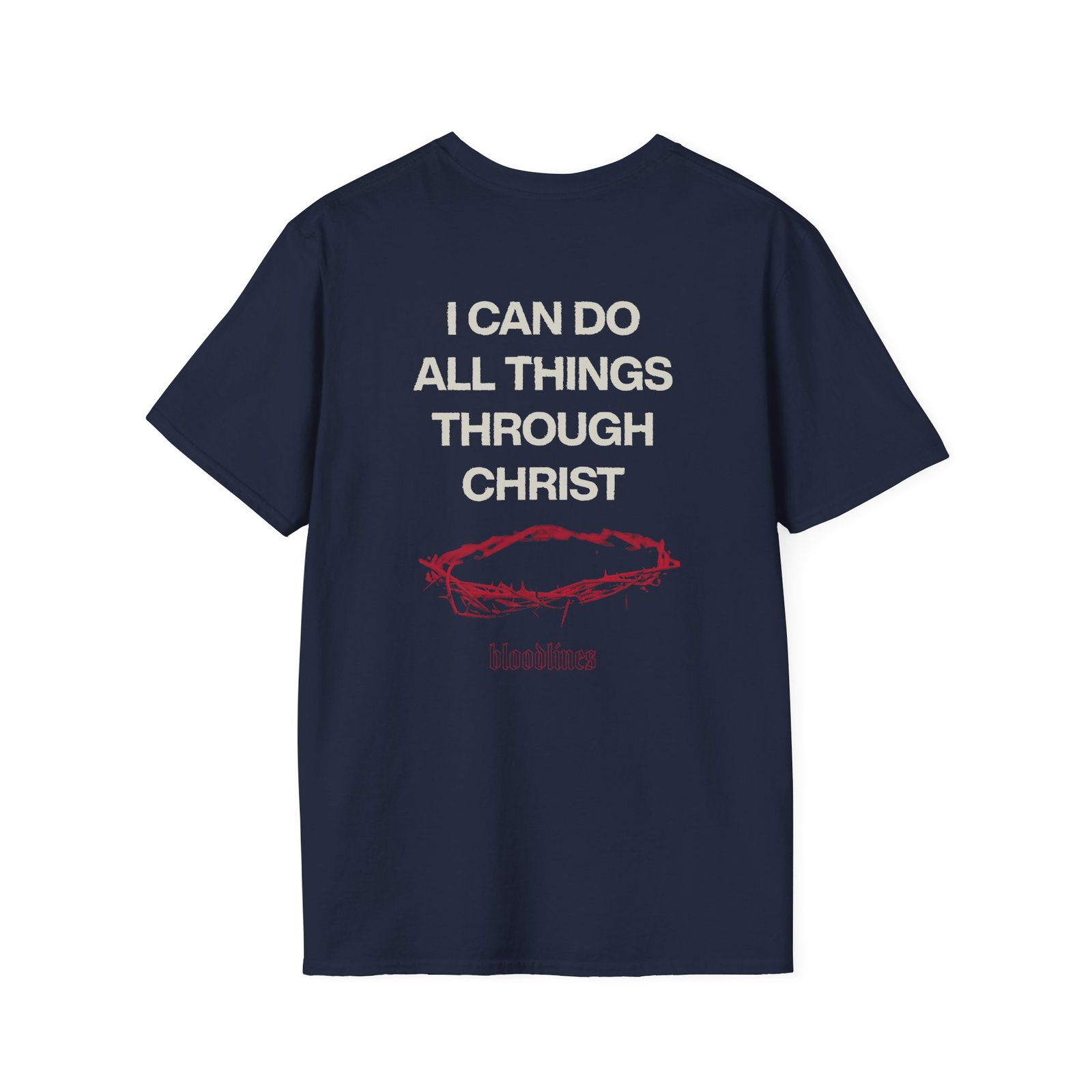 The Bloodline I Can Do All Things unisex soft-style t-shirt puts a new spin on casual comfort. Made from very soft materials, this tee is 100% cotton for solid colors. Heather colors and sports grey include polyester. The shoulders have twill tape for improved durability. There are no side seams. The collar is made with ribbed knitting to prevent curling damage.