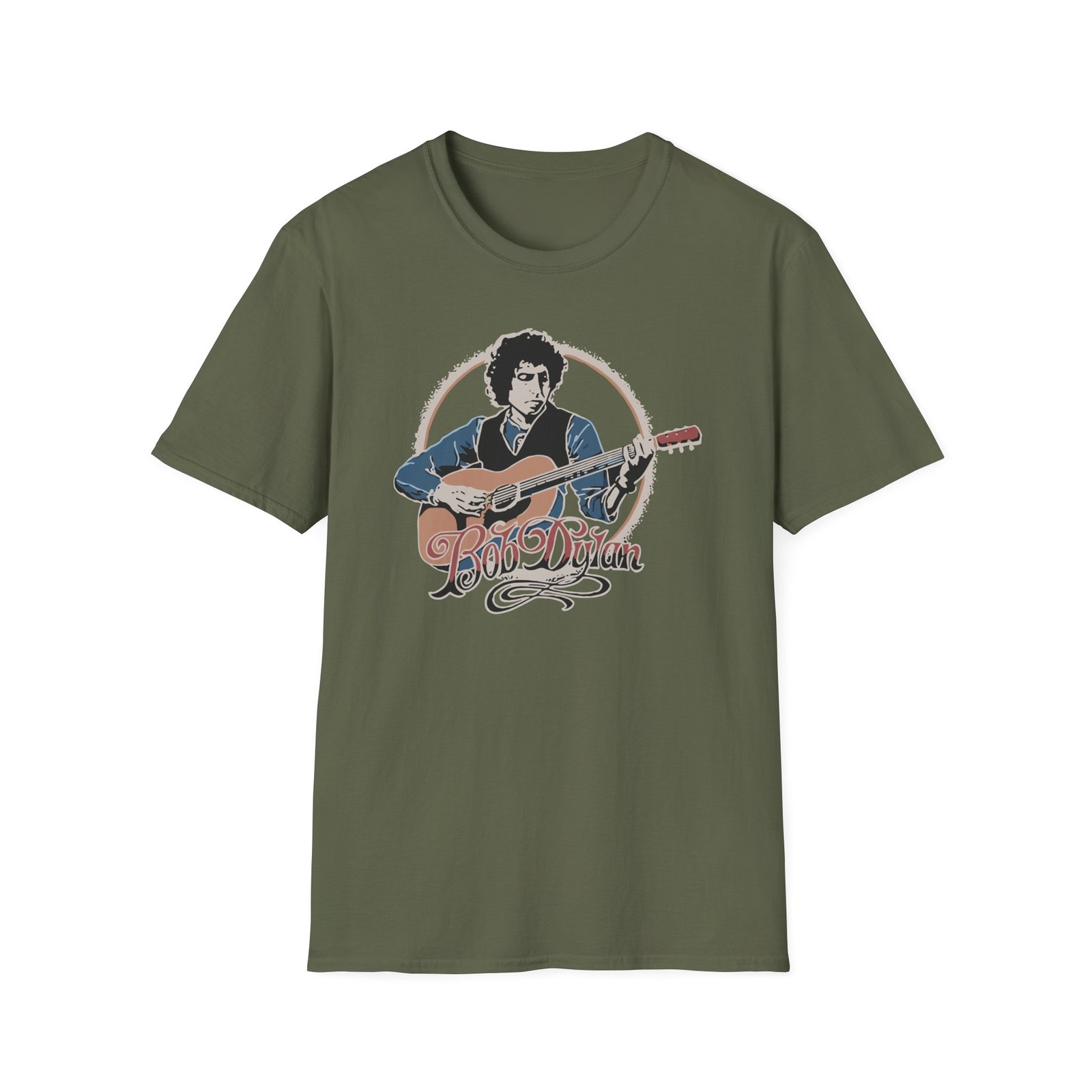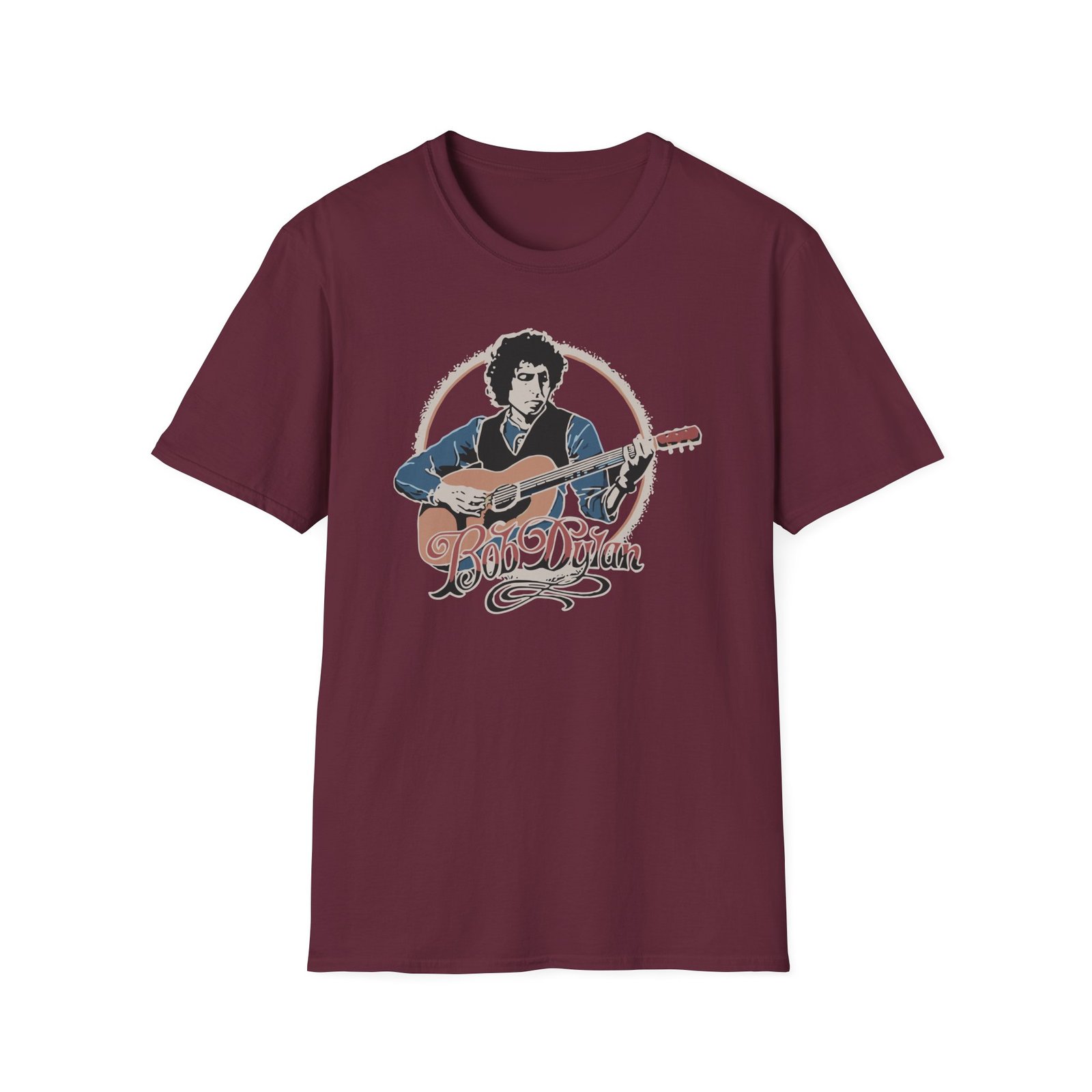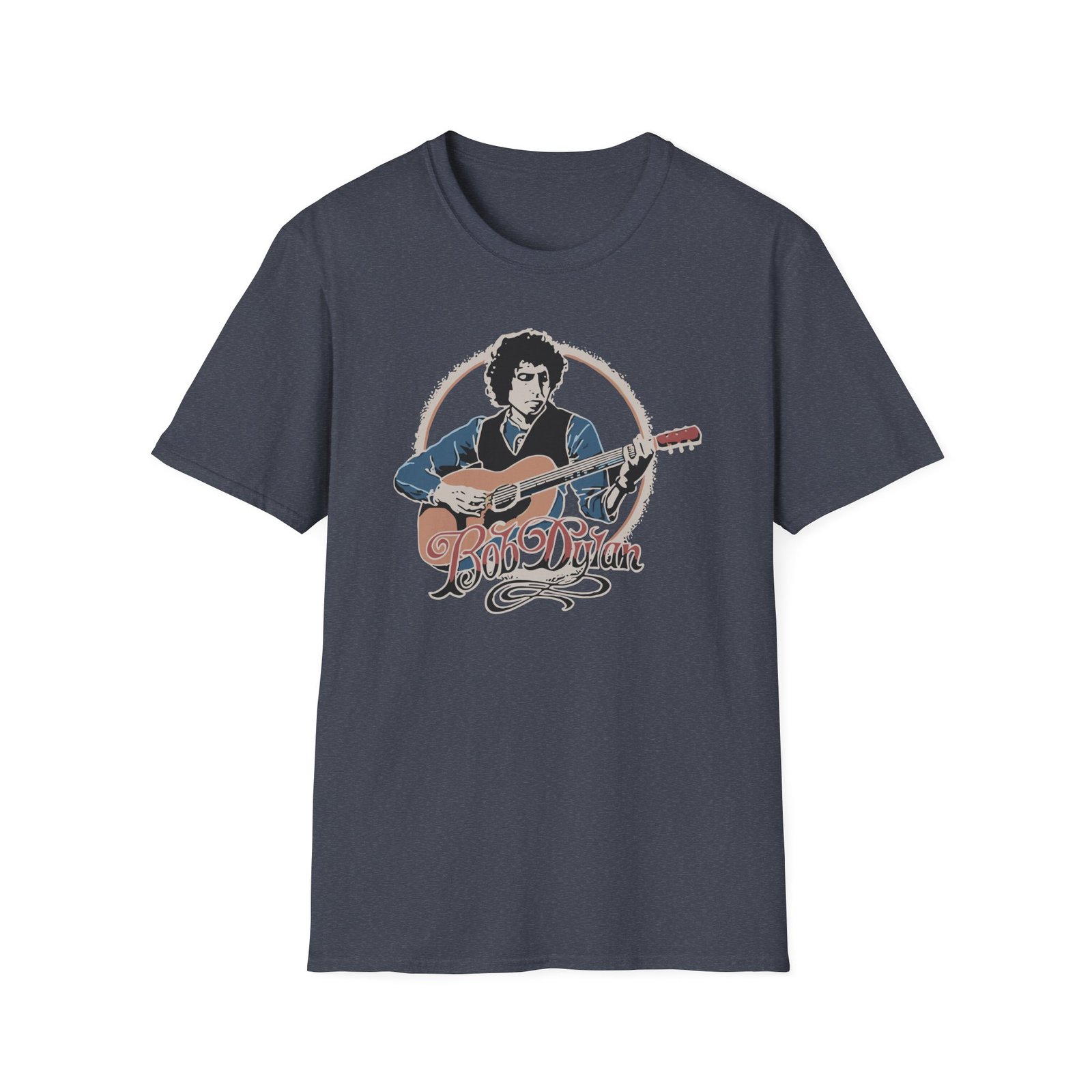 The Bob Dylan Acoustic unisex soft-style t-shirt puts a new spin on casual comfort. Made from very soft materials, this tee is 100% cotton for solid colors. Heather colors and sports grey include polyester. The shoulders have twill tape for improved durability. There are no side seams. The collar is made with ribbed knitting to prevent curling damage.