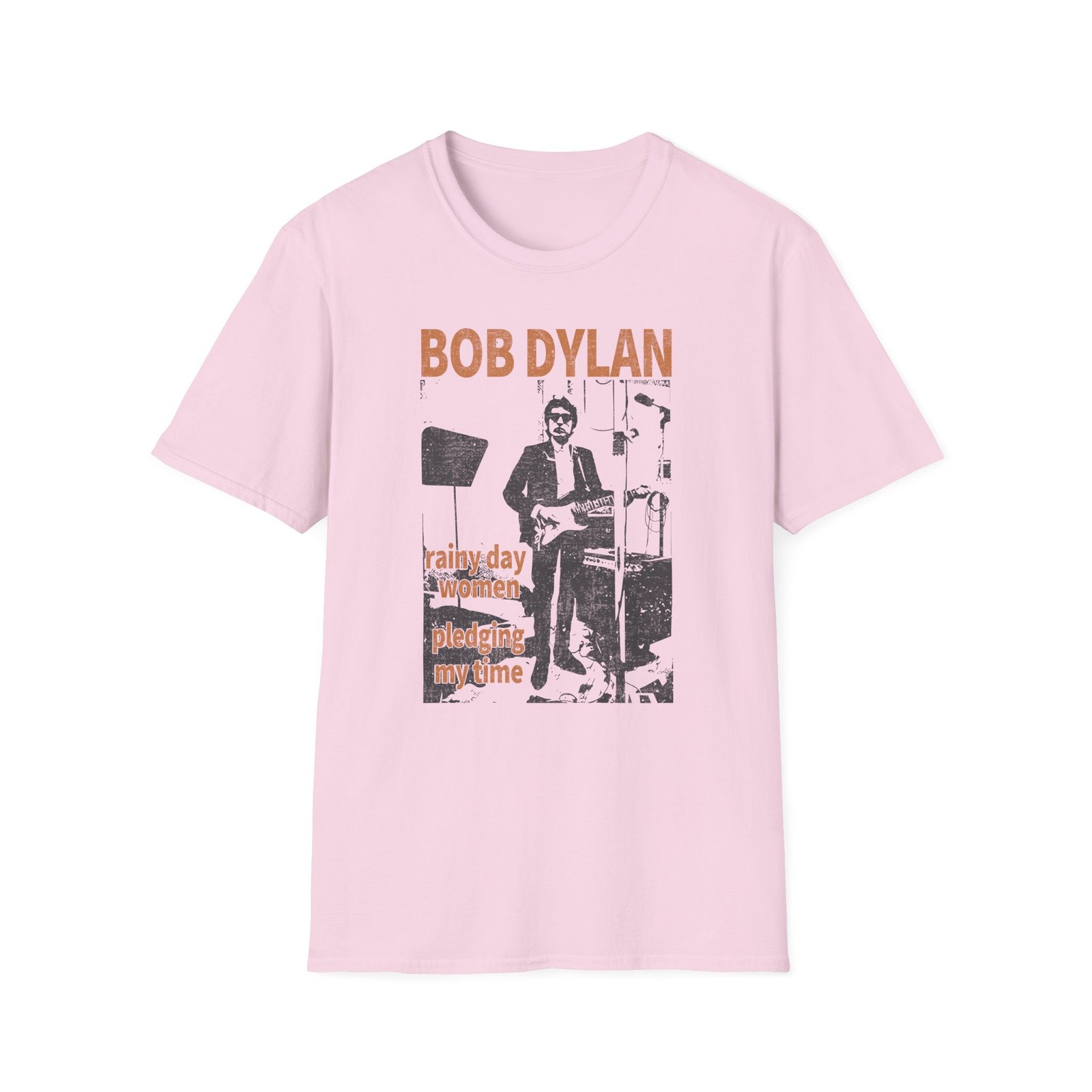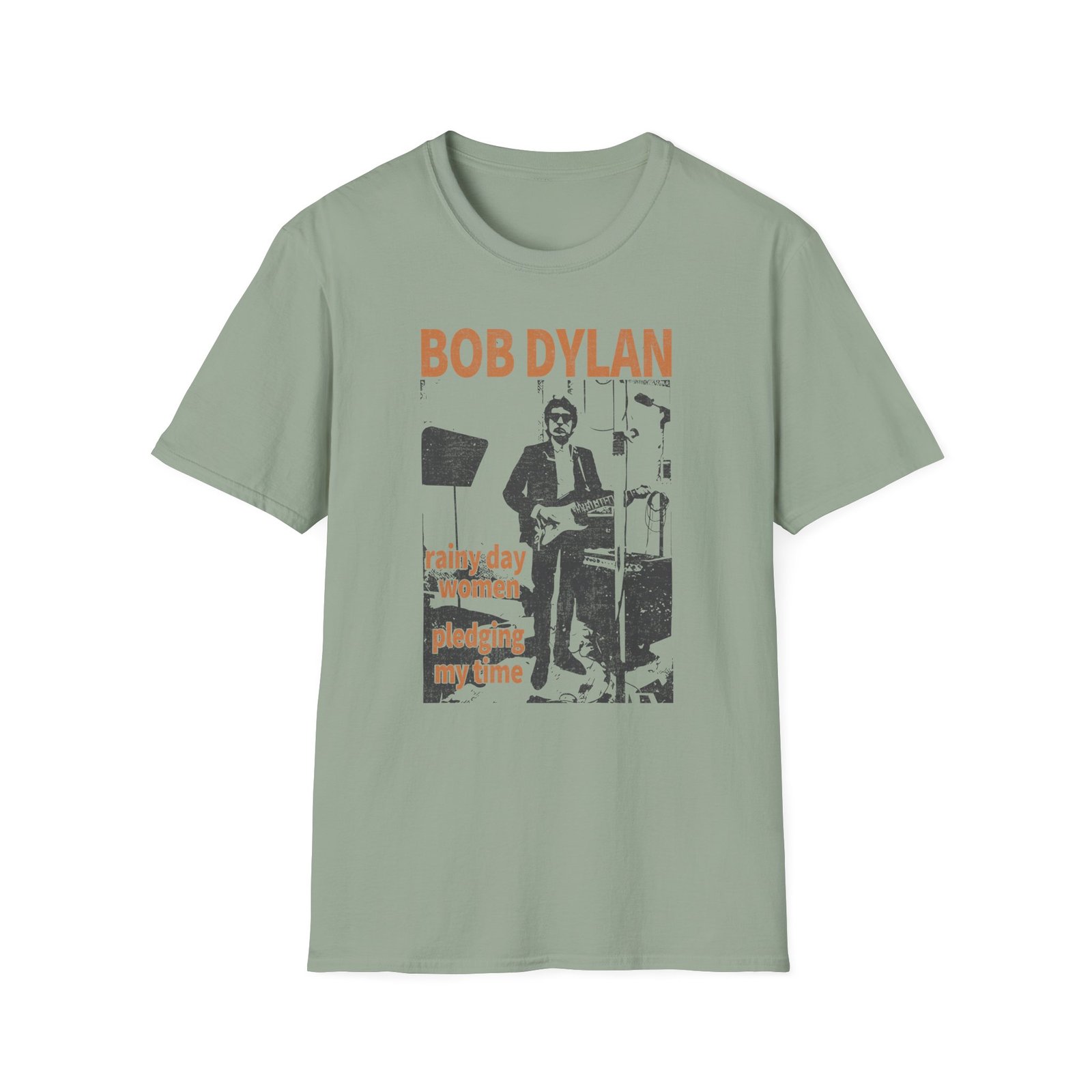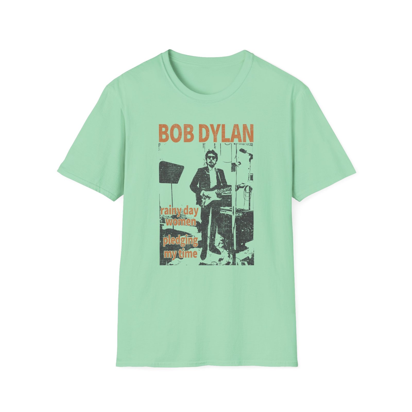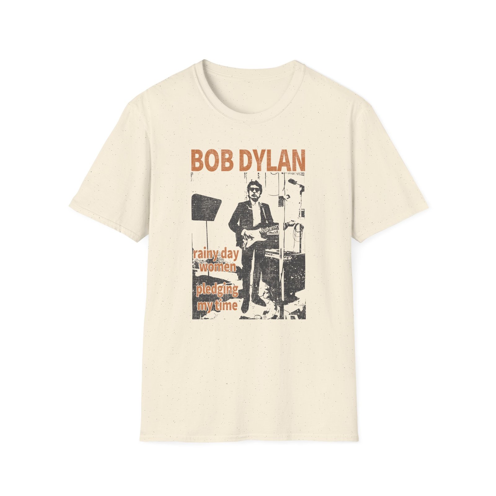 The Bob Dylan Rainy Day unisex soft-style t-shirt puts a new spin on casual comfort. Made from very soft materials, this tee is 100% cotton for solid colors. Heather colors and sports grey include polyester. The shoulders have twill tape for improved durability. There are no side seams. The collar is made with ribbed knitting to prevent curling damage.