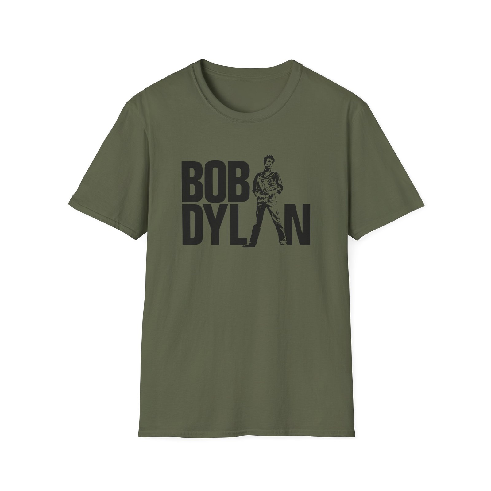 The Bob Dylan Standing Bob unisex soft-style t-shirt puts a new spin on casual comfort. Made from very soft materials, this tee is 100% cotton for solid colors. Heather colors and sports grey include polyester. The shoulders have twill tape for improved durability. There are no side seams. The collar is made with ribbed knitting to prevent curling damage.
