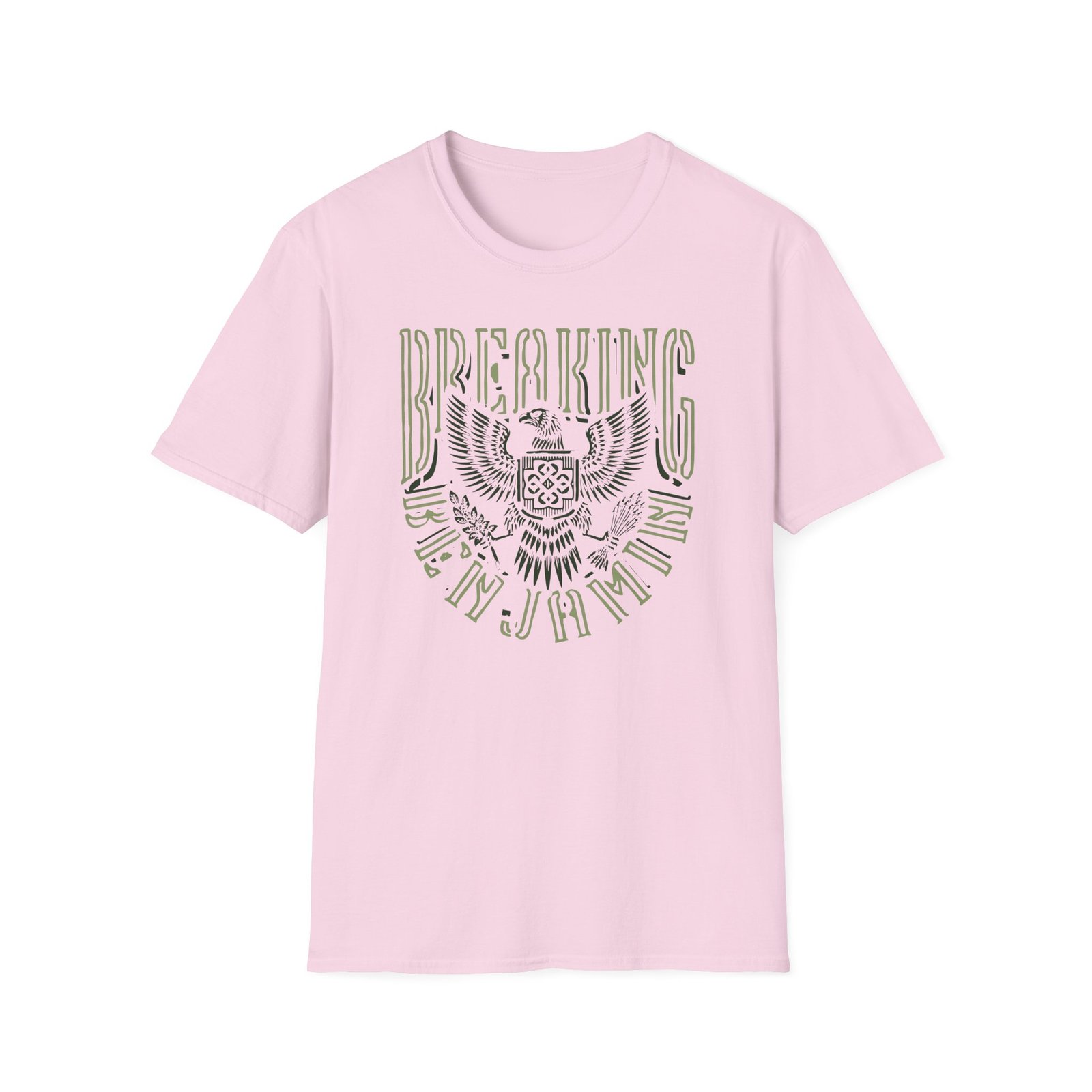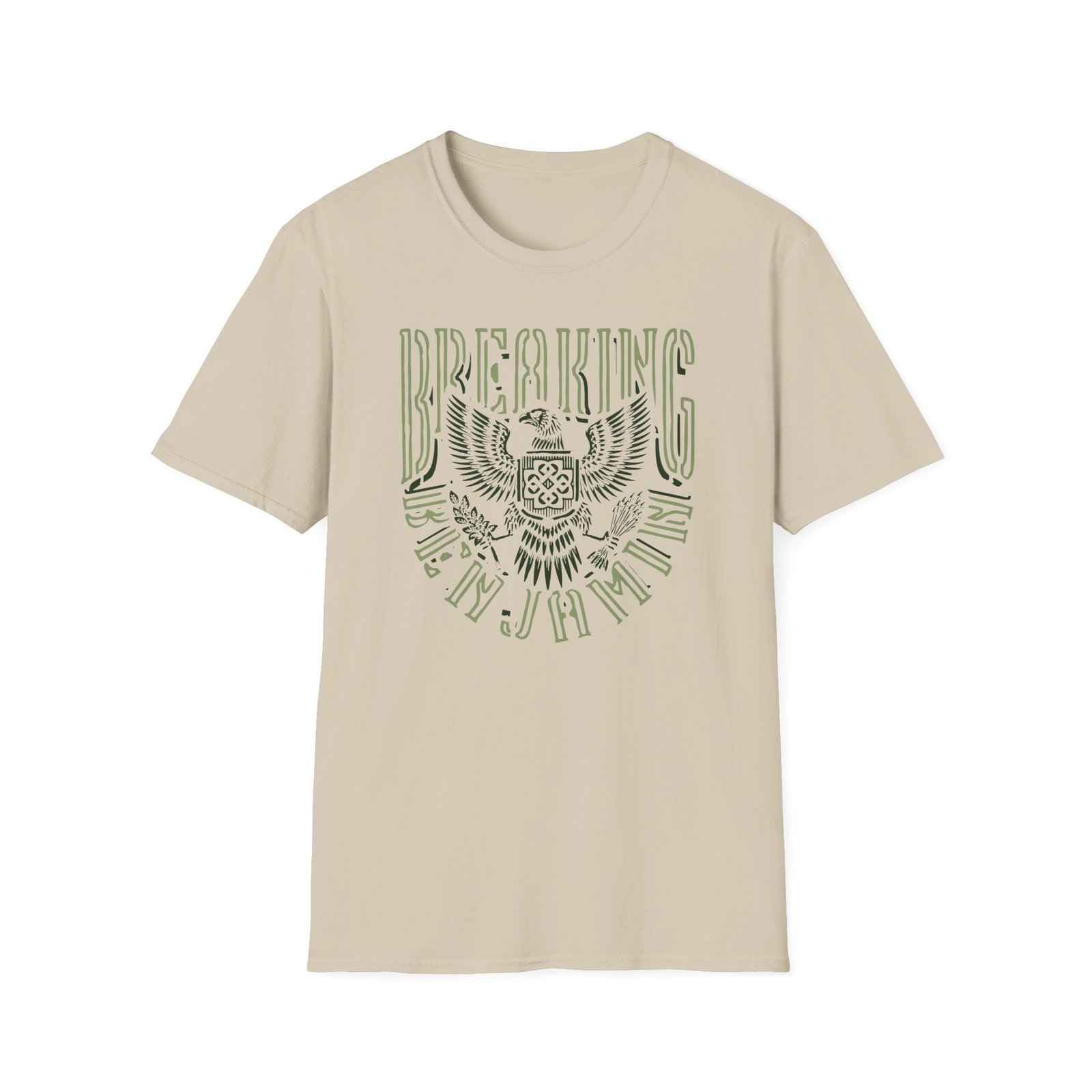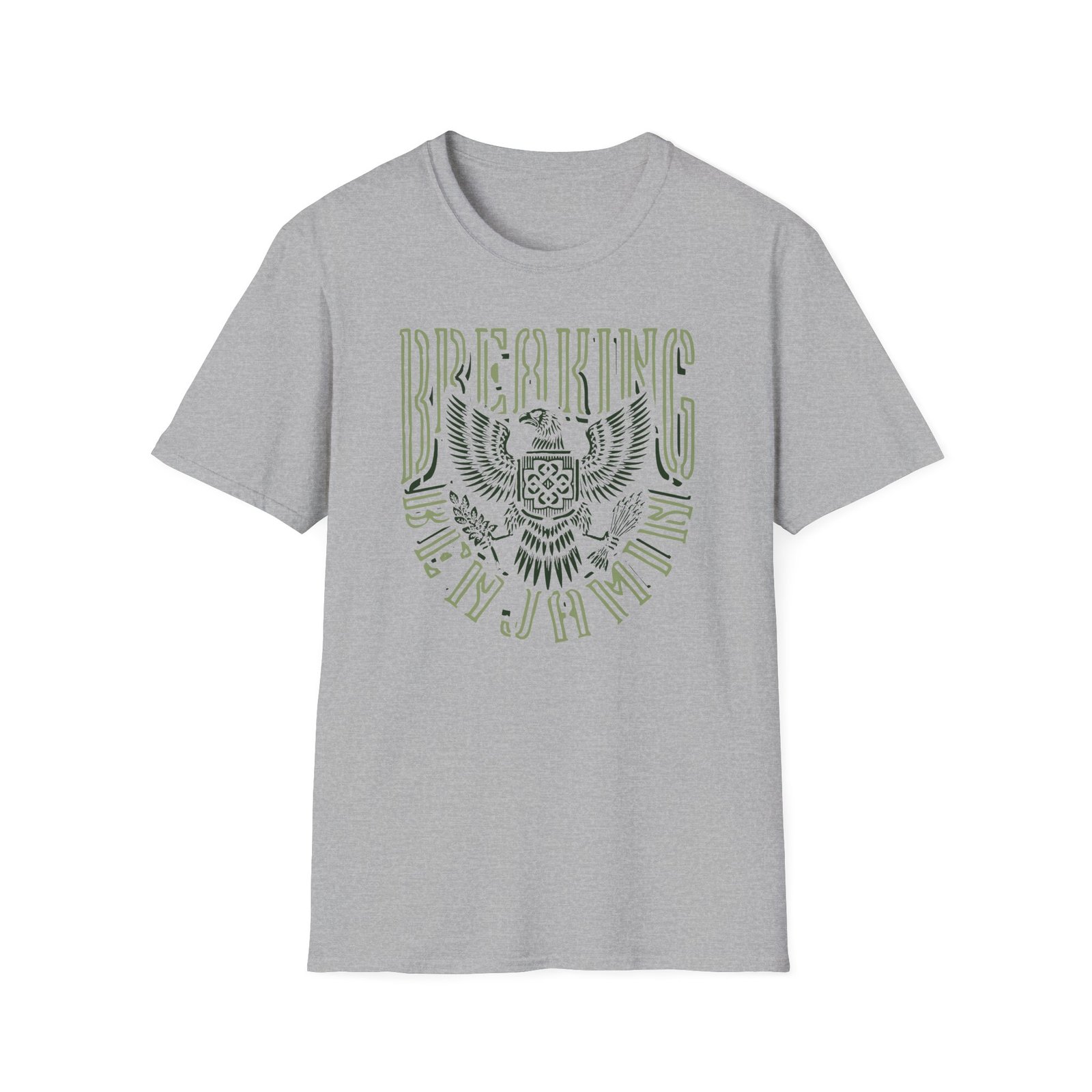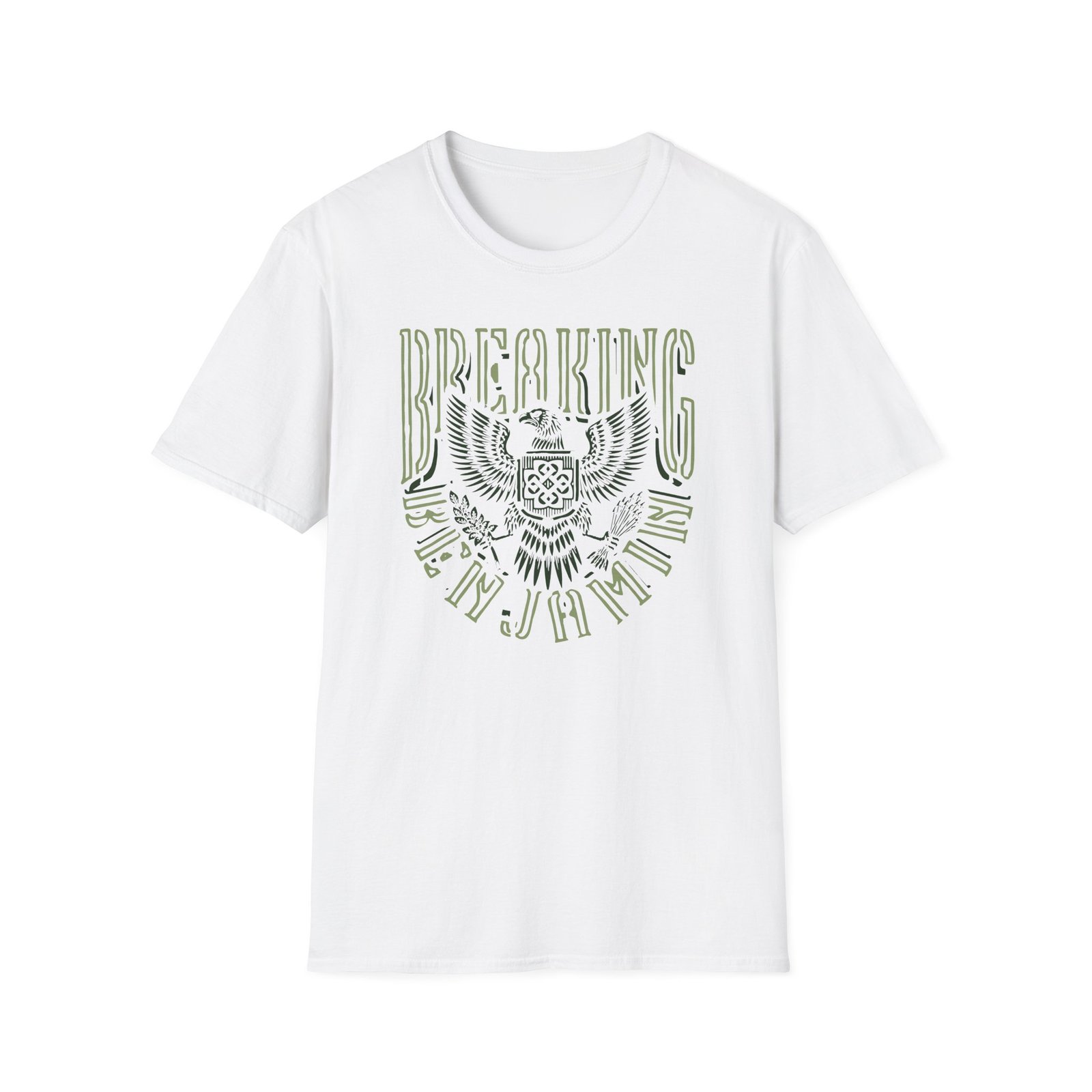 The Breaking Benjamin Eagle unisex soft-style t-shirt puts a new spin on casual comfort. Made from very soft materials, this tee is 100% cotton for solid colors. Heather colors and sports grey include polyester. The shoulders have twill tape for improved durability. There are no side seams. The collar is made with ribbed knitting to prevent curling damage.