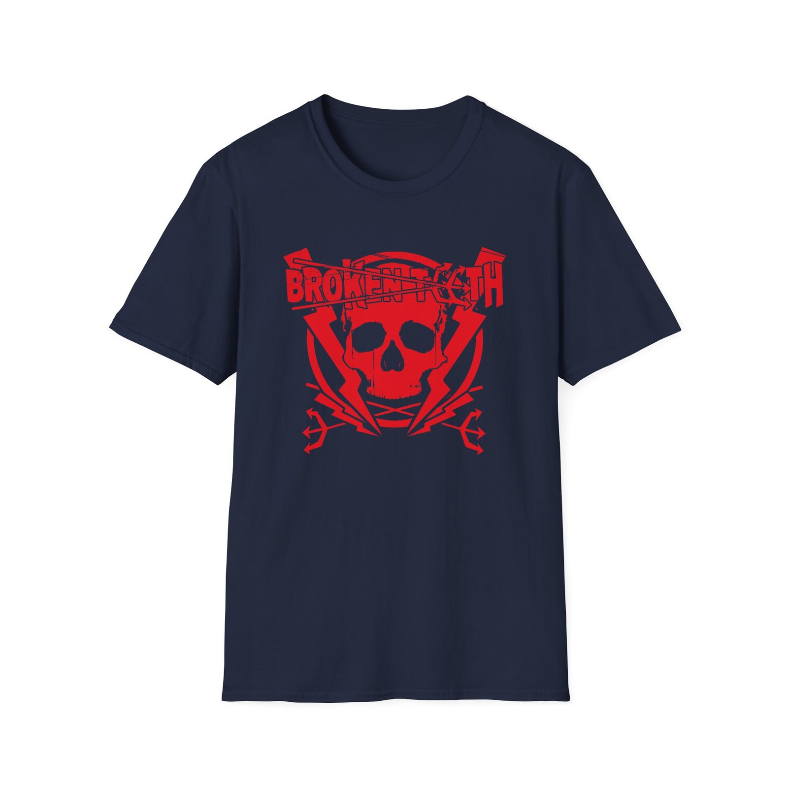 The Broken Teeth Red Skull unisex soft-style t-shirt puts a new spin on casual comfort. Made from very soft materials, this tee is 100% cotton for solid colors. Heather colors and sports grey include polyester. The shoulders have twill tape for improved durability. There are no side seams. The collar is made with ribbed knitting to prevent curling damage.