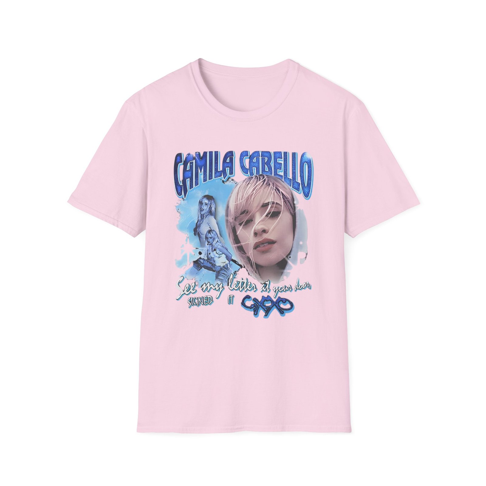 The Camila Cabello Signed It C,xoxo unisex soft-style t-shirt puts a new spin on casual comfort. Made from very soft materials, this tee is 100% cotton for solid colors. Heather colors and sports grey include polyester. The shoulders have twill tape for improved durability. There are no side seams. The collar is made with ribbed knitting to prevent curling damage.