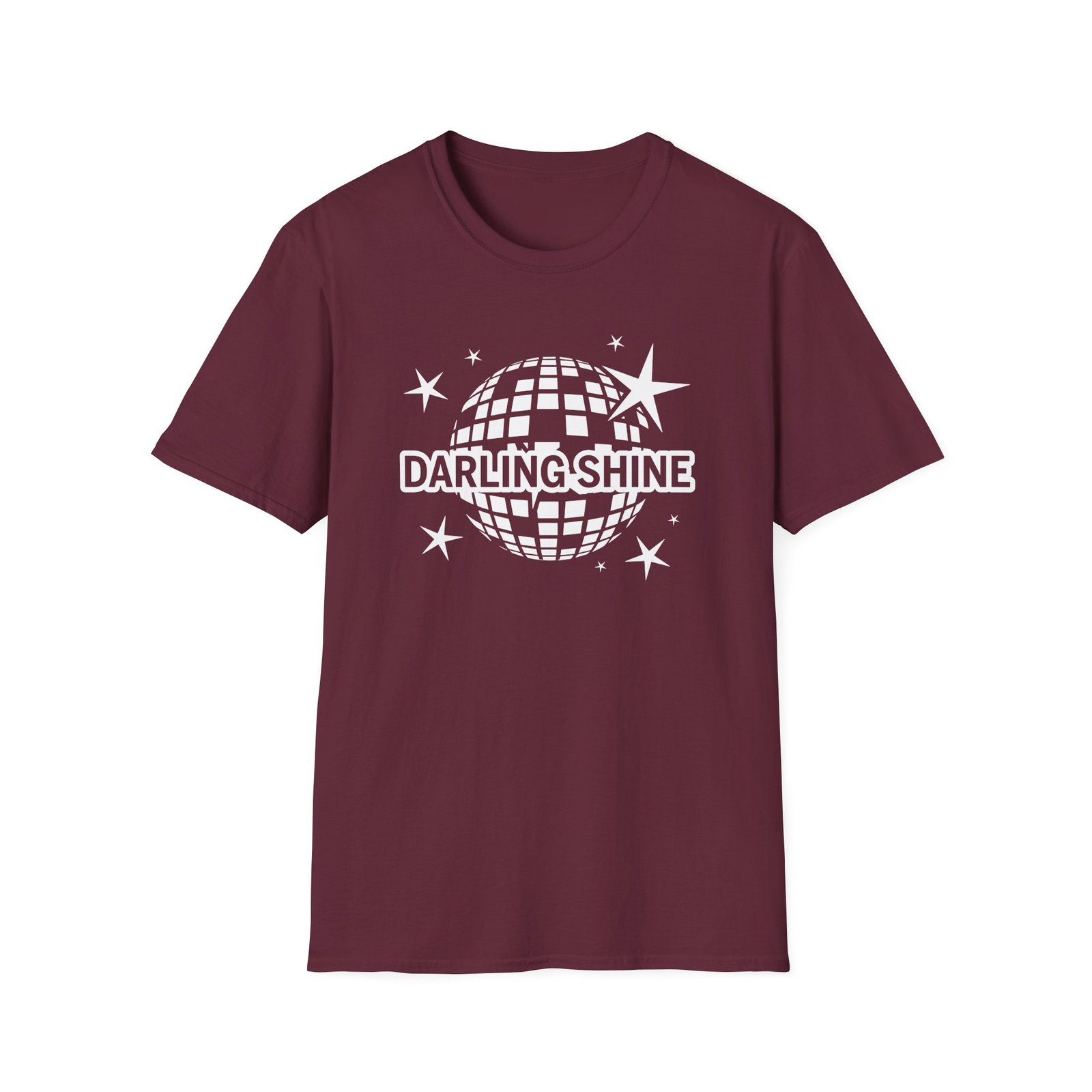 The Darling Shine Disco unisex soft-style t-shirt puts a new spin on casual comfort. Made from very soft materials, this tee is 100% cotton for solid colors. Heather colors and sports grey include polyester. The shoulders have twill tape for improved durability. There are no side seams. The collar is made with ribbed knitting to prevent curling damage.