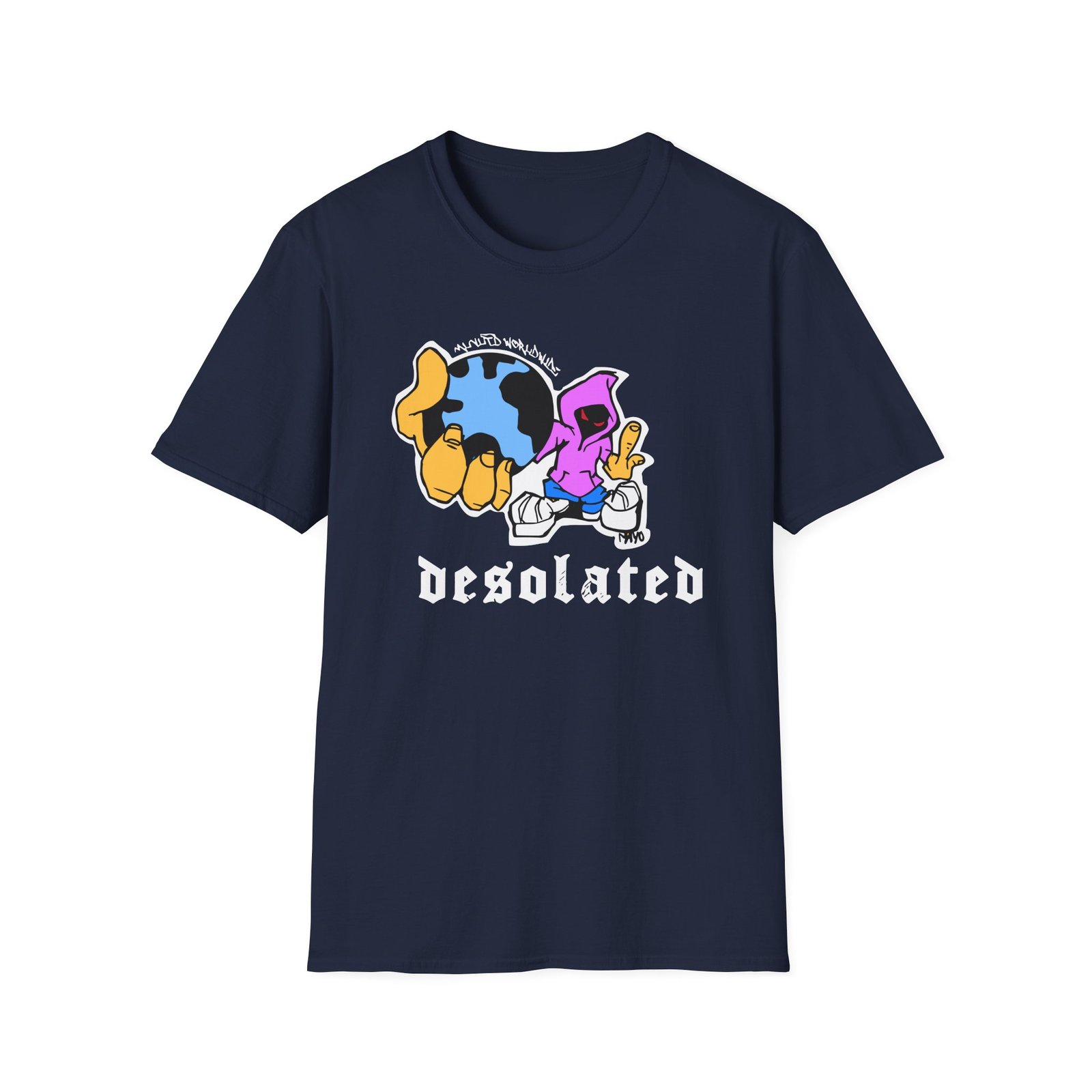 The Desolated Globe unisex soft-style t-shirt puts a new spin on casual comfort. Made from very soft materials, this tee is 100% cotton for solid colors. Heather colors and sports grey include polyester. The shoulders have twill tape for improved durability. There are no side seams. The collar is made with ribbed knitting to prevent curling damage.