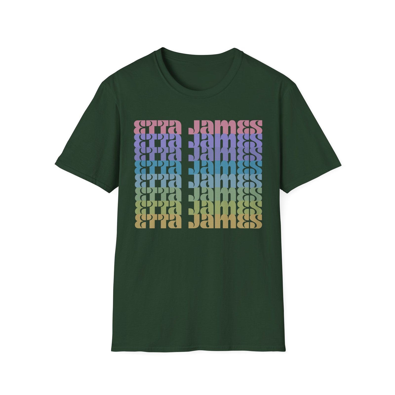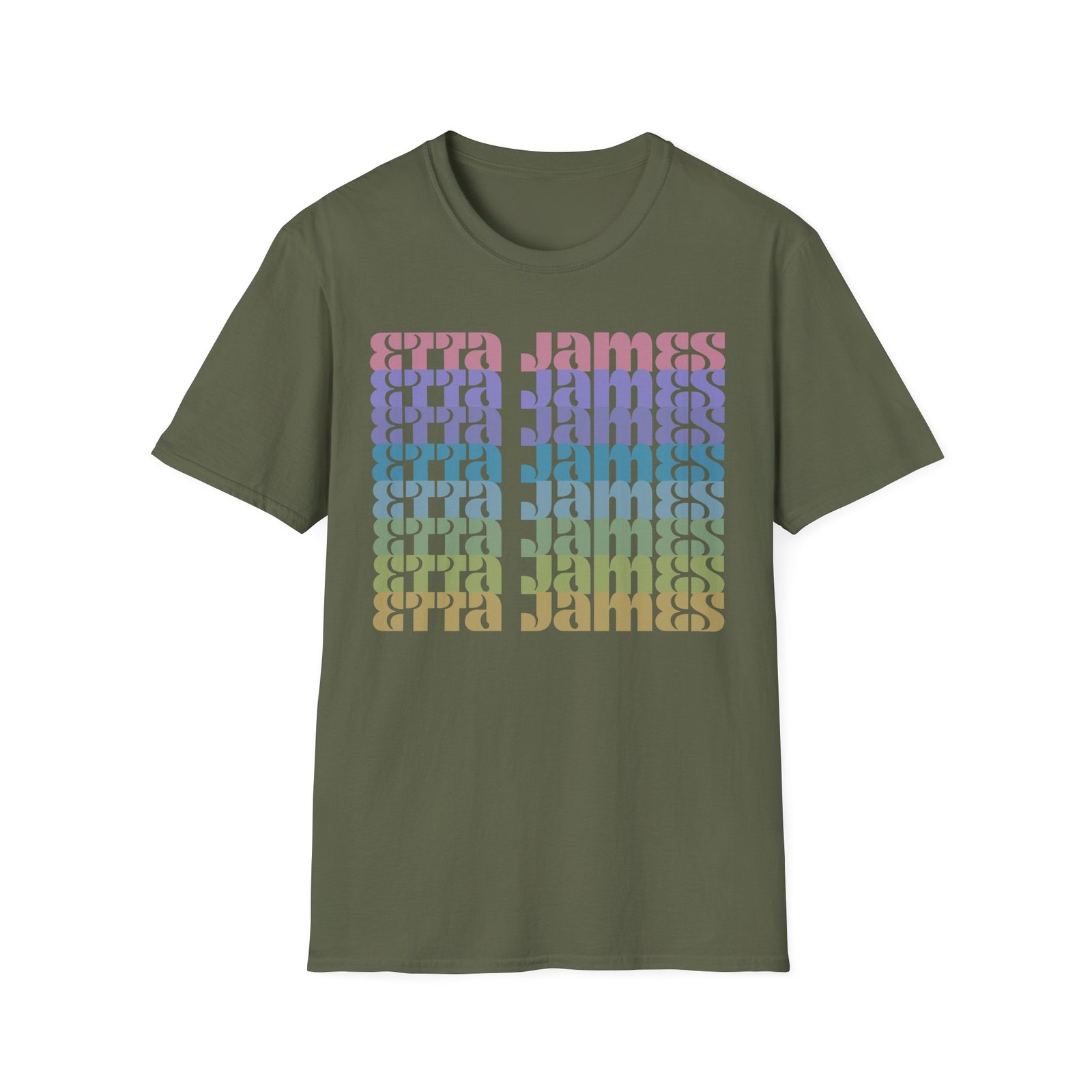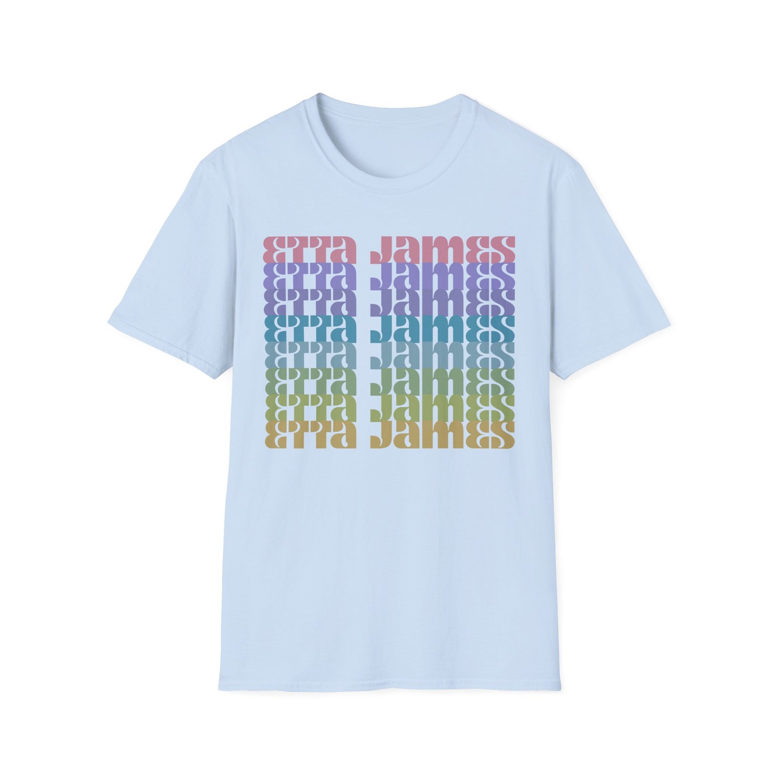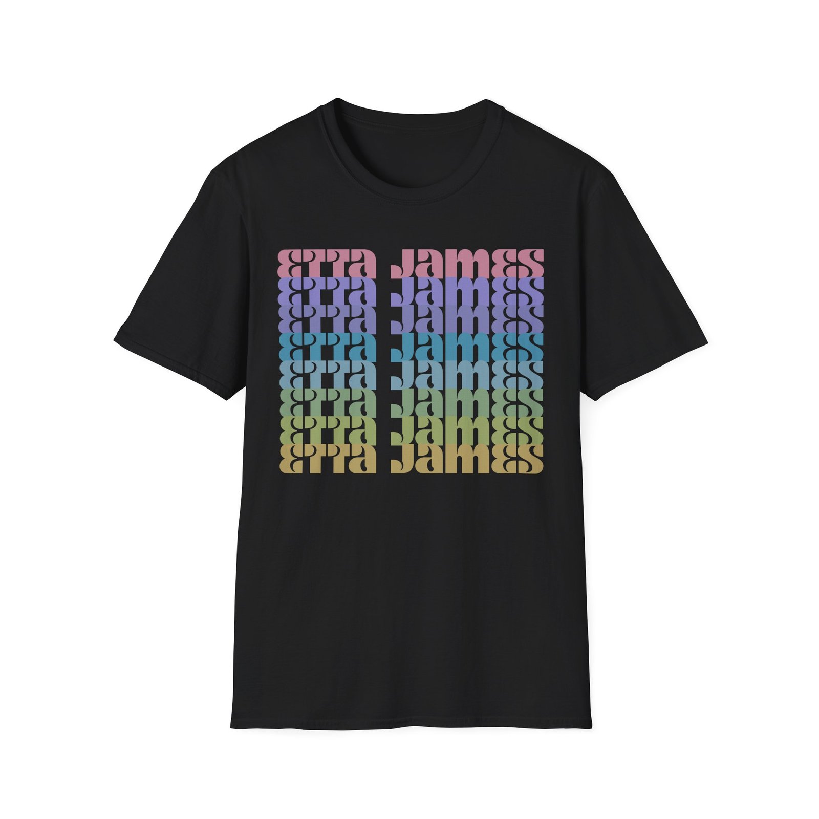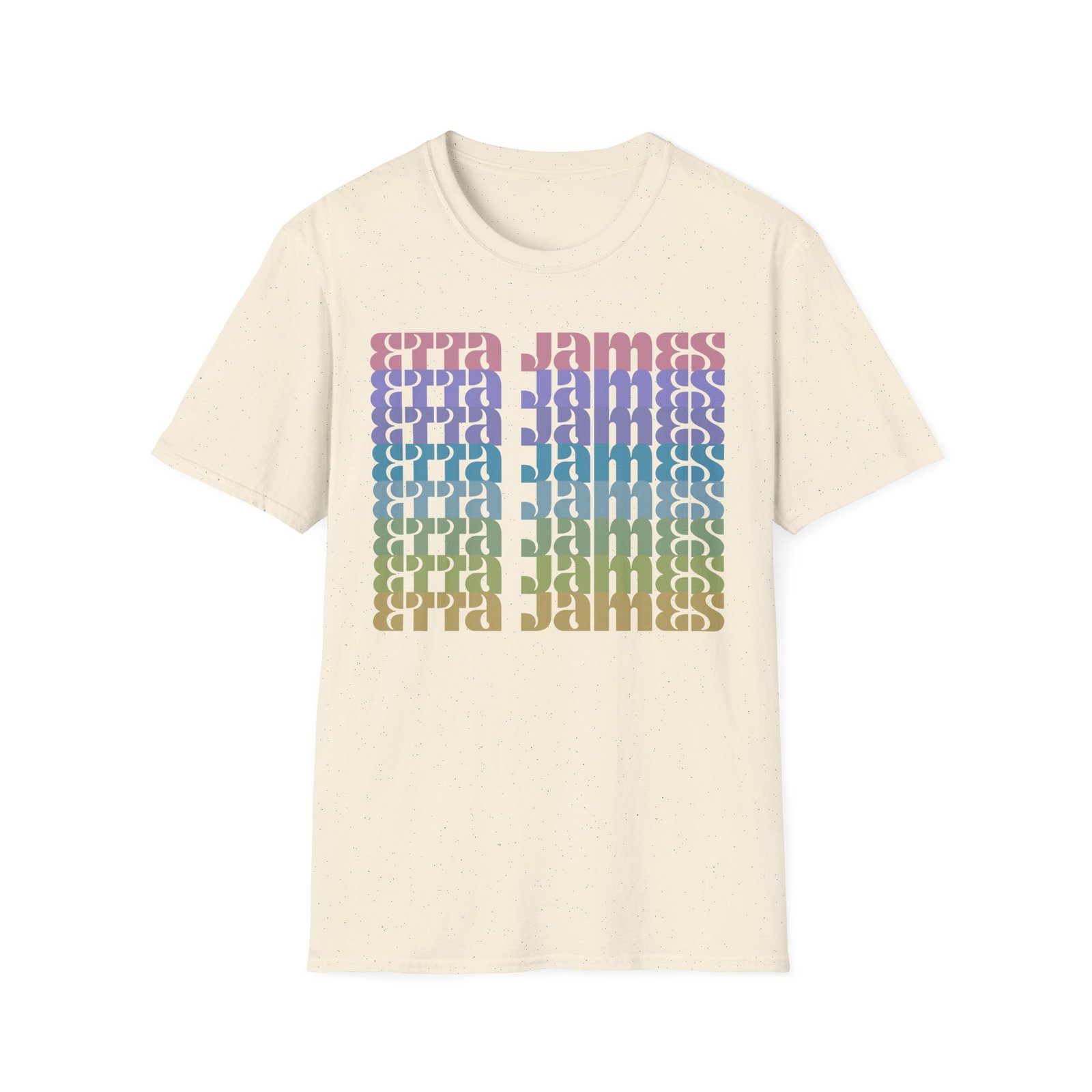 The Etta James Repeat unisex soft-style t-shirt puts a new spin on casual comfort. Made from very soft materials, this tee is 100% cotton for solid colors. Heather colors and sports grey include polyester. The shoulders have twill tape for improved durability. There are no side seams. The collar is made with ribbed knitting to prevent curling damage.