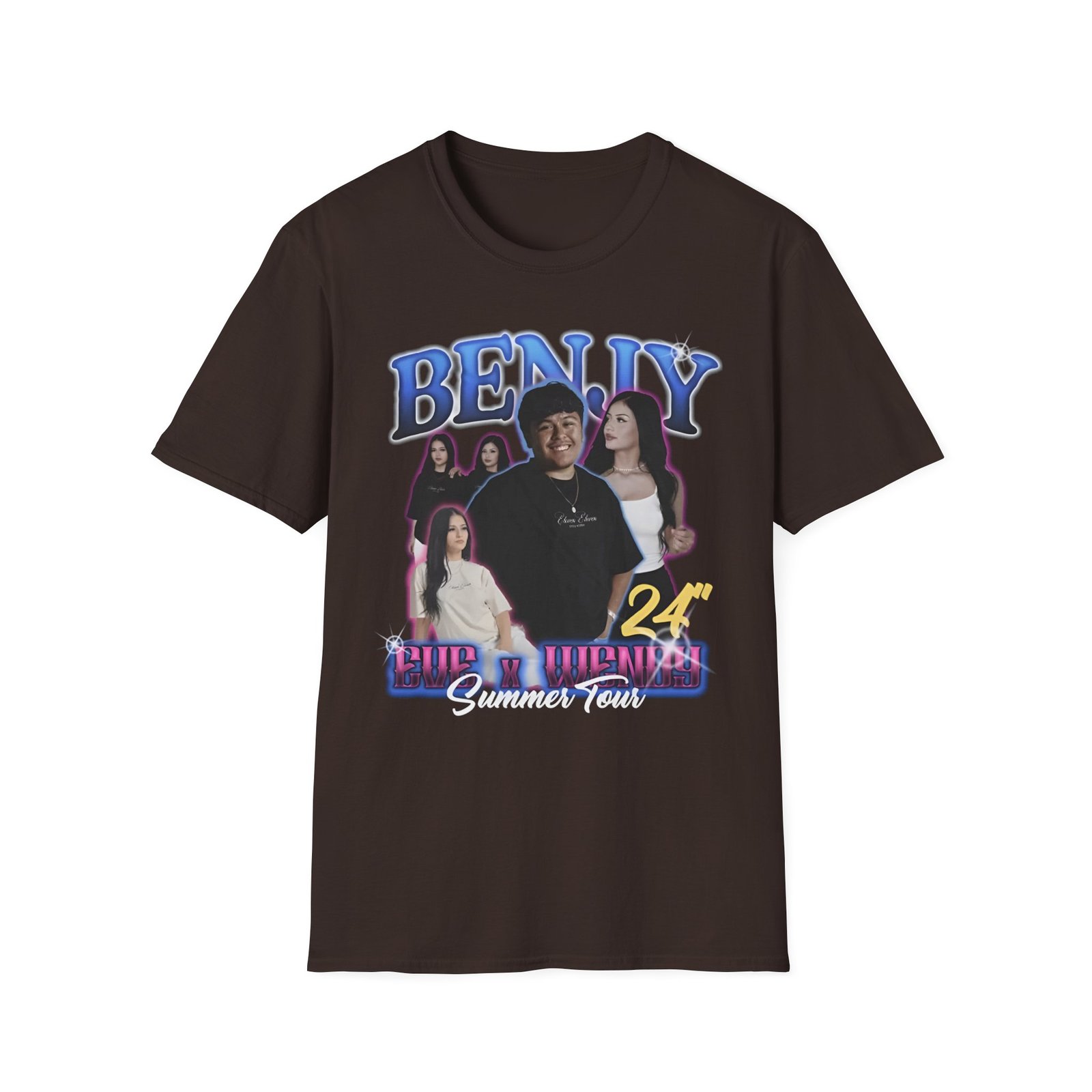The Eve and Wendy Web Tour unisex soft-style t-shirt puts a new spin on casual comfort. Made from very soft materials, this tee is 100% cotton for solid colors. Heather colors and sports grey include polyester. The shoulders have twill tape for improved durability. There are no side seams. The collar is made with ribbed knitting to prevent curling damage.