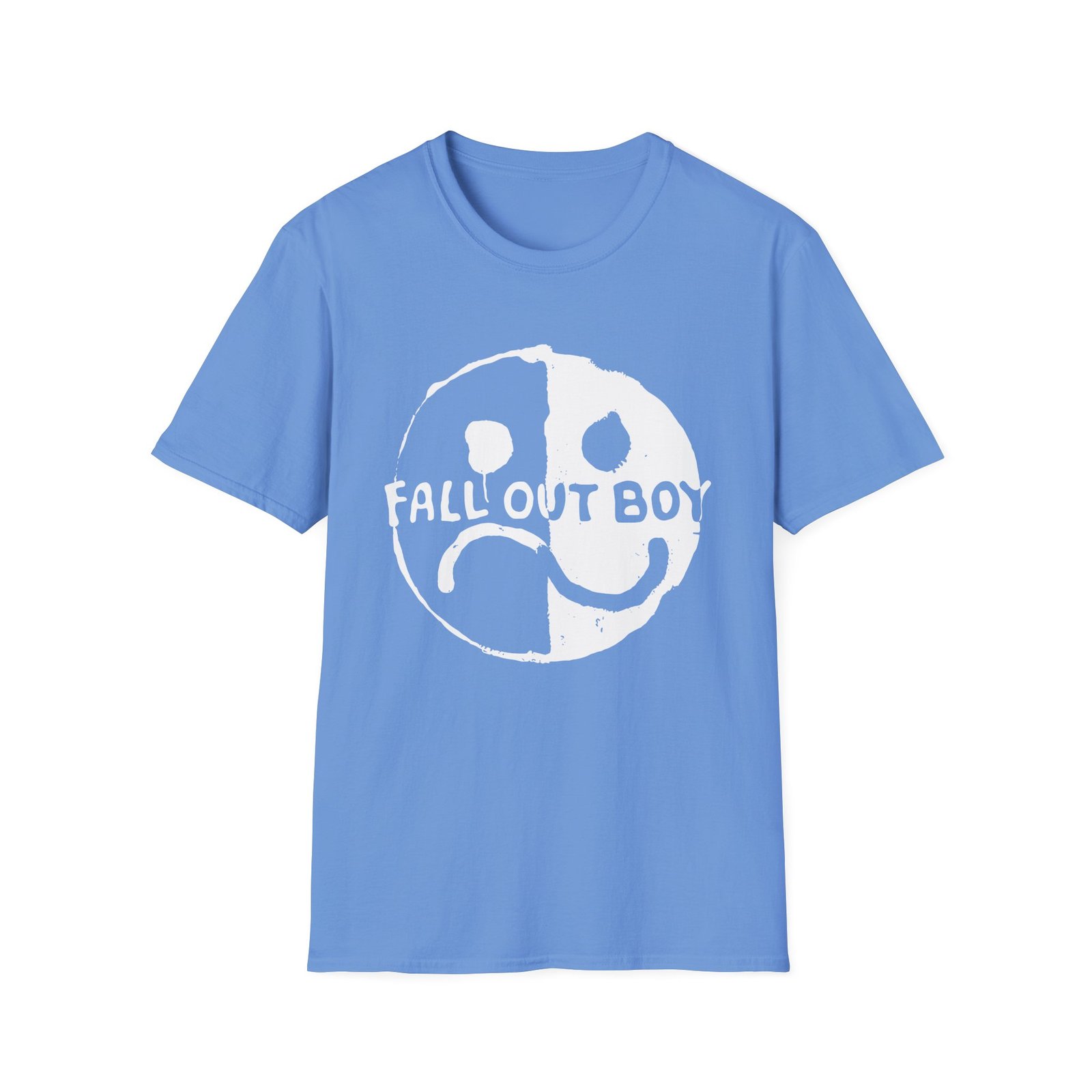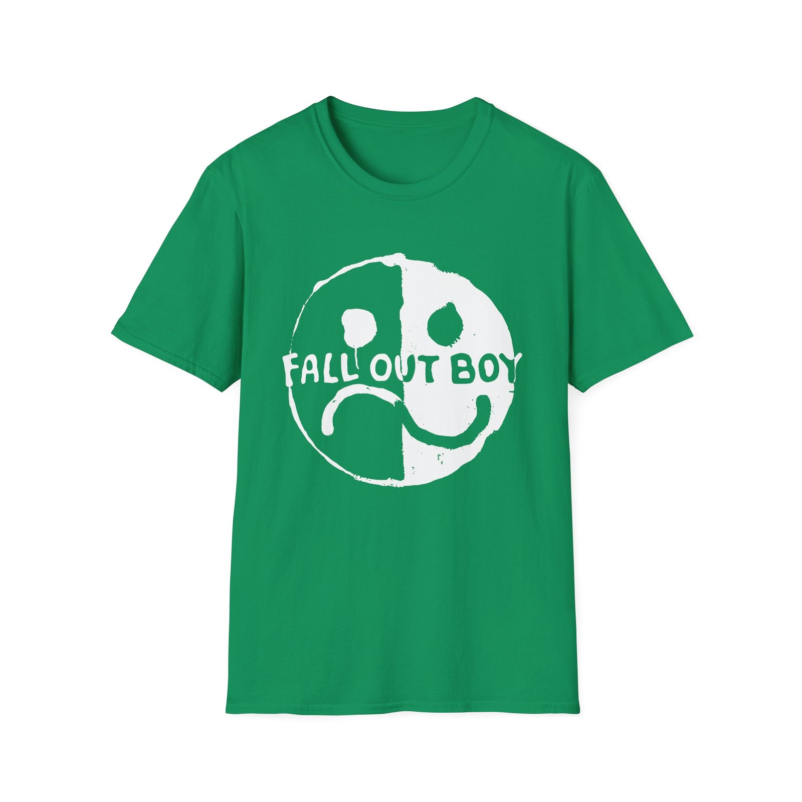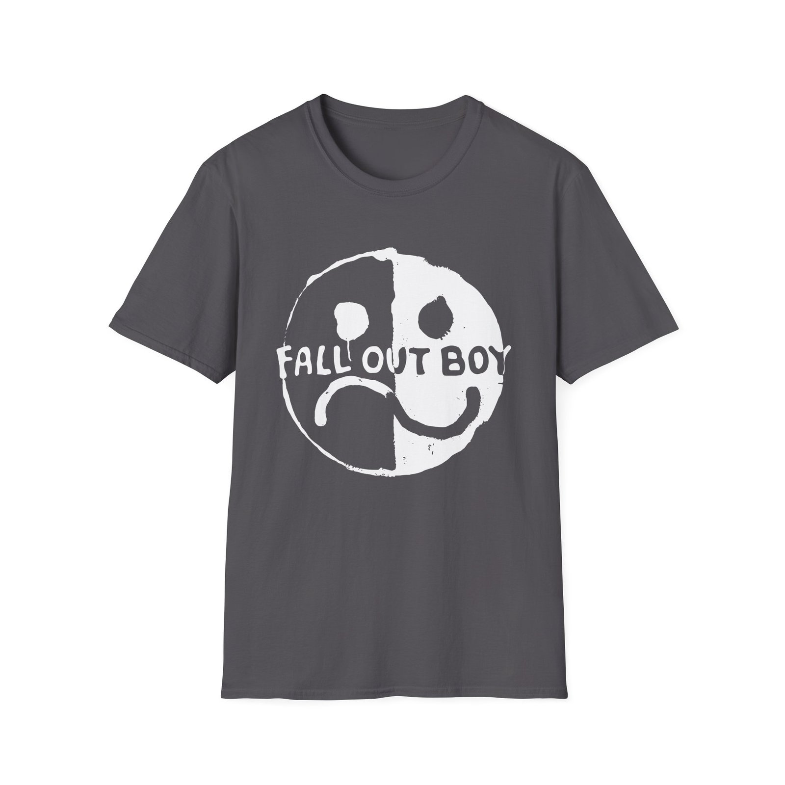 The Fall Out Boy Smile Frown unisex soft-style t-shirt puts a new spin on casual comfort. Made from very soft materials, this tee is 100% cotton for solid colors. Heather colors and sports grey include polyester. The shoulders have twill tape for improved durability. There are no side seams. The collar is made with ribbed knitting to prevent curling damage.