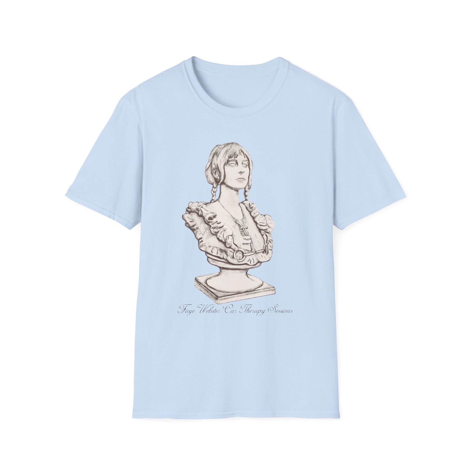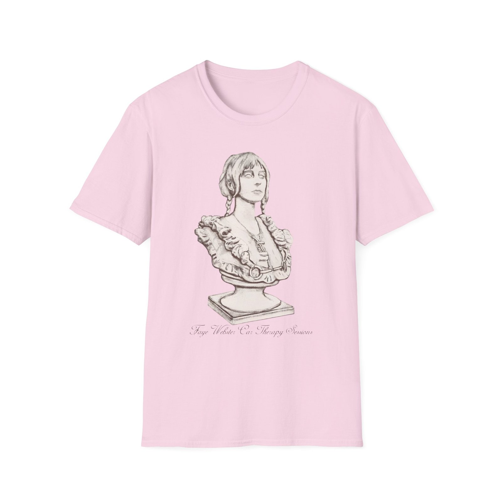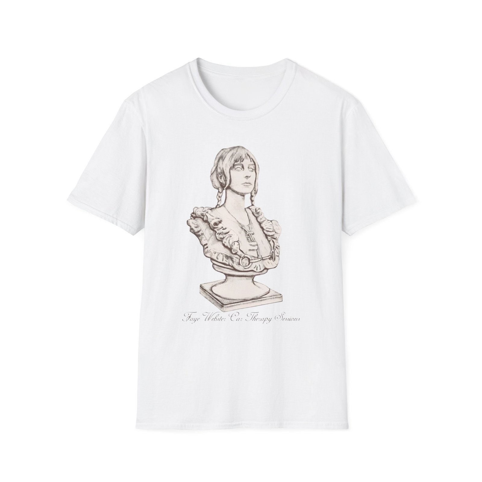 The Faye Webster Car Therapy Sessions Bust unisex soft-style t-shirt puts a new spin on casual comfort. Made from very soft materials, this tee is 100% cotton for solid colors. Heather colors and sports grey include polyester. The shoulders have twill tape for improved durability. There are no side seams. The collar is made with ribbed knitting to prevent curling damage.