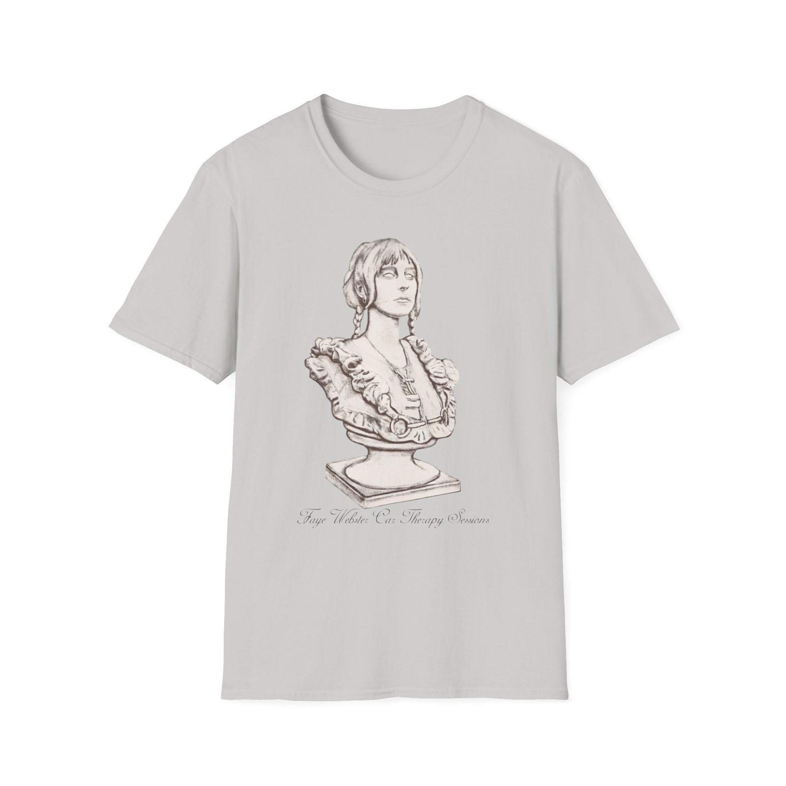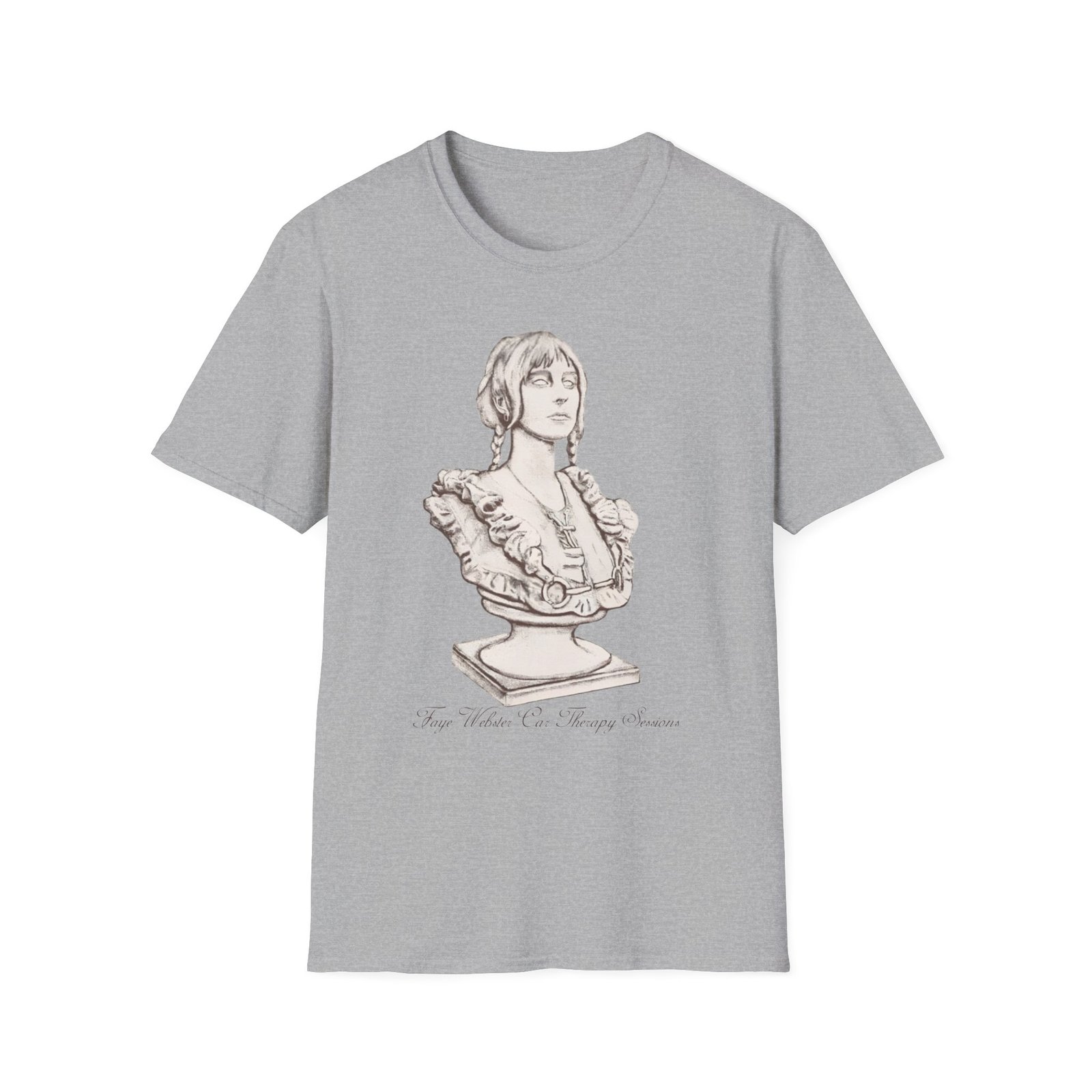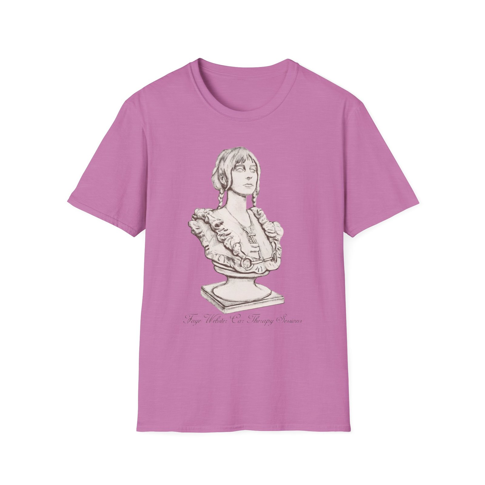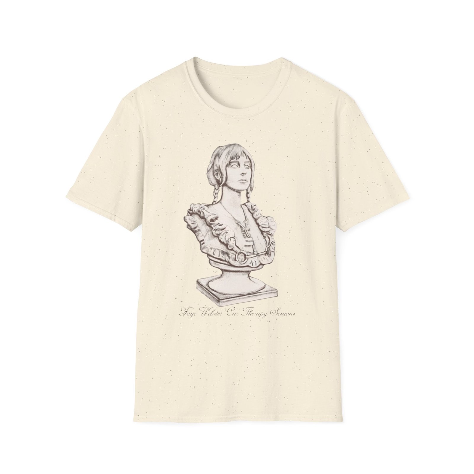 The Faye Webster Car Therapy Sessions Bust unisex soft-style t-shirt puts a new spin on casual comfort. Made from very soft materials, this tee is 100% cotton for solid colors. Heather colors and sports grey include polyester. The shoulders have twill tape for improved durability. There are no side seams. The collar is made with ribbed knitting to prevent curling damage.