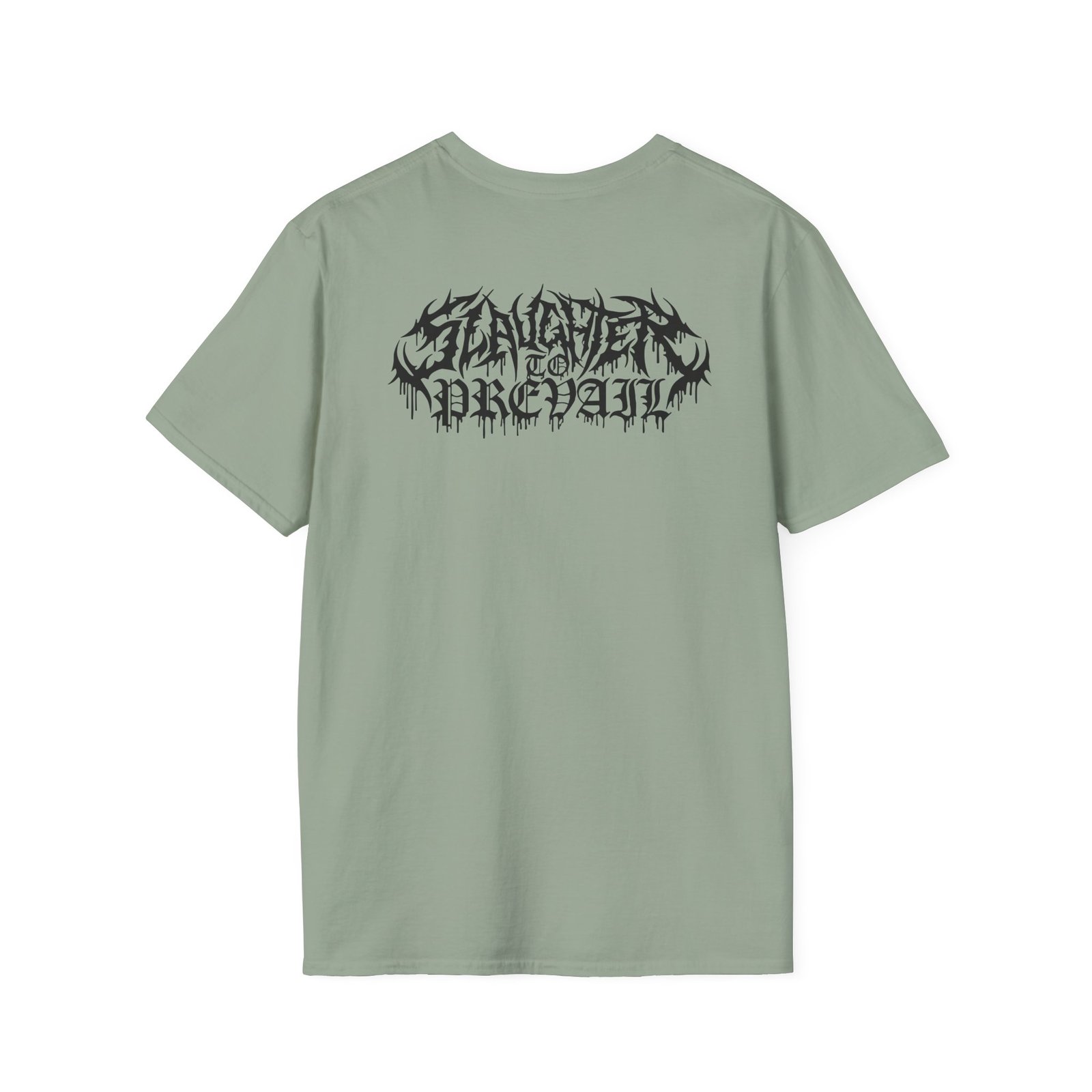 The First Blood Slaughter to Prevail Adi Logo unisex soft-style t-shirt puts a new spin on casual comfort. Made from very soft materials, this tee is 100% cotton for solid colors. Heather colors and sports grey include polyester. The shoulders have twill tape for improved durability. There are no side seams. The collar is made with ribbed knitting to prevent curling damage.