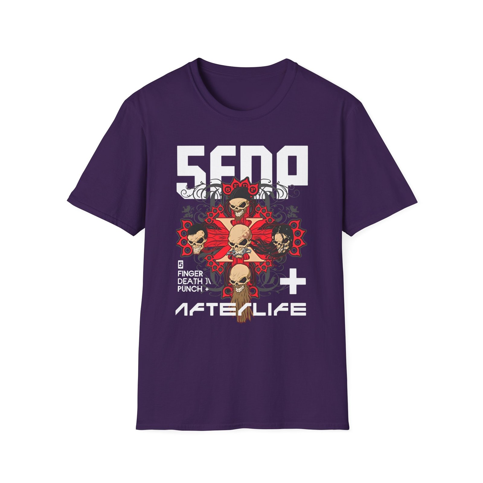 The Five Finger Death Punch Afterlife Unisex Softstyle T-Shirt puts a new spin on casual comfort. Made from very soft materials, this tee is 100% cotton for solid colors. Heather colors and sports grey include polyester. The shoulders have twill tape for improved durability. There are no side seams. The collar is made with ribbed knitting to prevent curling damage.