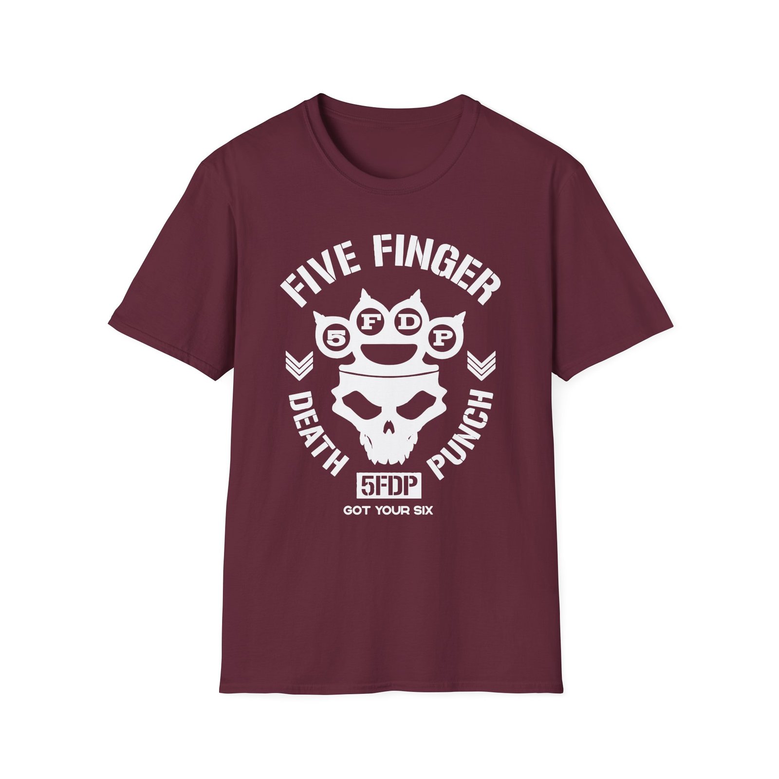 The Five Finger Death Punch Knucklehead Unisex Softstyle T-Shirt puts a new spin on casual comfort. Made from very soft materials, this tee is 100% cotton for solid colors. Heather colors and sports grey include polyester. The shoulders have twill tape for improved durability. There are no side seams. The collar is made with ribbed knitting to prevent curling damage.