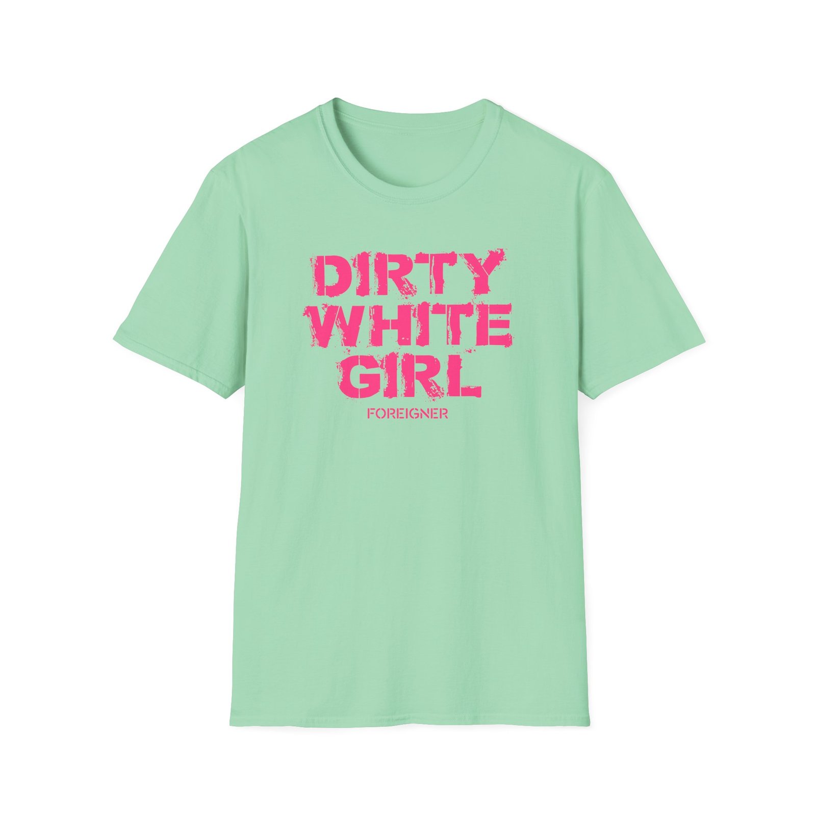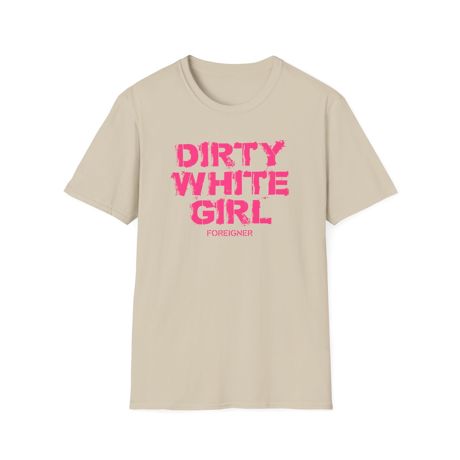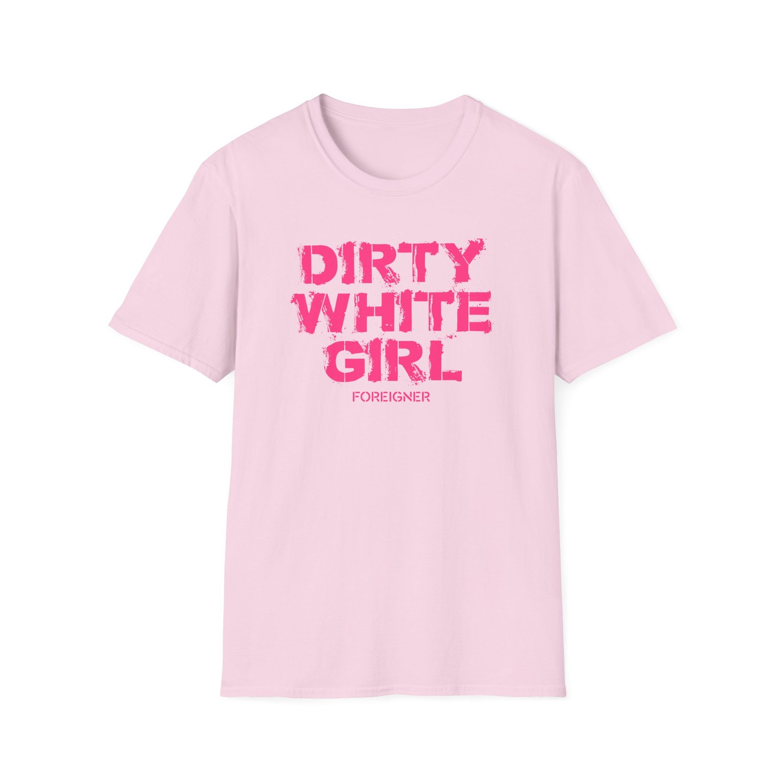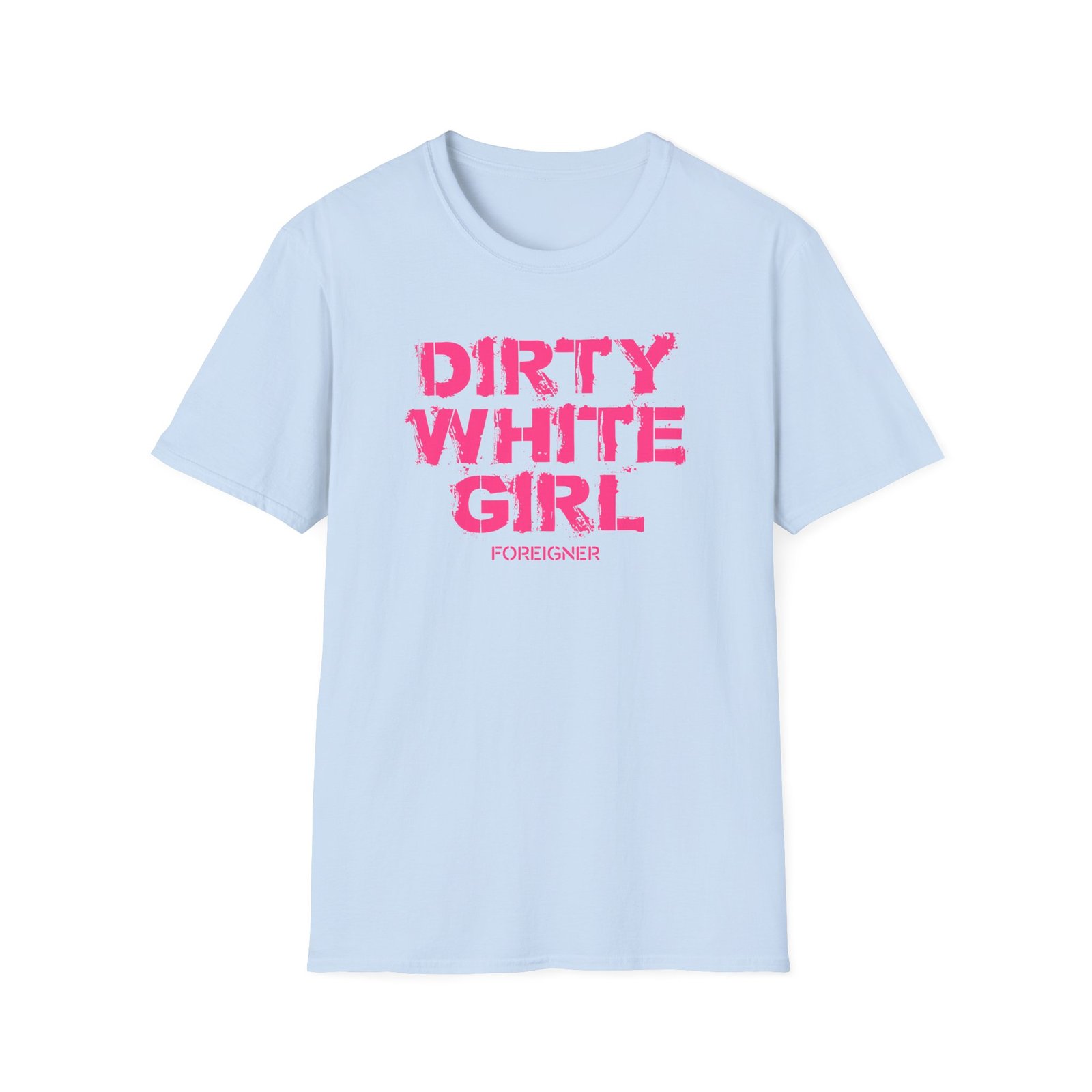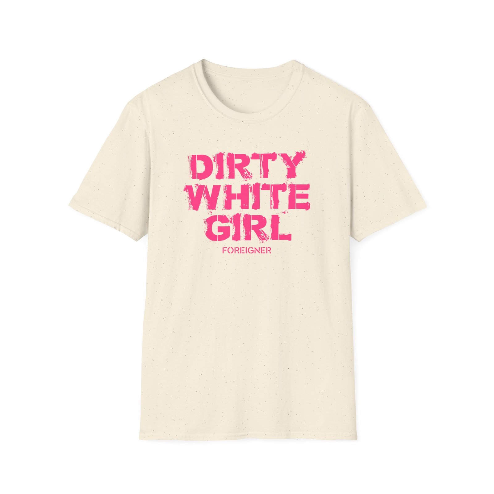 The Foreigner Dirty White Girl unisex soft-style t-shirt puts a new spin on casual comfort. Made from very soft materials, this tee is 100% cotton for solid colors. Heather colors and sports grey include polyester. The shoulders have twill tape for improved durability. There are no side seams. The collar is made with ribbed knitting to prevent curling damage.