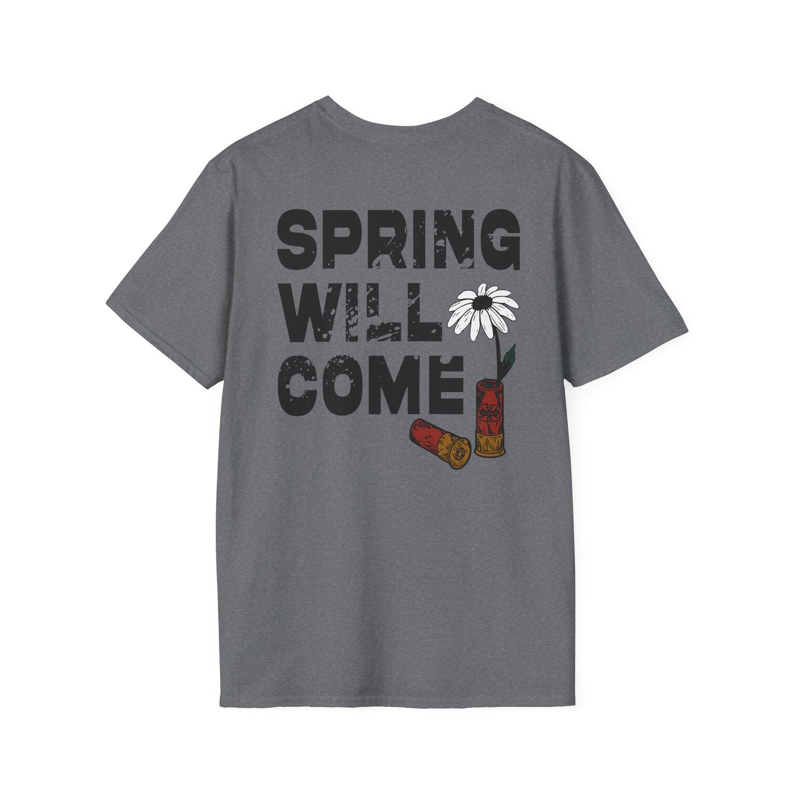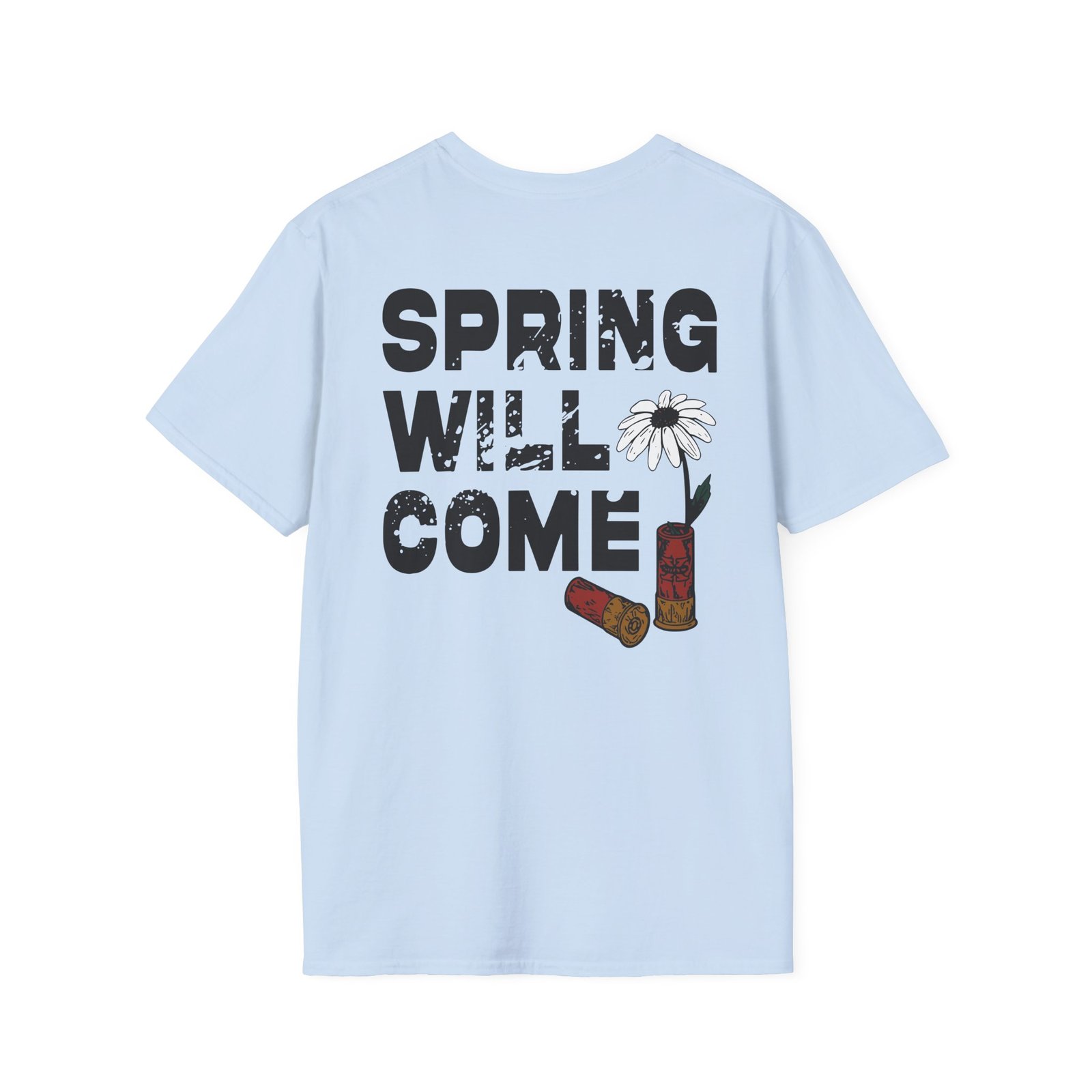 The Foundation Spring Will Come Unisex Softstyle T-Shirt puts a new spin on casual comfort. Made from very soft materials, this tee is 100% cotton for solid colors. Heather colors and sports grey include polyester. The shoulders have twill tape for improved durability. There are no side seams. The collar is made with ribbed knitting to prevent curling damage.