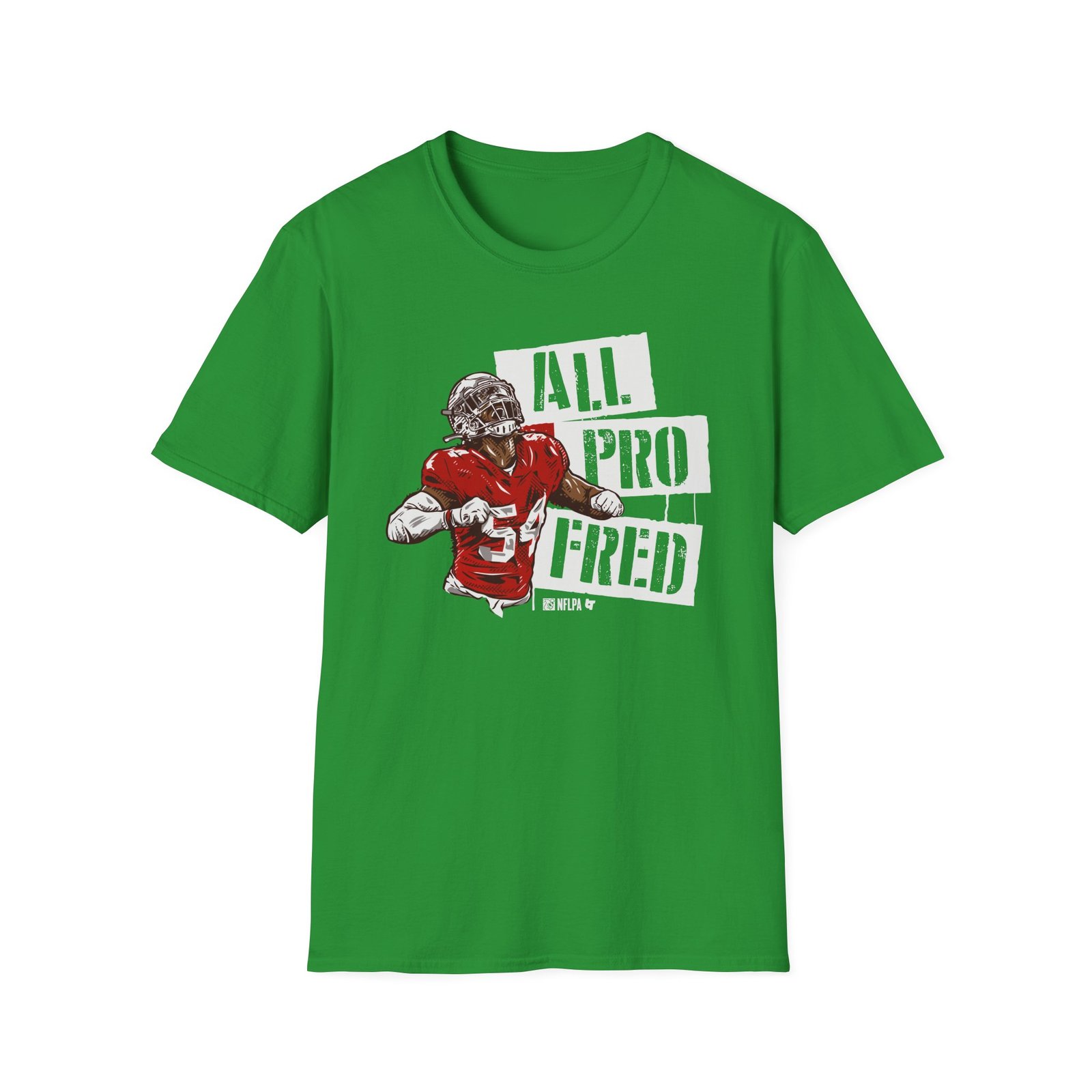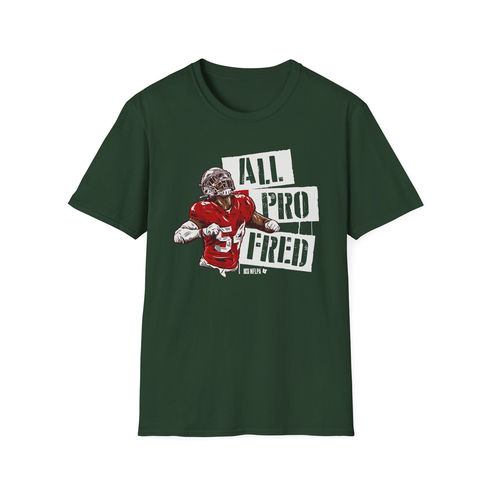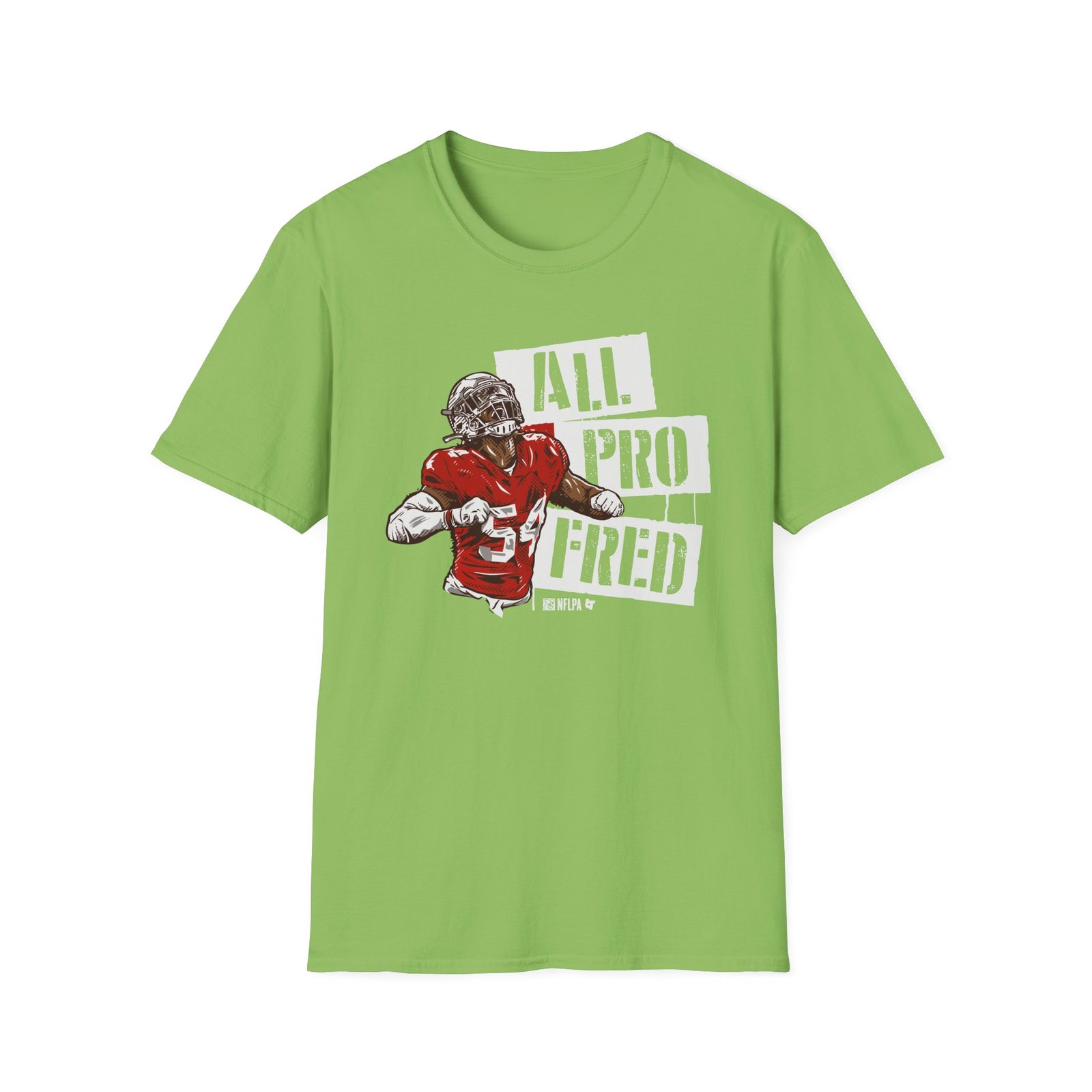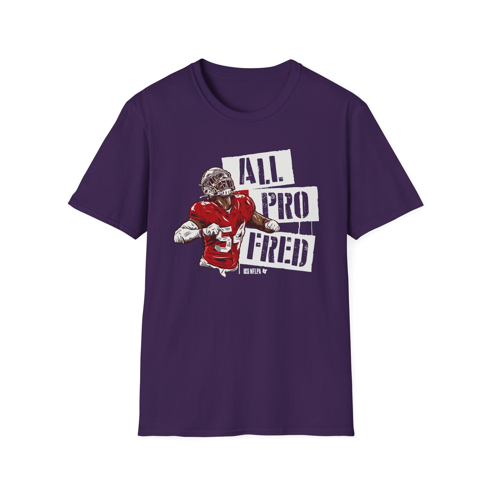 The Fred Warner All-pro Fred unisex soft-style t-shirt puts a new spin on casual comfort. Made from very soft materials, this tee is 100% cotton for solid colors. Heather colors and sports grey include polyester. The shoulders have twill tape for improved durability. There are no side seams. The collar is made with ribbed knitting to prevent curling damage.
