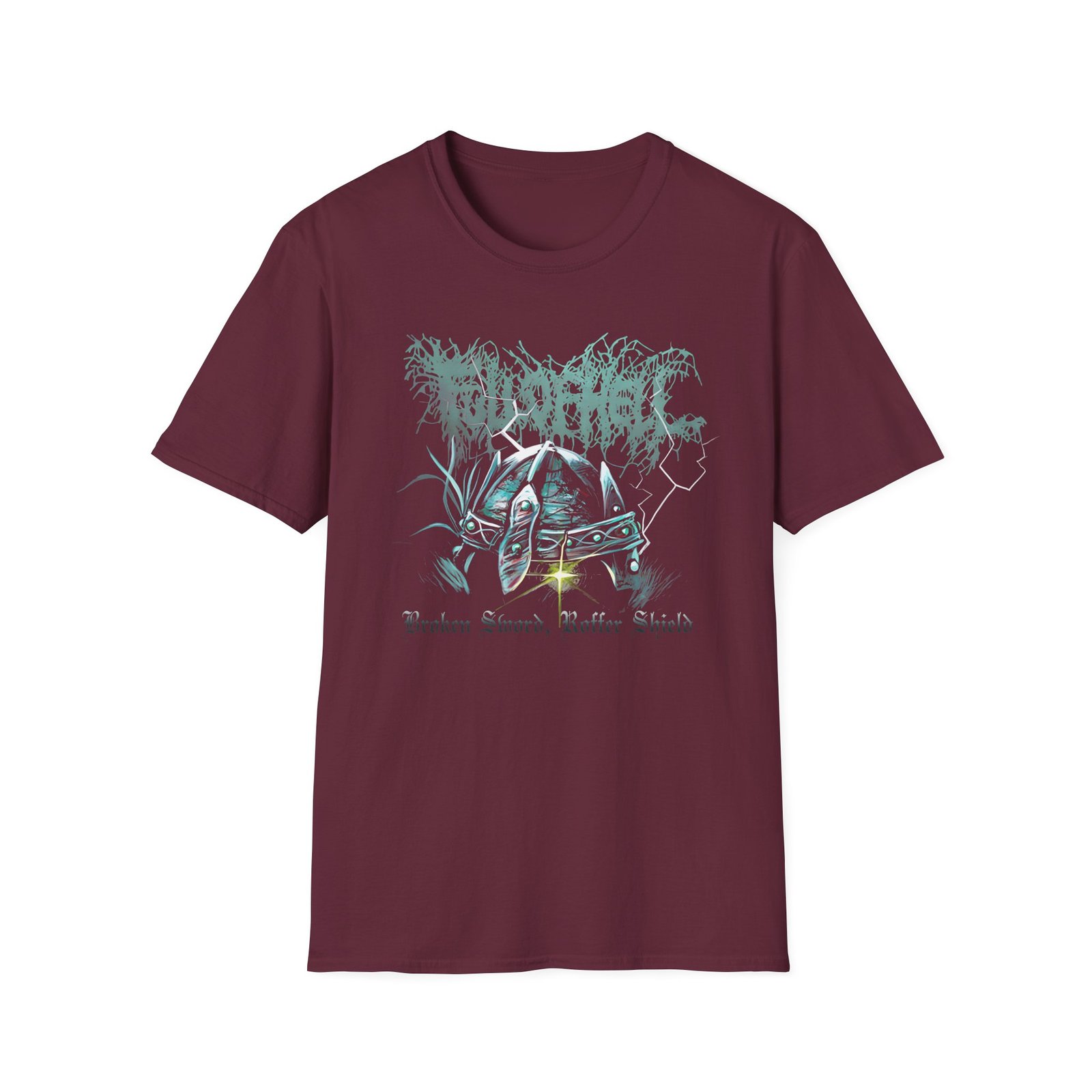 The Full of Hell Broken Sword, Rotten Shield unisex soft-style t-shirt puts a new spin on casual comfort. Made from very soft materials, this tee is 100% cotton for solid colors. Heather colors and sports grey include polyester. The shoulders have twill tape for improved durability. There are no side seams. The collar is made with ribbed knitting to prevent curling damage.