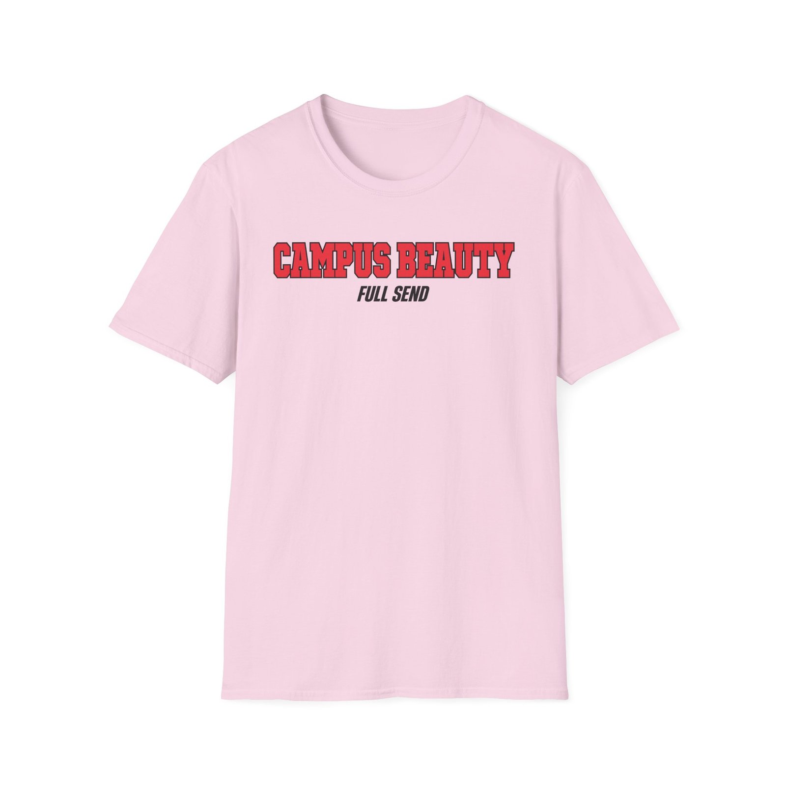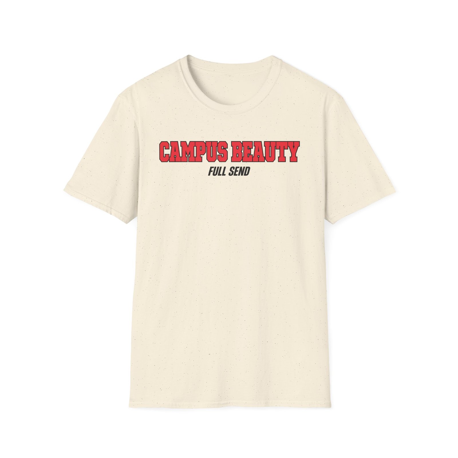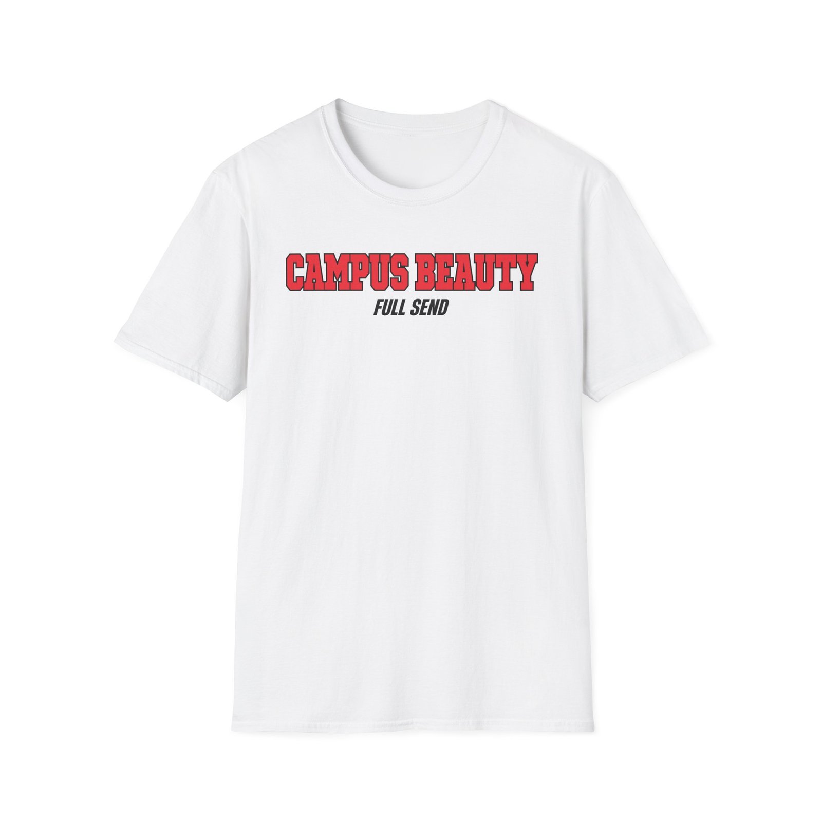 The Full Send Campus Beauty unisex soft-style t-shirt puts a new spin on casual comfort. Made from very soft materials, this tee is 100% cotton for solid colors. Heather colors and sports grey include polyester. The shoulders have twill tape for improved durability. There are no side seams. The collar is made with ribbed knitting to prevent curling damage.