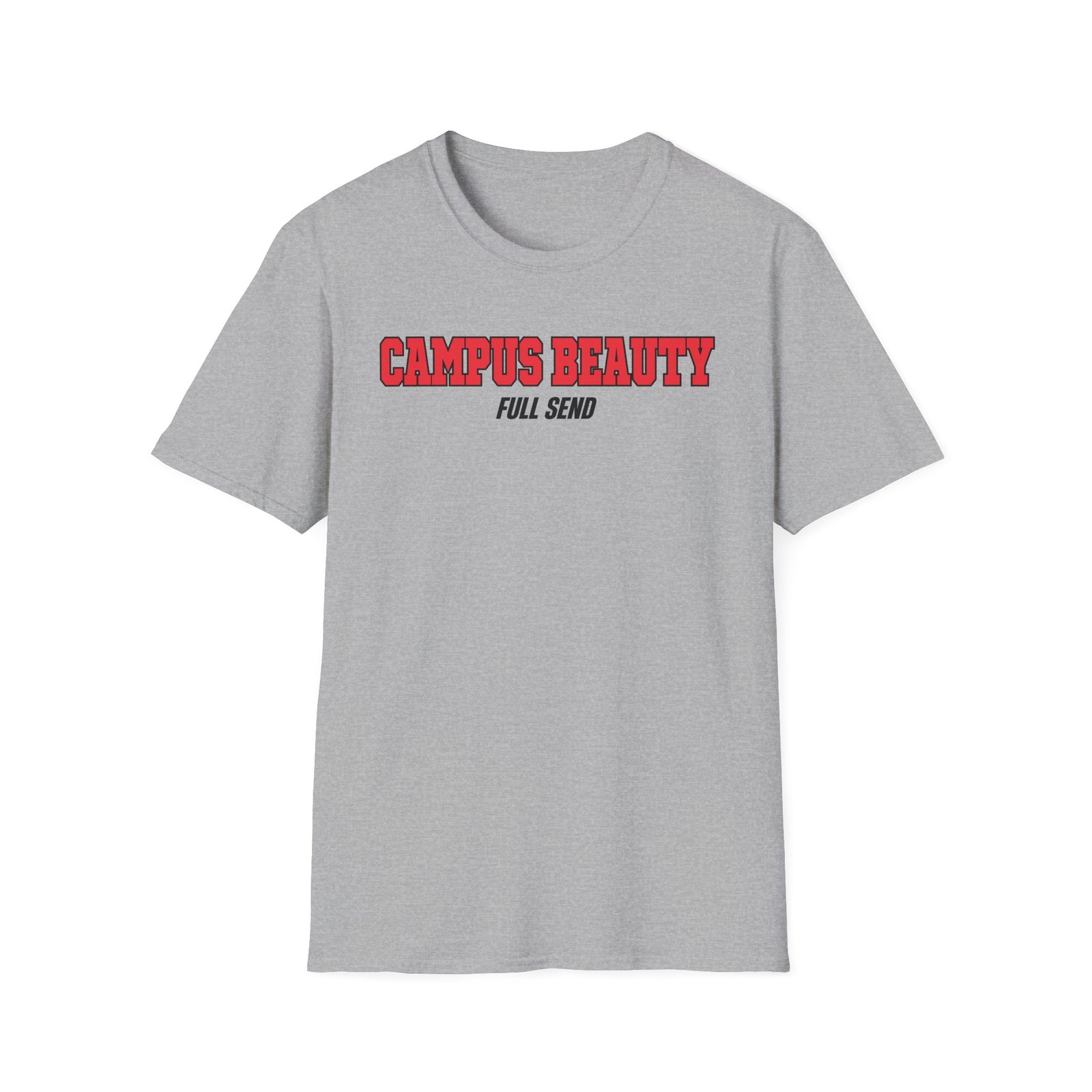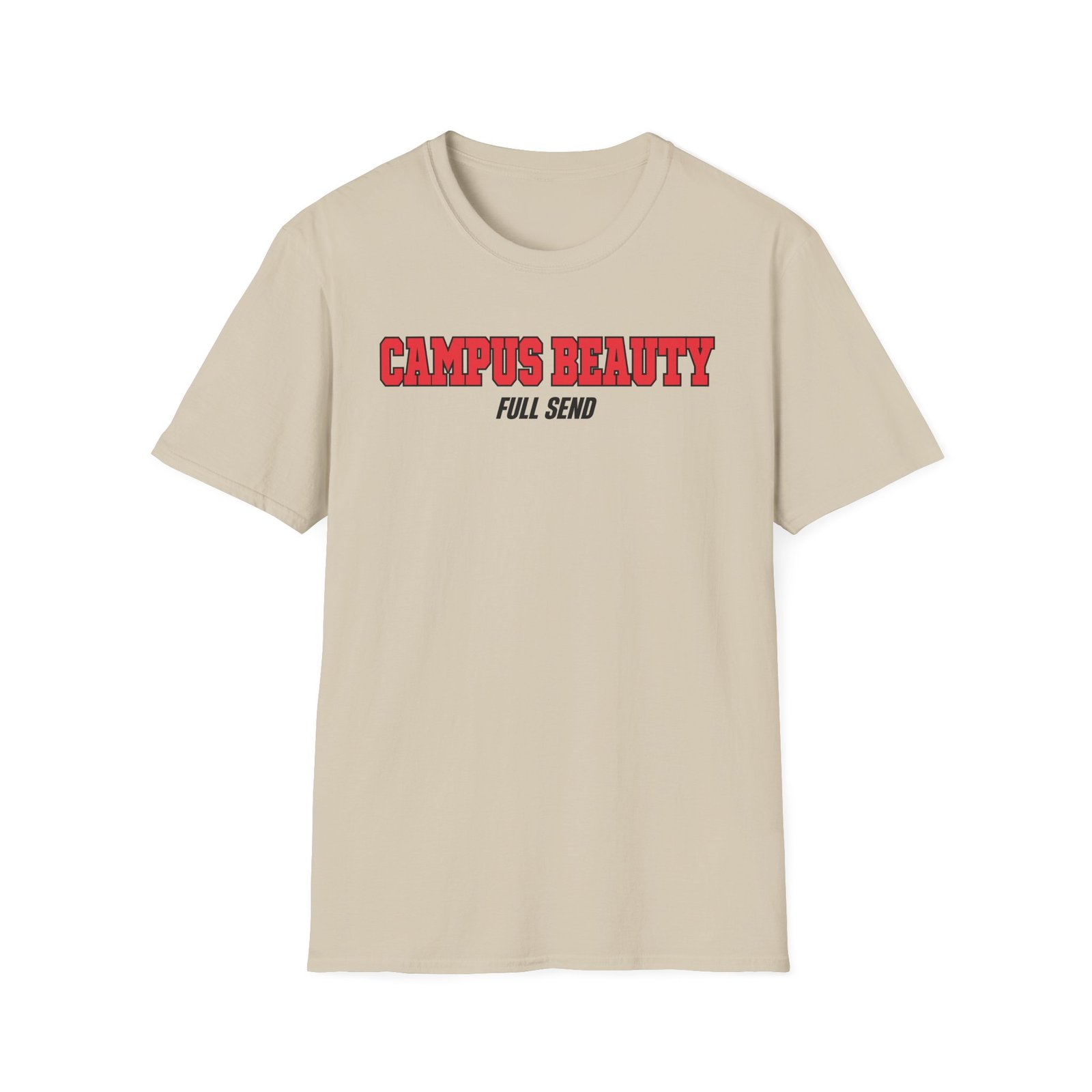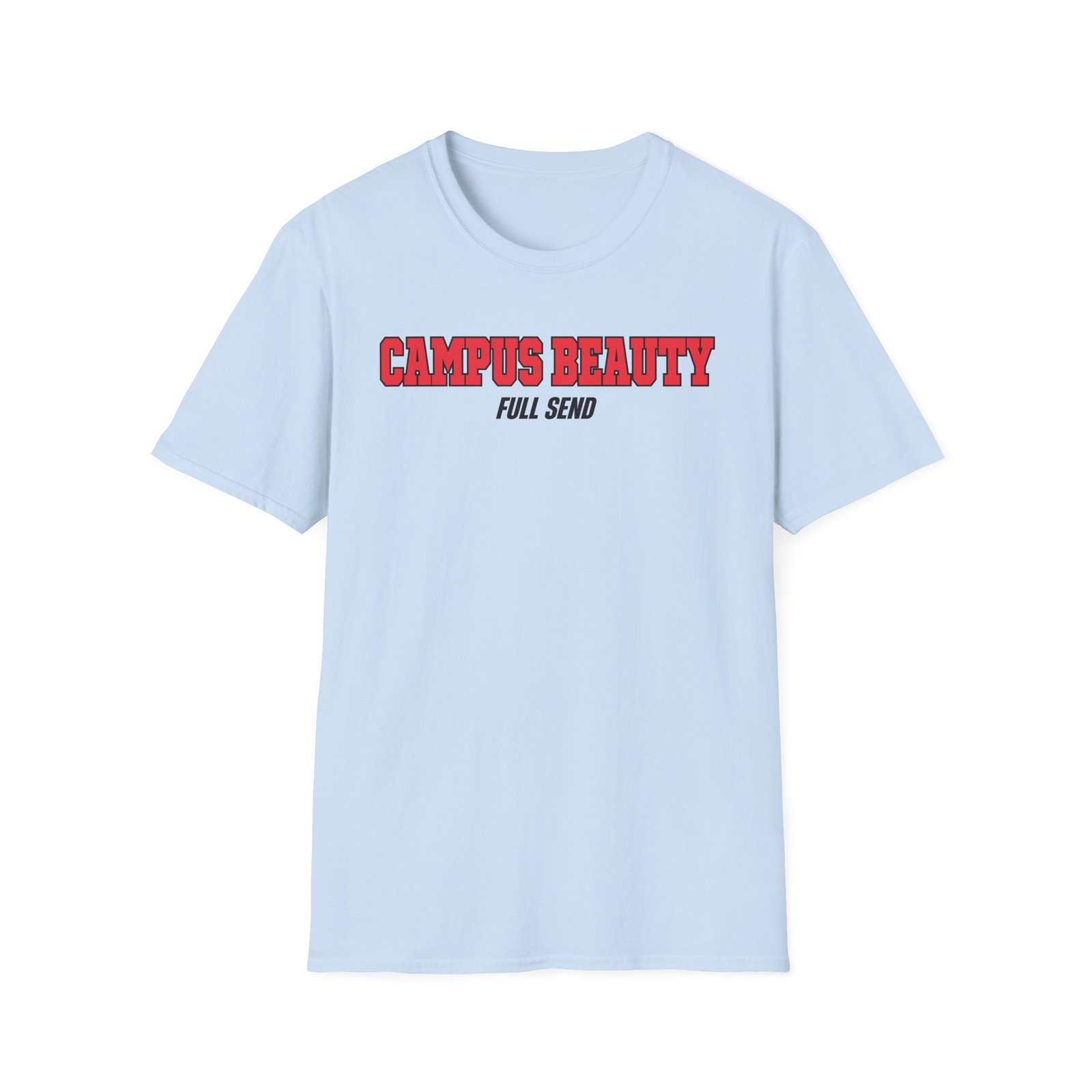 The Full Send Campus Beauty unisex soft-style t-shirt puts a new spin on casual comfort. Made from very soft materials, this tee is 100% cotton for solid colors. Heather colors and sports grey include polyester. The shoulders have twill tape for improved durability. There are no side seams. The collar is made with ribbed knitting to prevent curling damage.