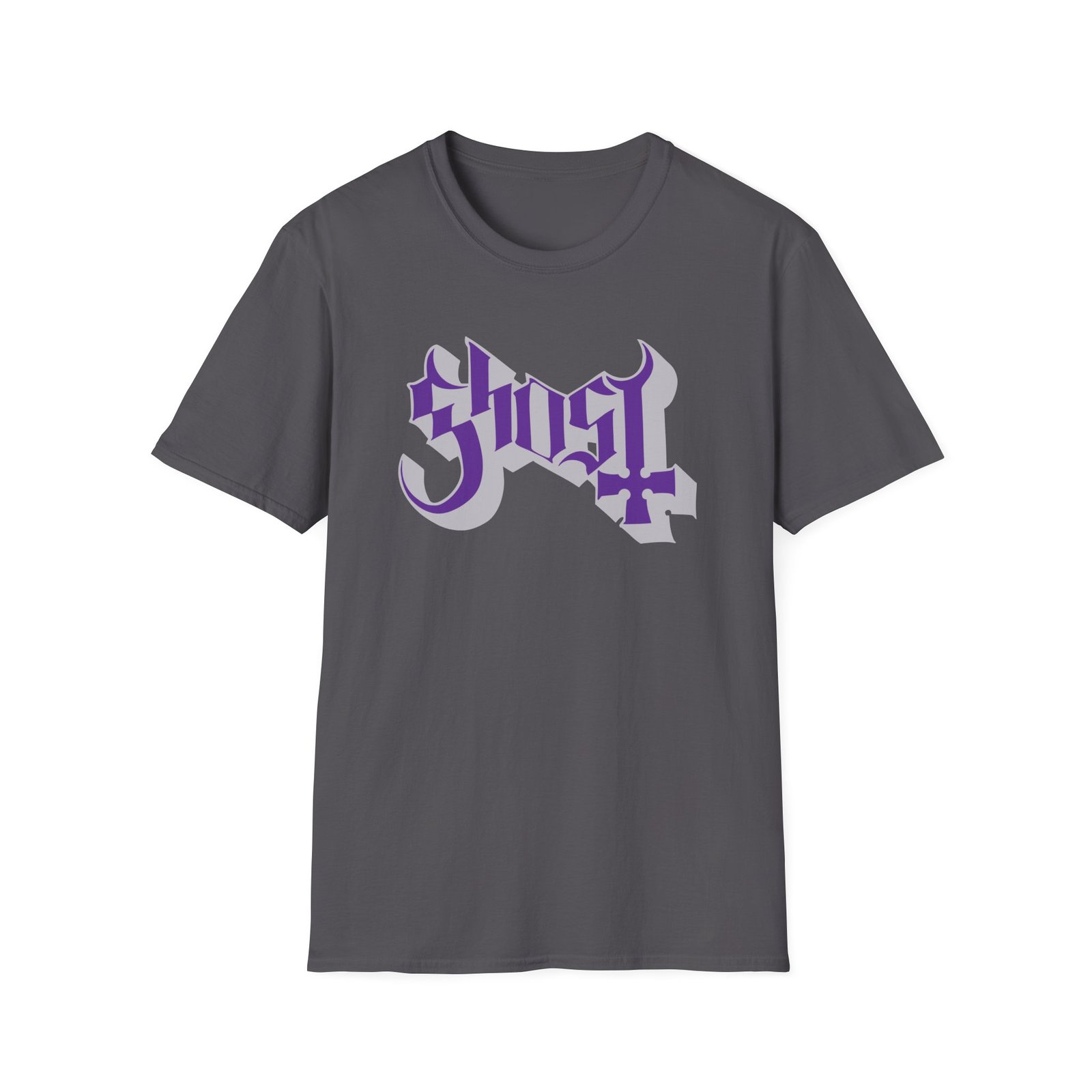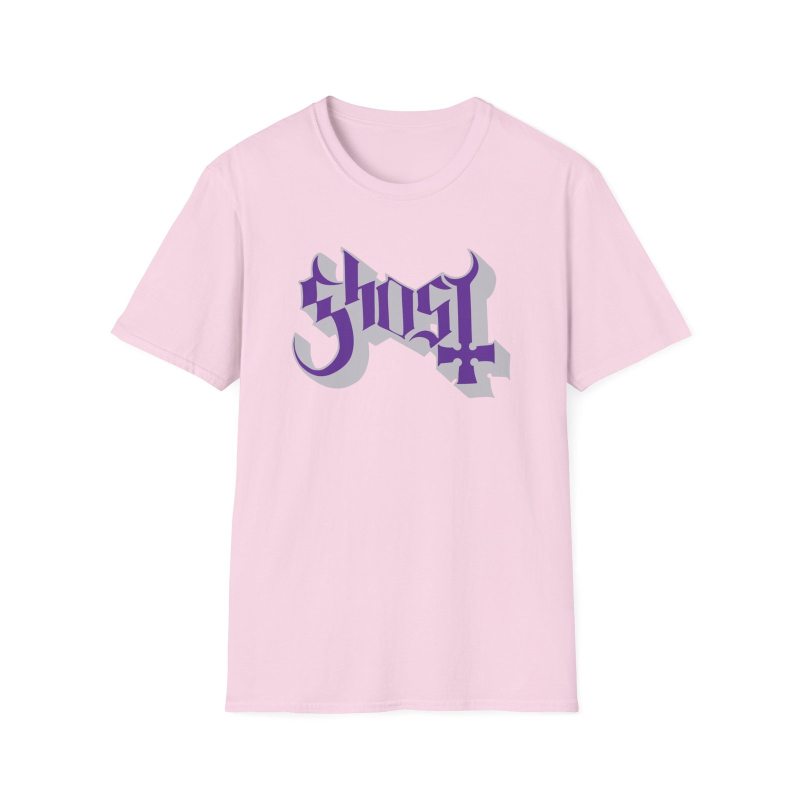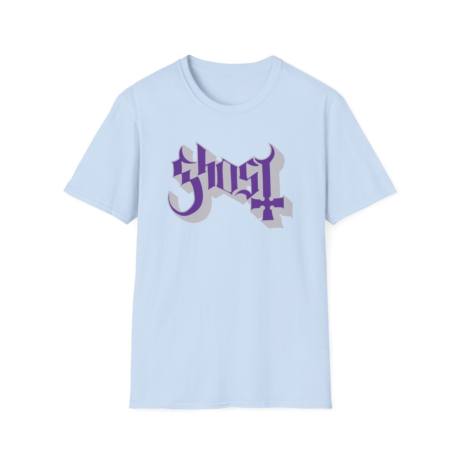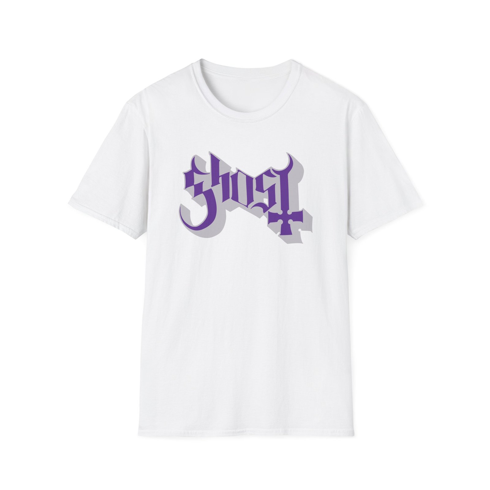 The Ghost Band Chrome Purple Skeletá unisex soft-style t-shirt puts a new spin on casual comfort. Made from very soft materials, this tee is 100% cotton for solid colors. Heather colors and sports grey include polyester. The shoulders have twill tape for improved durability. There are no side seams. The collar is made with ribbed knitting to prevent curling damage.
