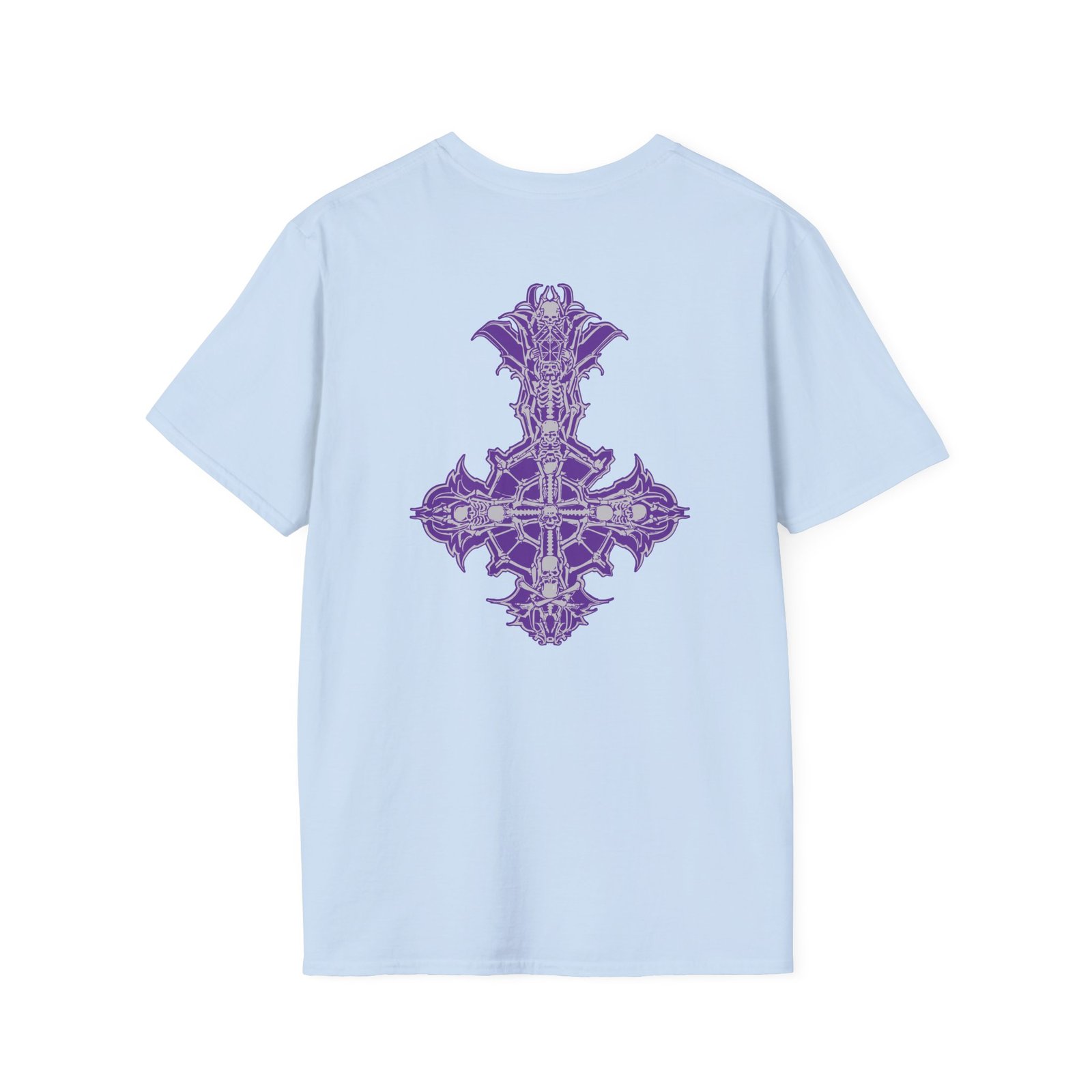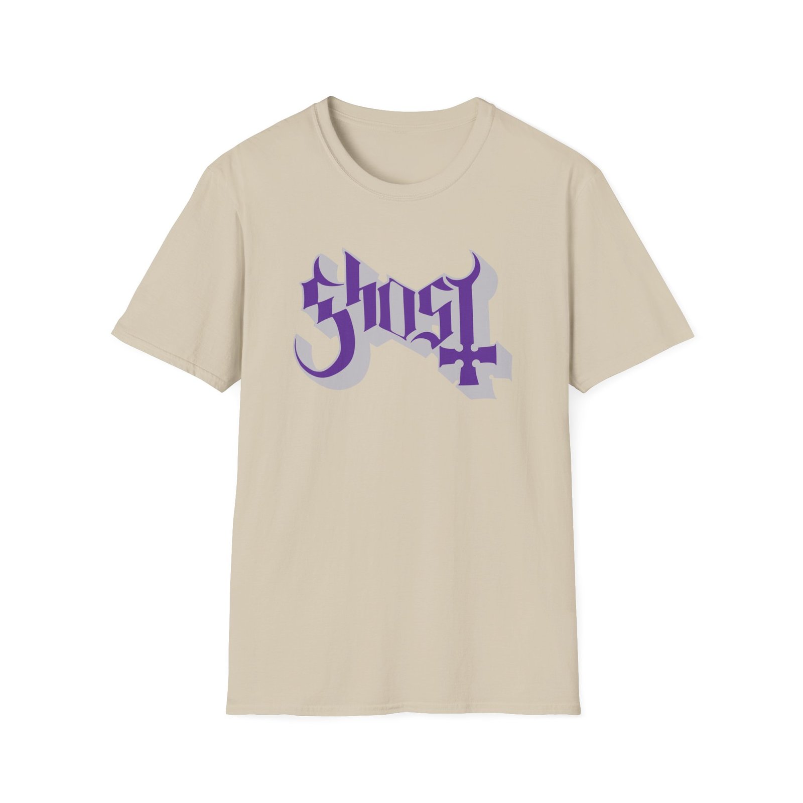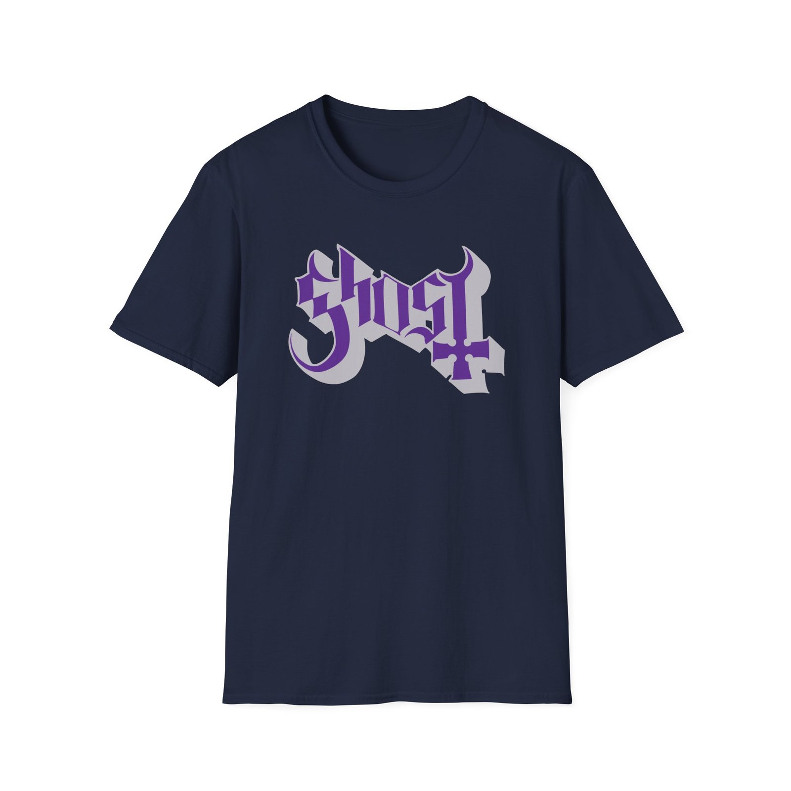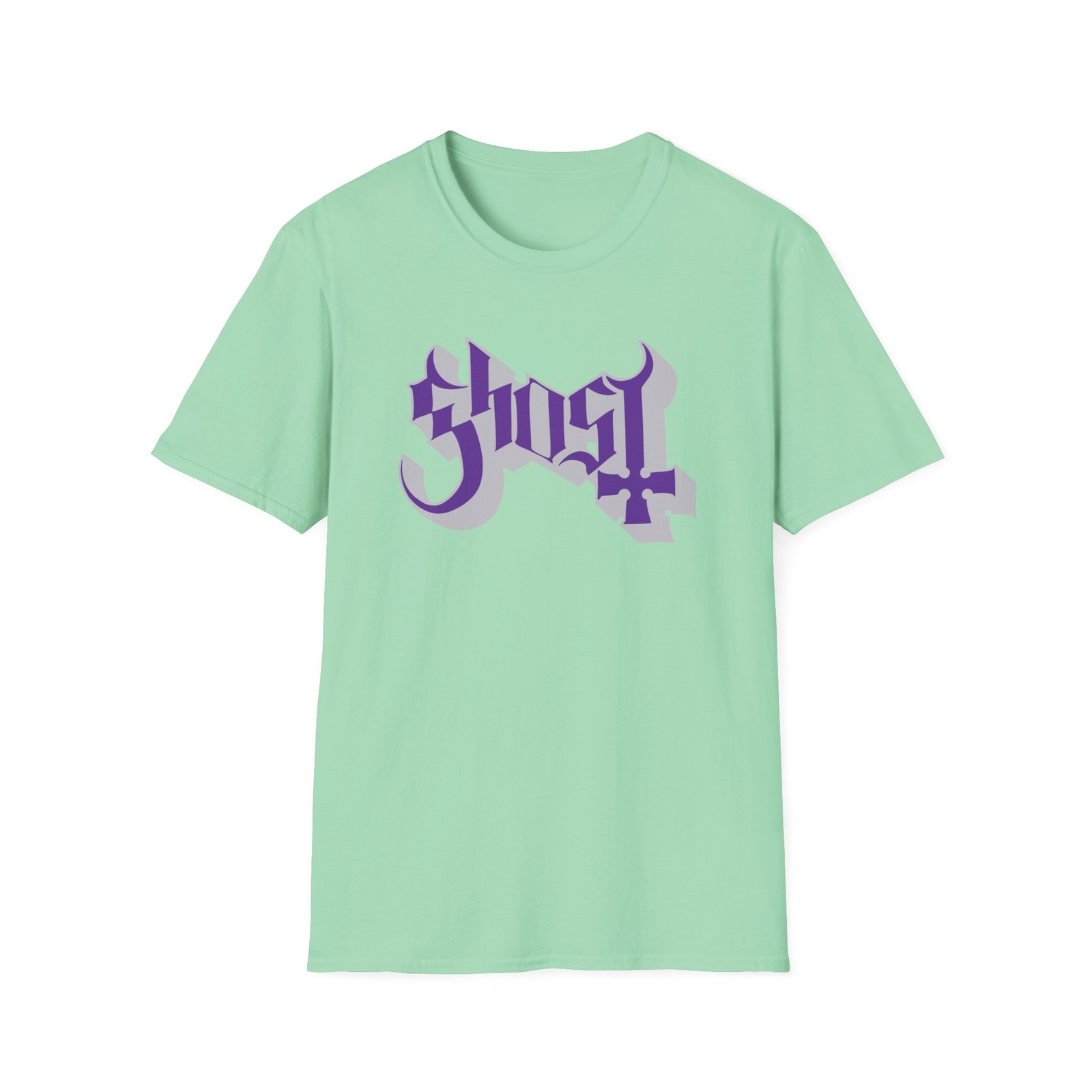 The Ghost Band Chrome Purple Skeletá unisex soft-style t-shirt puts a new spin on casual comfort. Made from very soft materials, this tee is 100% cotton for solid colors. Heather colors and sports grey include polyester. The shoulders have twill tape for improved durability. There are no side seams. The collar is made with ribbed knitting to prevent curling damage.