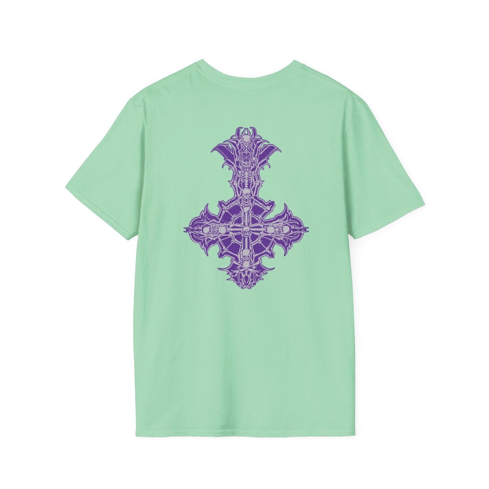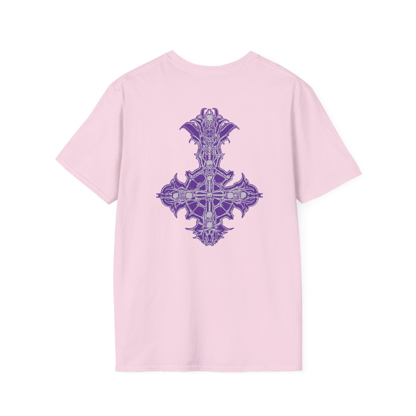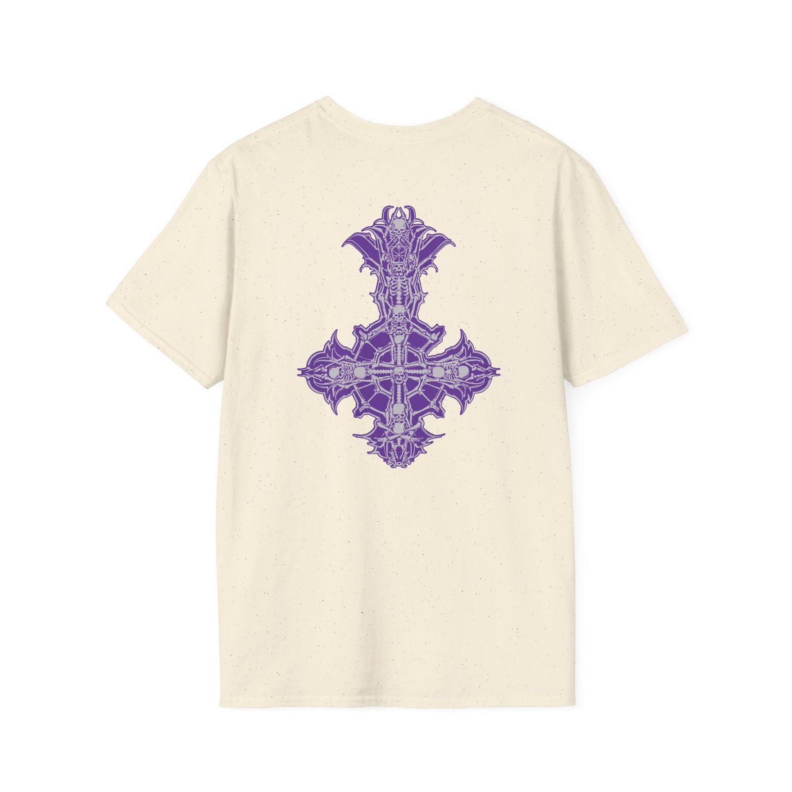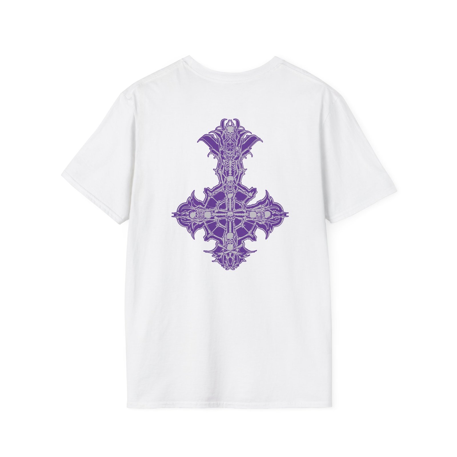 The Ghost Band Chrome Purple Skeletá unisex soft-style t-shirt puts a new spin on casual comfort. Made from very soft materials, this tee is 100% cotton for solid colors. Heather colors and sports grey include polyester. The shoulders have twill tape for improved durability. There are no side seams. The collar is made with ribbed knitting to prevent curling damage.