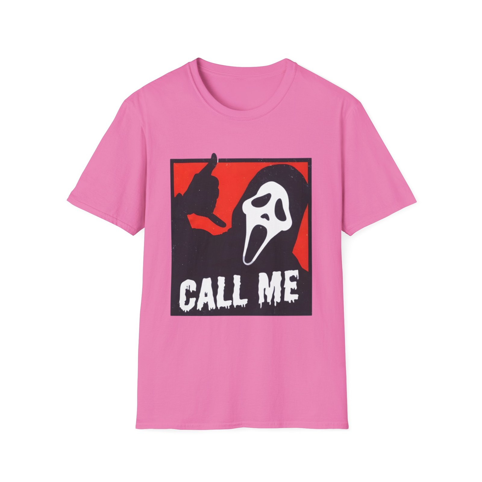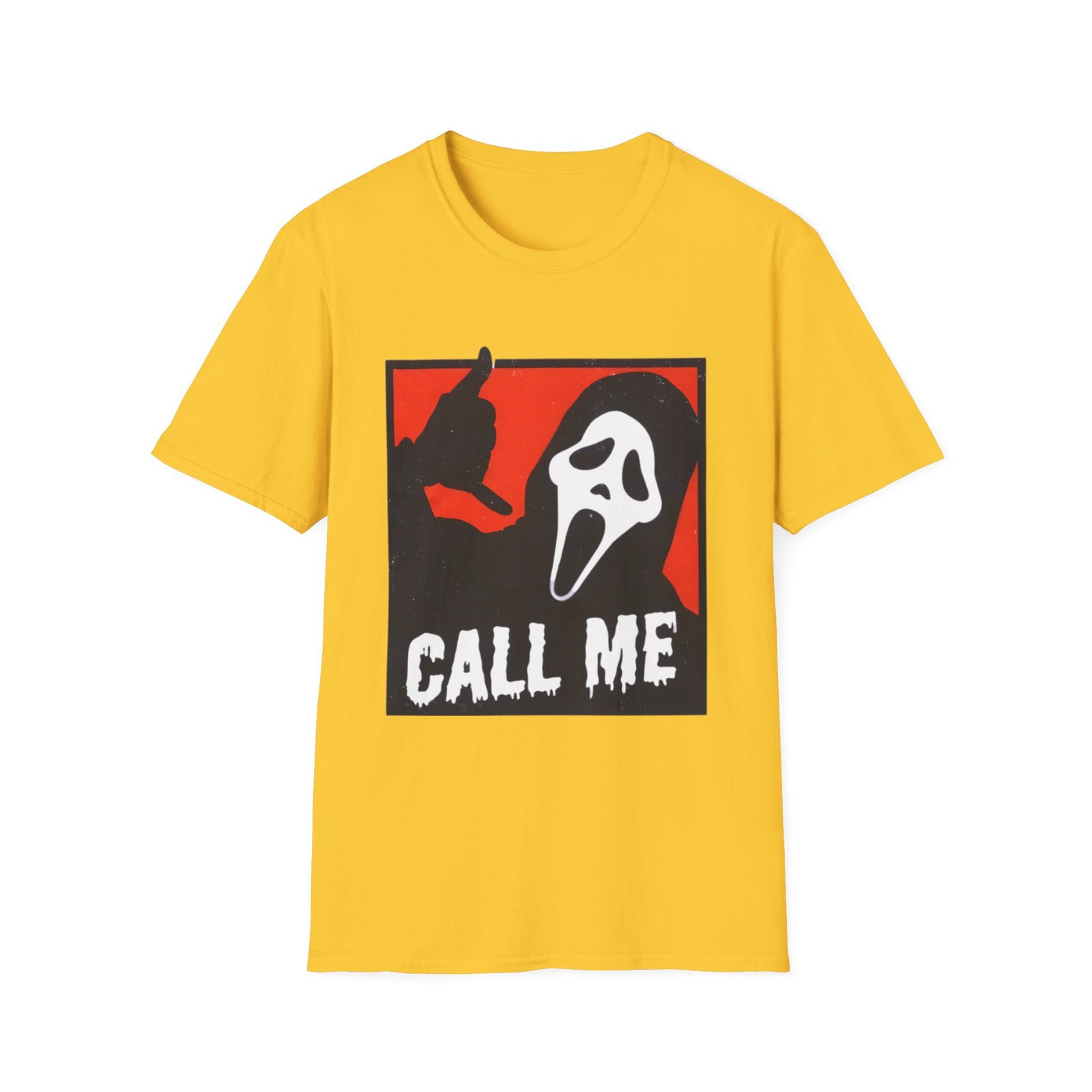 The Ghostface CALL ME unisex soft-style t-shirt puts a new spin on casual comfort. Made from very soft materials, this tee is 100% cotton for solid colors. Heather colors and sports grey include polyester. The shoulders have twill tape for improved durability. There are no side seams. The collar is made with ribbed knitting to prevent curling damage.