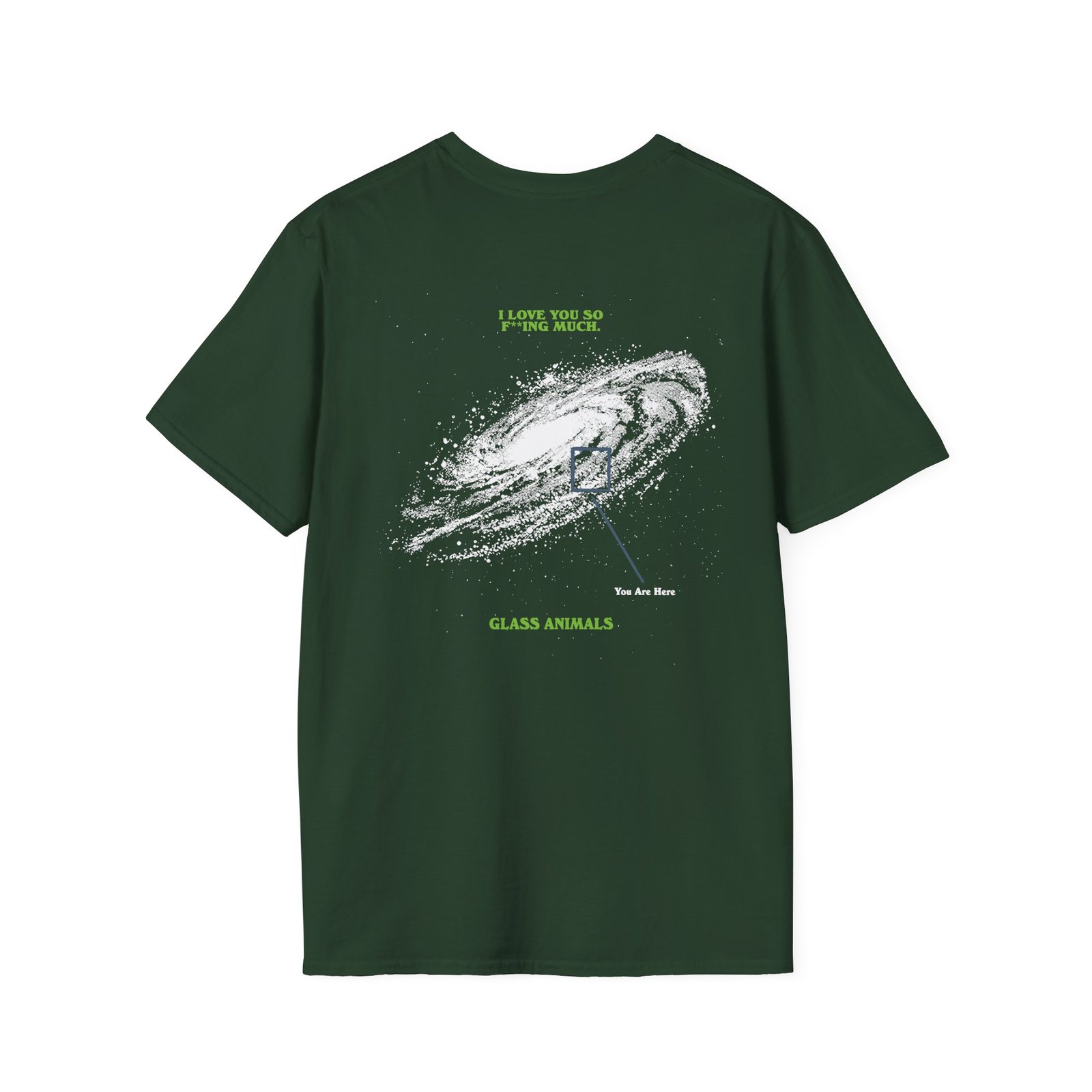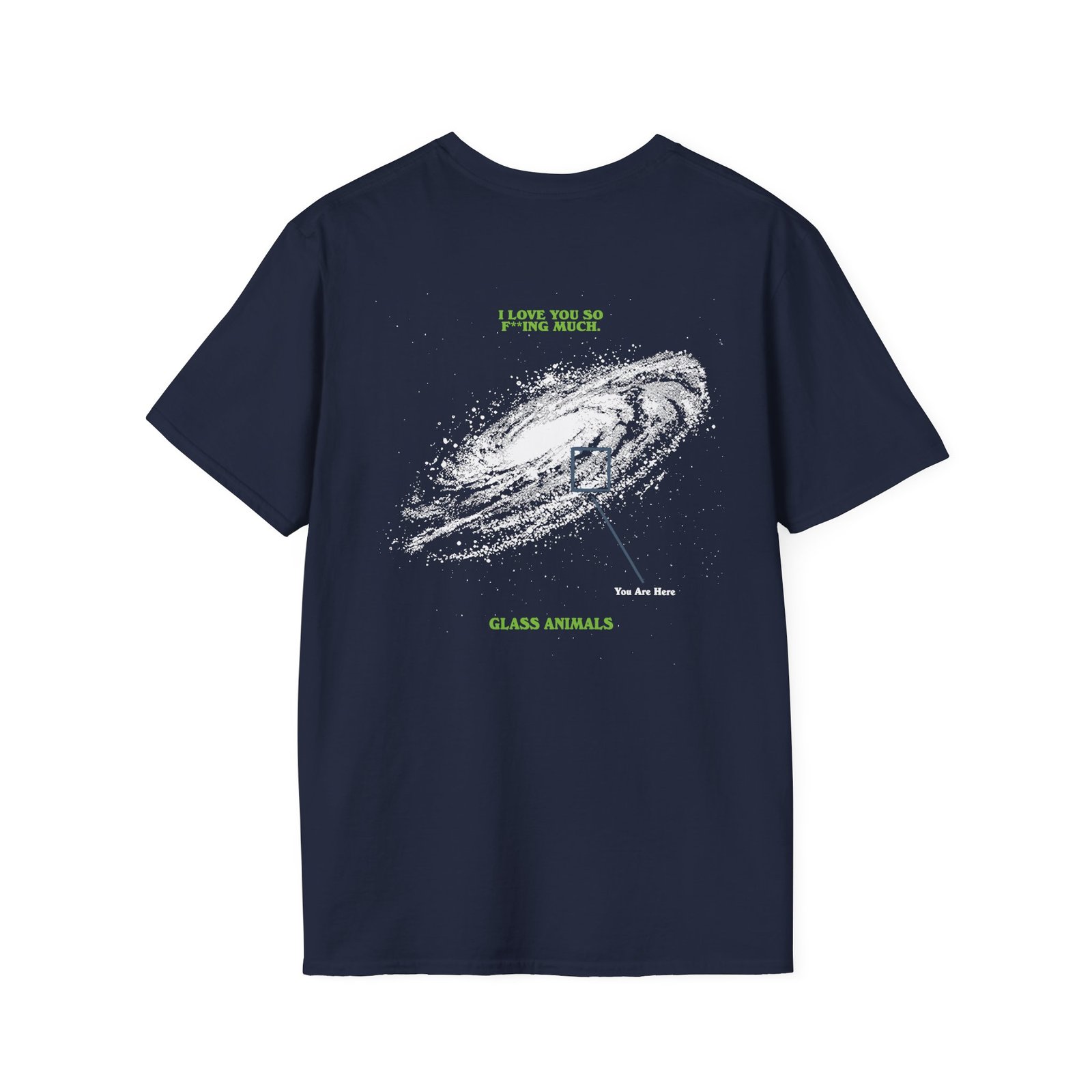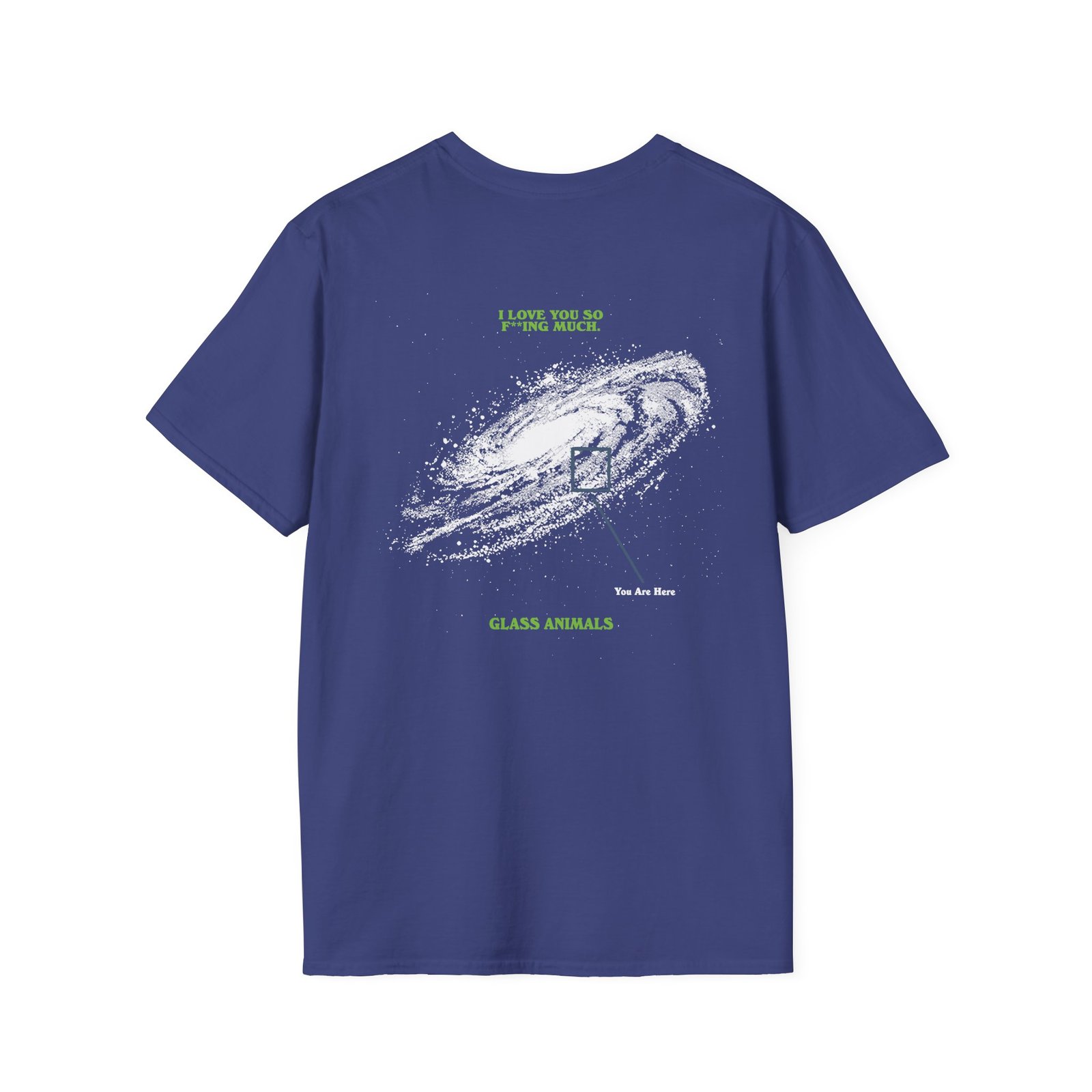 The Glass Animals You Are Here unisex soft-style t-shirt puts a new spin on casual comfort. Made from very soft materials, this tee is 100% cotton for solid colors. Heather colors and sports grey include polyester. The shoulders have twill tape for improved durability. There are no side seams. The collar is made with ribbed knitting to prevent curling damage.