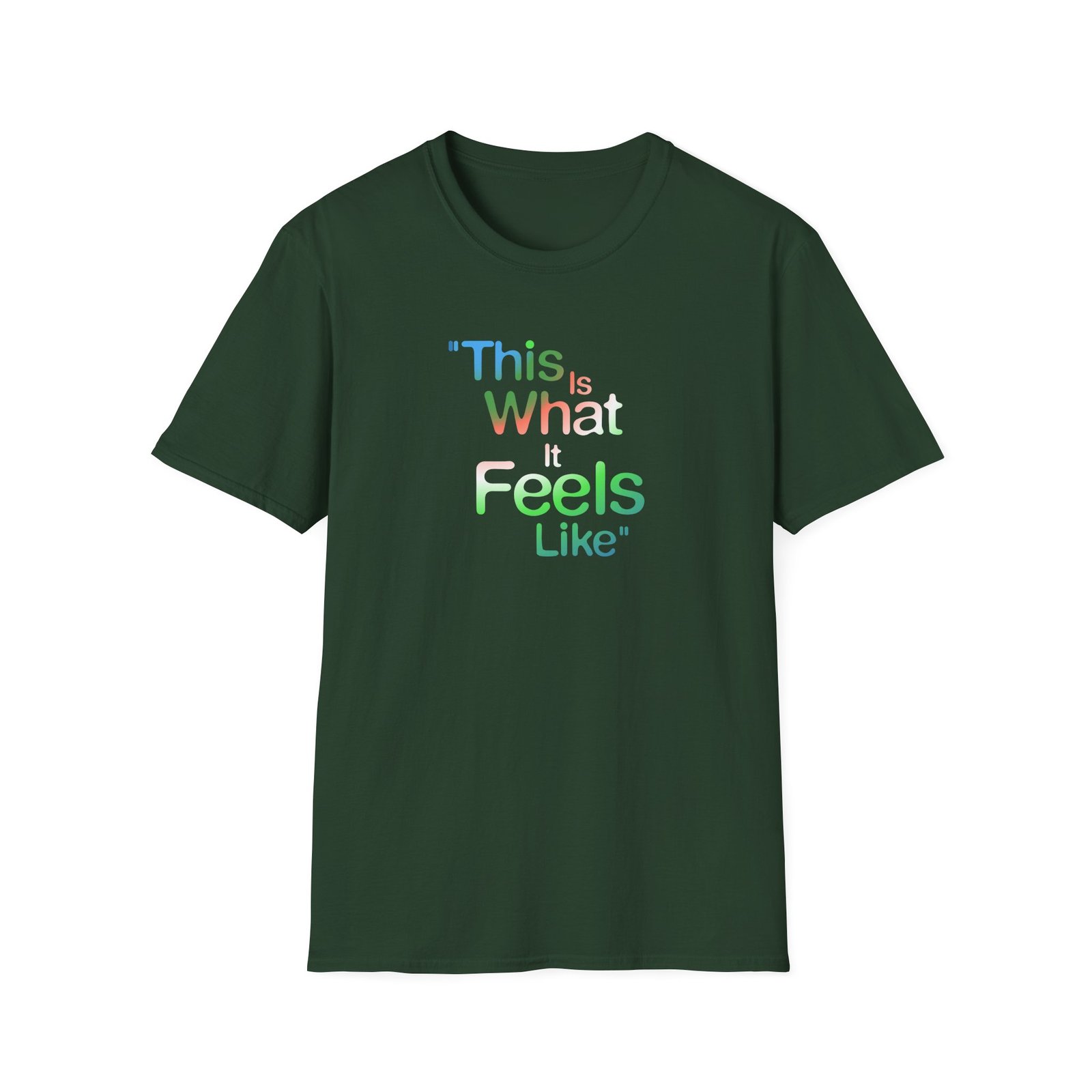 The Gracie Abrams This Is What It Feels Like Unisex Softstyle T-Shirt puts a new spin on casual comfort. Made from very soft materials, this tee is 100% cotton for solid colors. Heather colors and sports grey include polyester. The shoulders have twill tape for improved durability. There are no side seams. The collar is made with ribbed knitting to prevent curling damage.