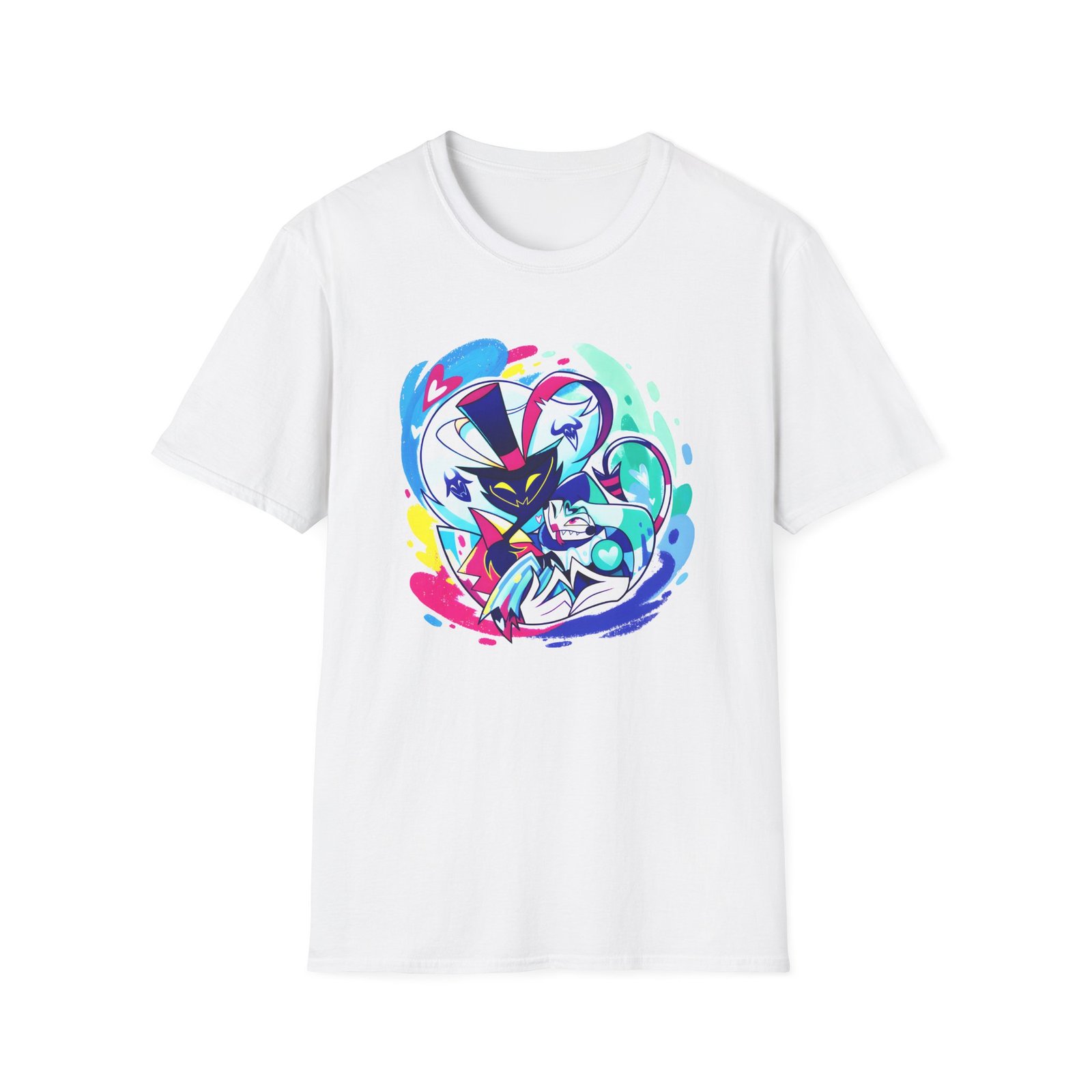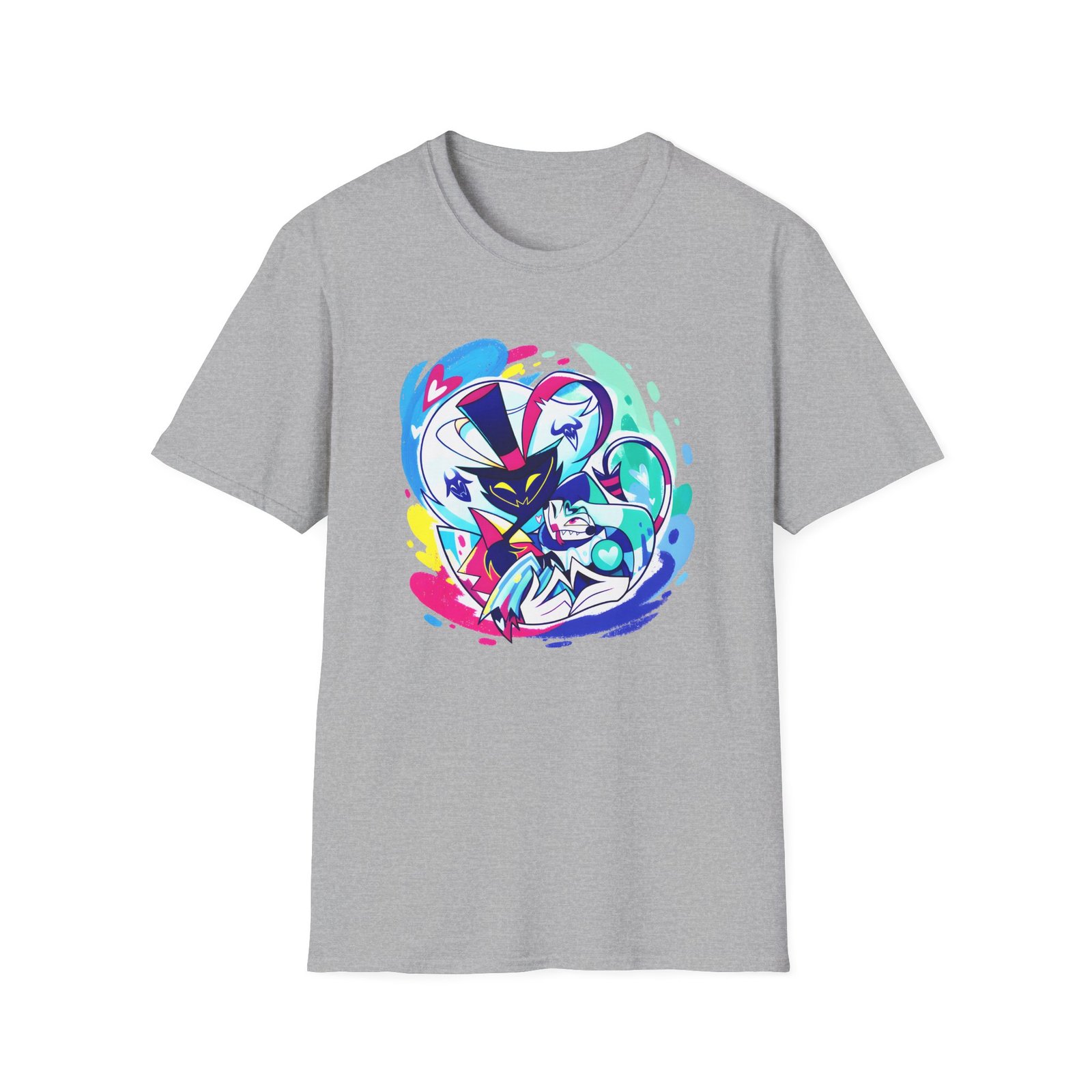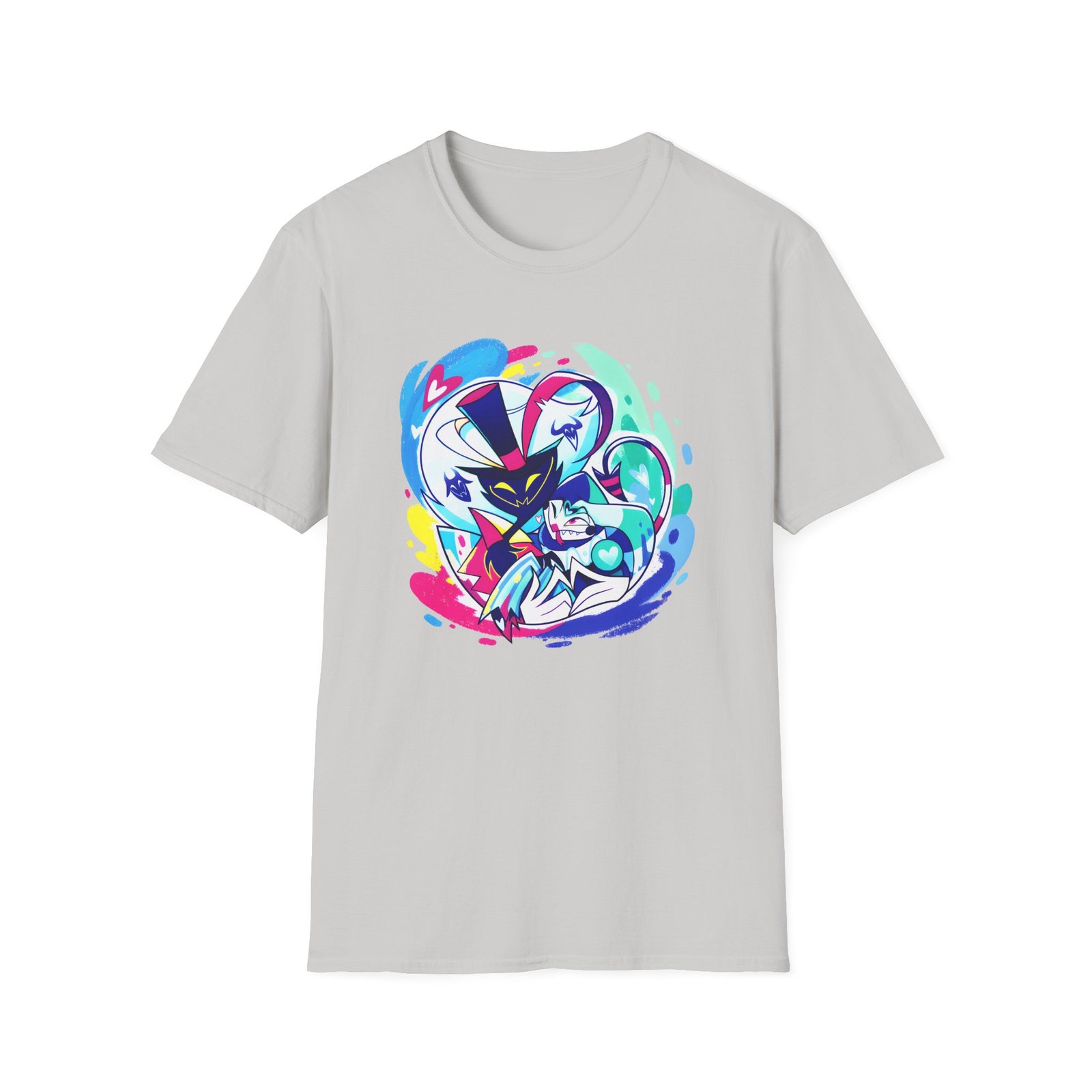 The Helluva Boss Ozzie & Fizz Micro Ribbed unisex soft-style t-shirt puts a new spin on casual comfort. Made from very soft materials, this tee is 100% cotton for solid colors. Heather colors and sports grey include polyester. The shoulders have twill tape for improved durability. There are no side seams. The collar is made with ribbed knitting to prevent curling damage.