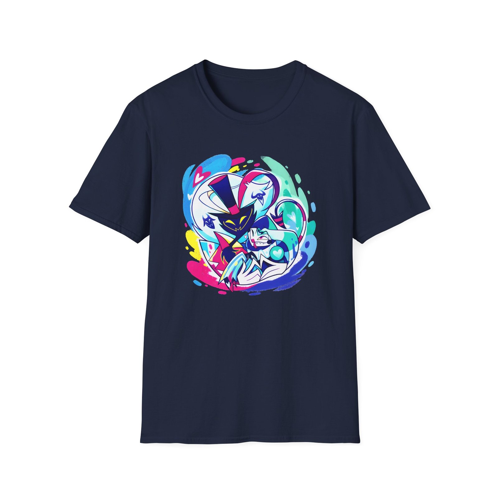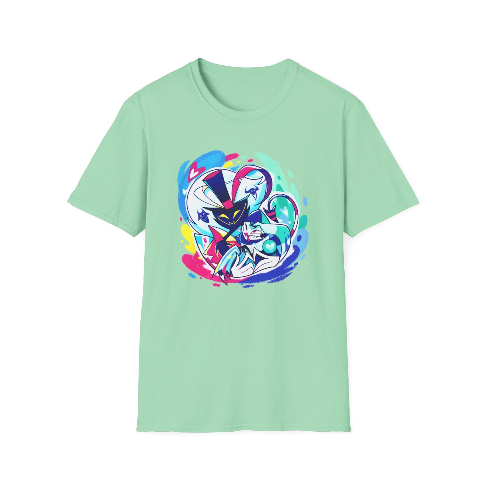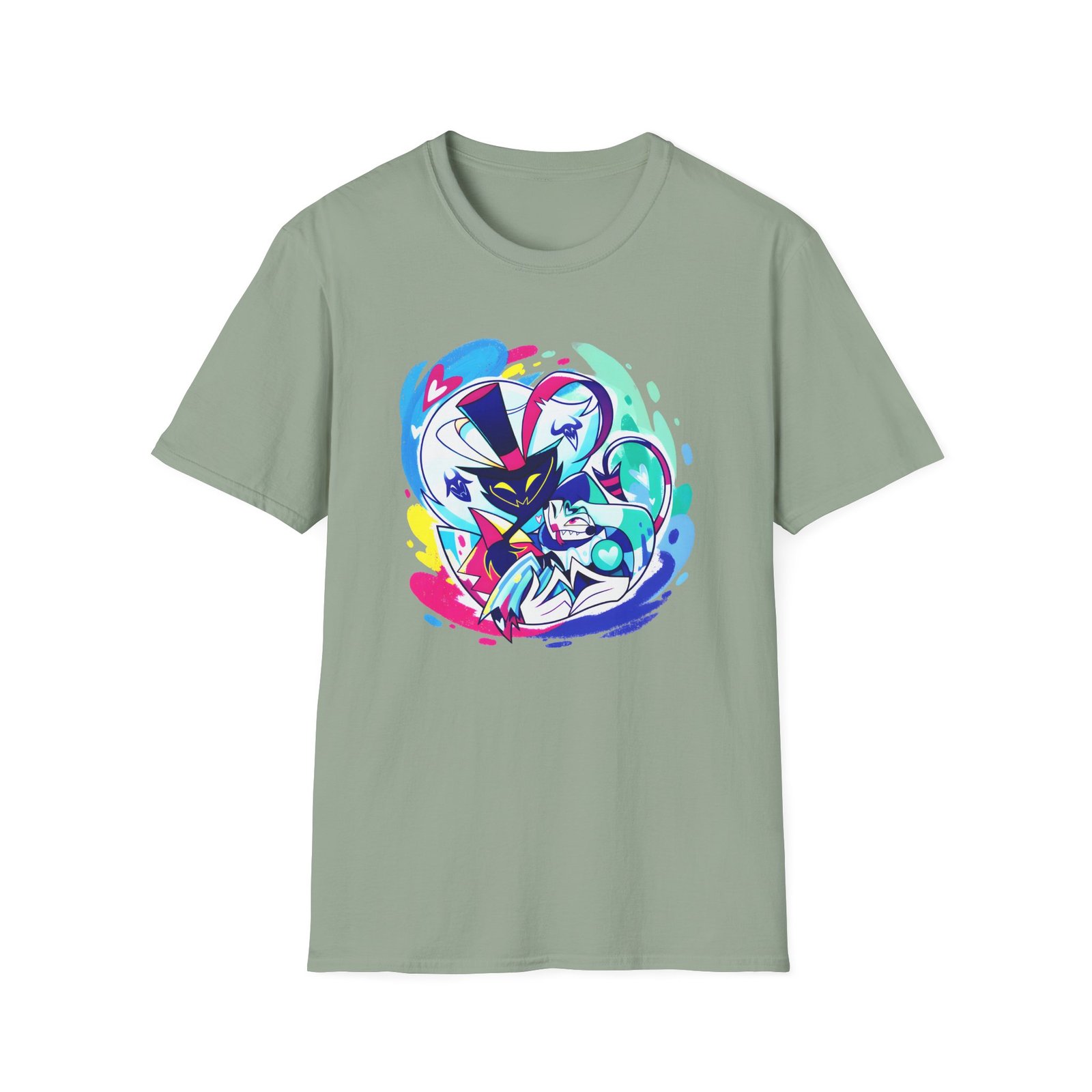 The Helluva Boss Ozzie & Fizz Micro Ribbed unisex soft-style t-shirt puts a new spin on casual comfort. Made from very soft materials, this tee is 100% cotton for solid colors. Heather colors and sports grey include polyester. The shoulders have twill tape for improved durability. There are no side seams. The collar is made with ribbed knitting to prevent curling damage.
