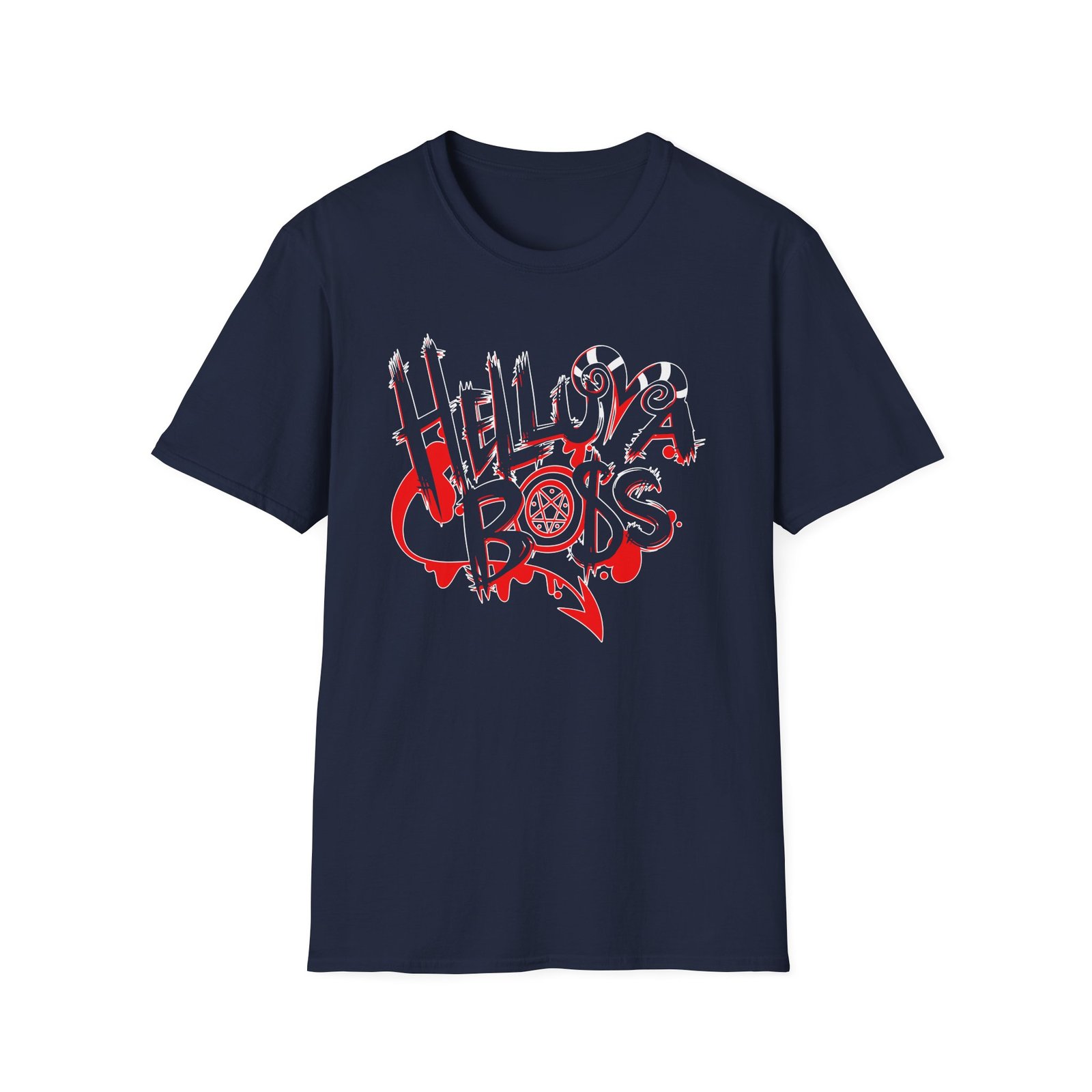 The Helluva Boss unisex soft-style t-shirt puts a new spin on casual comfort. Made from very soft materials, this tee is 100% cotton for solid colors. Heather colors and sports grey include polyester. The shoulders have twill tape for improved durability. There are no side seams. The collar is made with ribbed knitting to prevent curling damage.