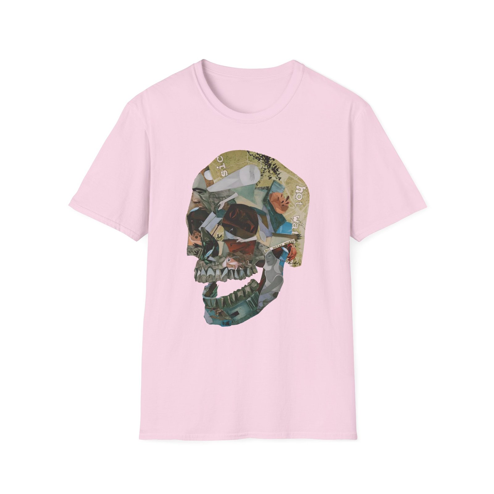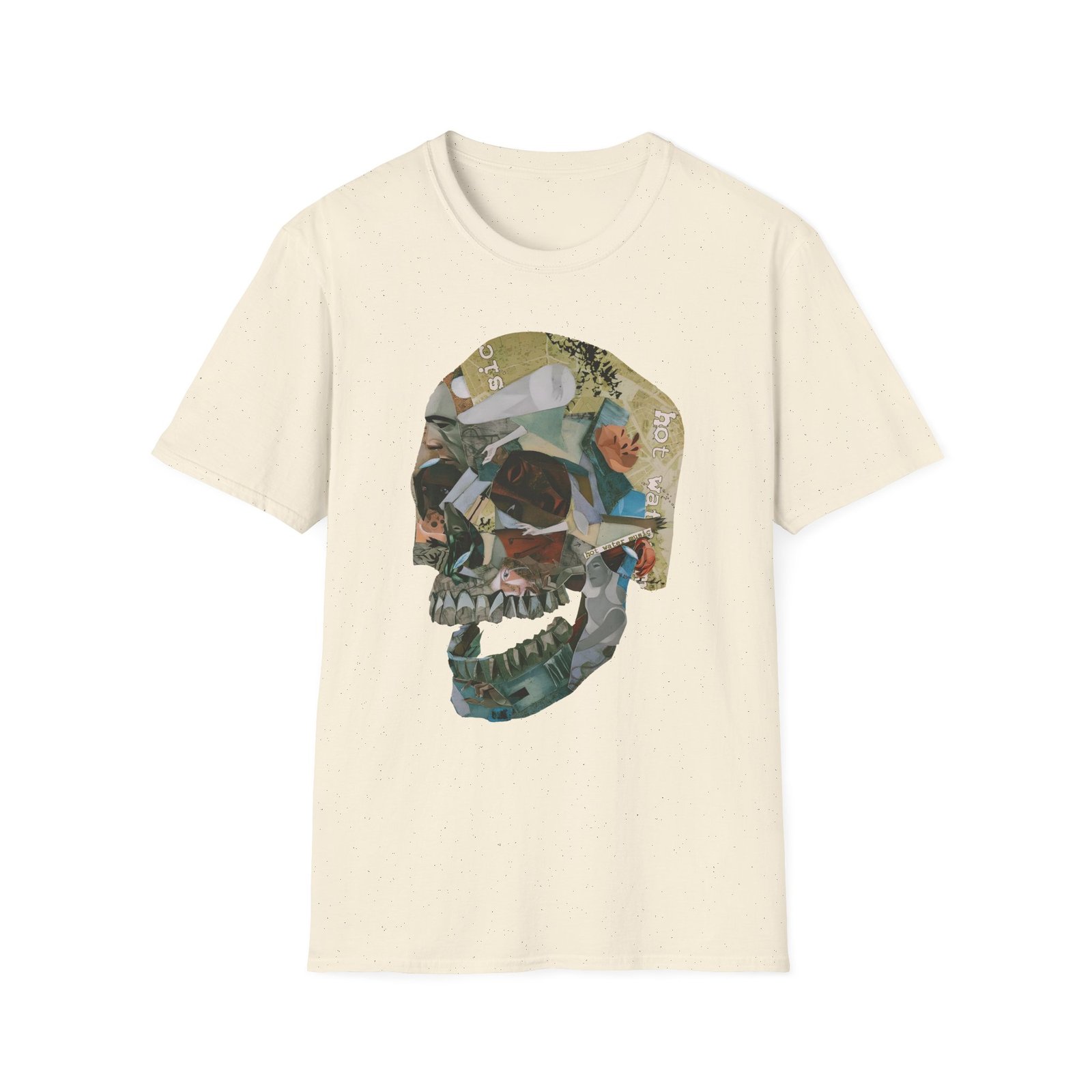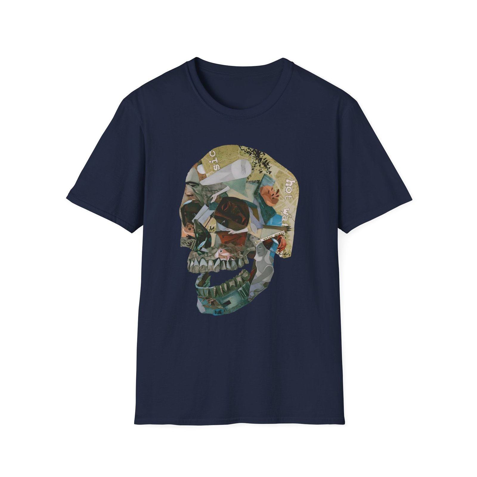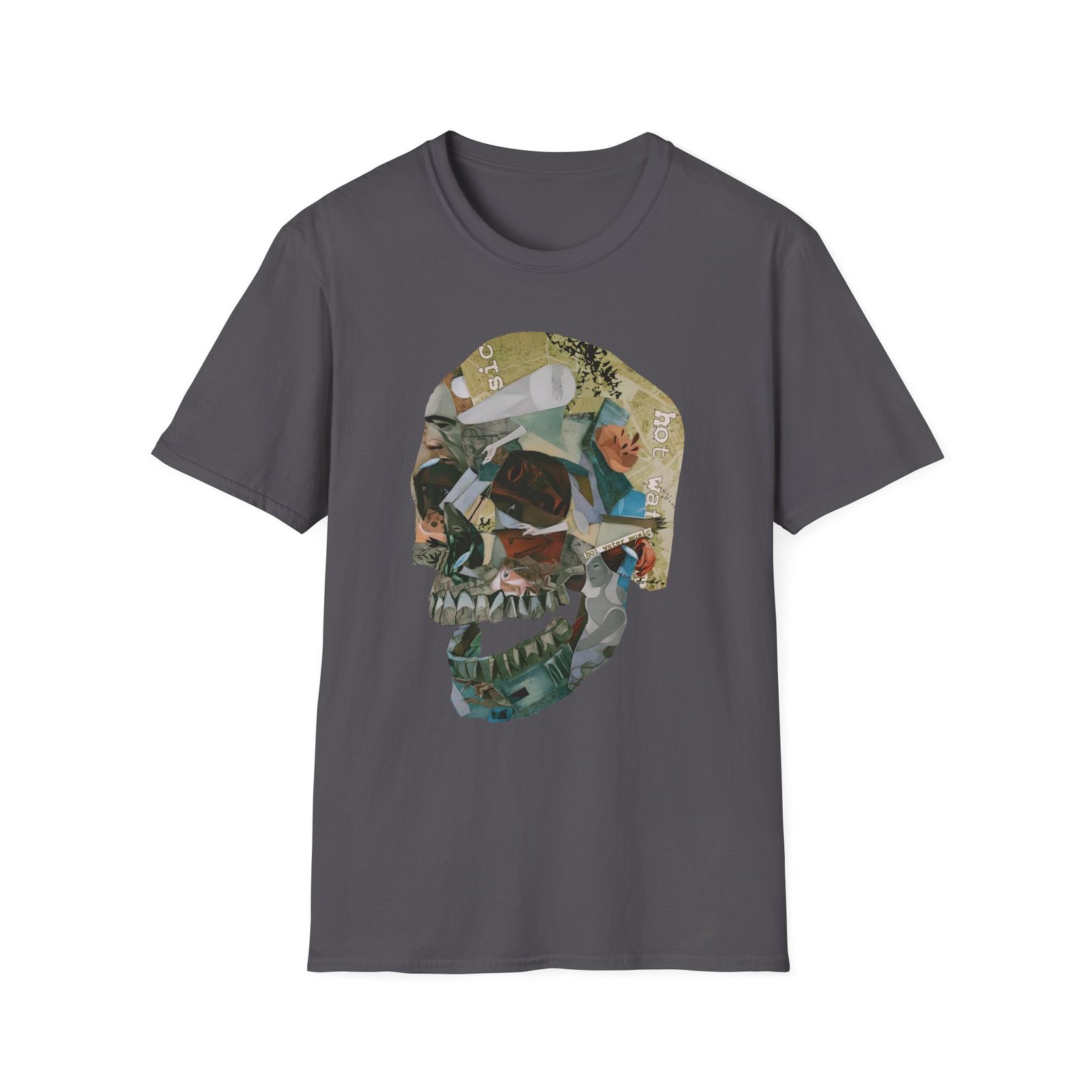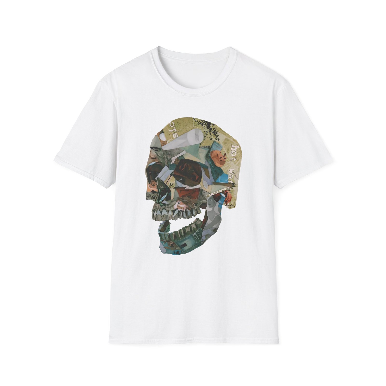 The Hot Water Music Album Collage Skull unisex soft-style t-shirt puts a new spin on casual comfort. Made from very soft materials, this tee is 100% cotton for solid colors. Heather colors and sports grey include polyester. The shoulders have twill tape for improved durability. There are no side seams. The collar is made with ribbed knitting to prevent curling damage.