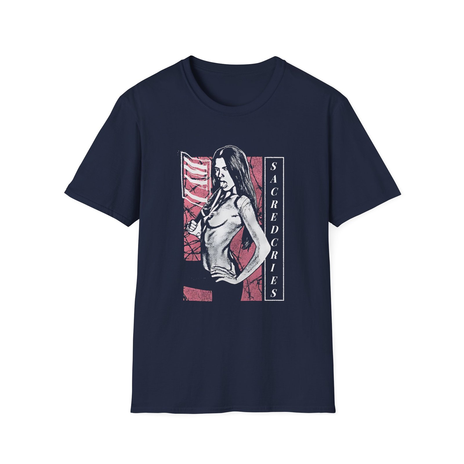 The I AM Sacred Cries unisex soft-style t-shirt puts a new spin on casual comfort. Made from very soft materials, this tee is 100% cotton for solid colors. Heather colors and sports grey include polyester. The shoulders have twill tape for improved durability. There are no side seams. The collar is made with ribbed knitting to prevent curling damage.
