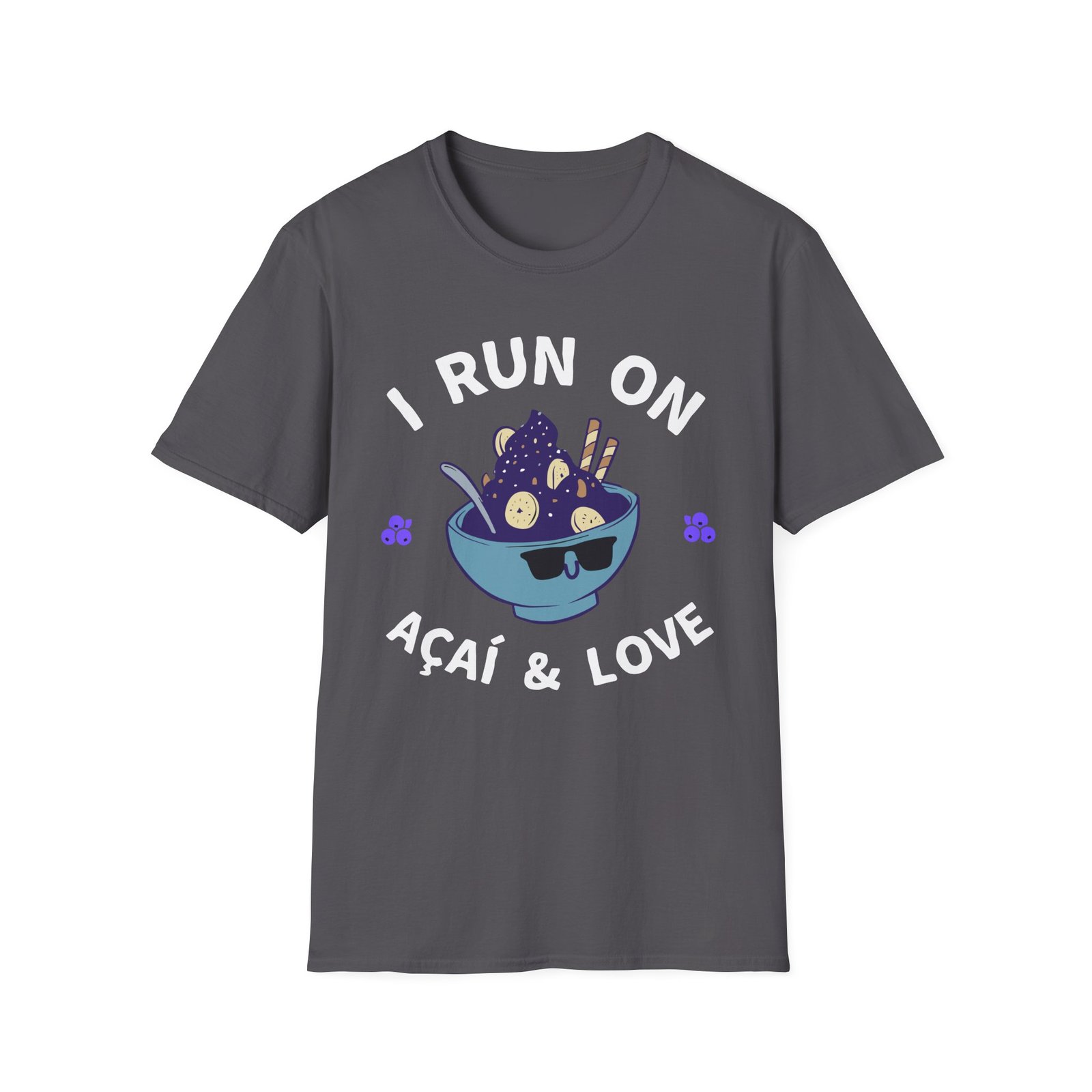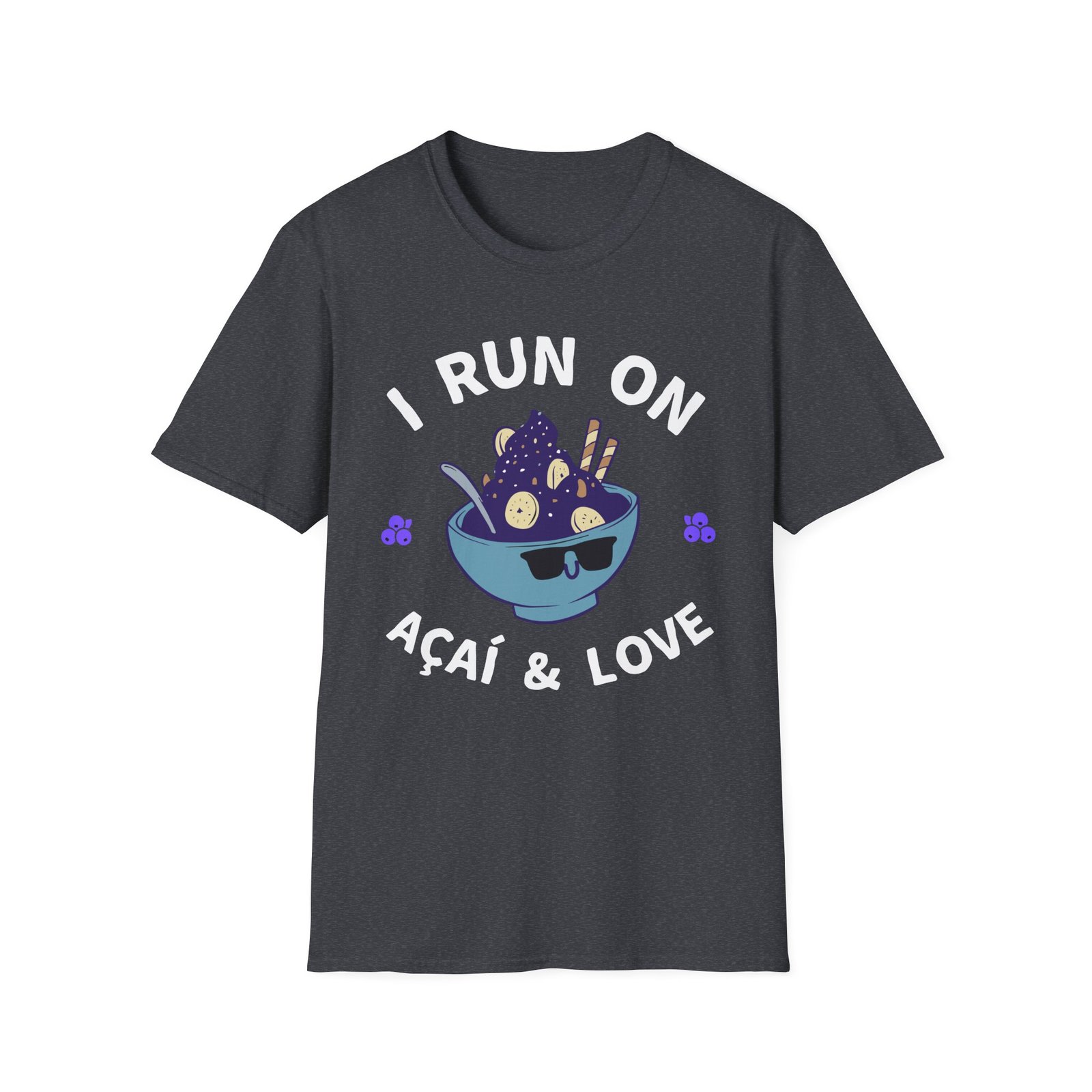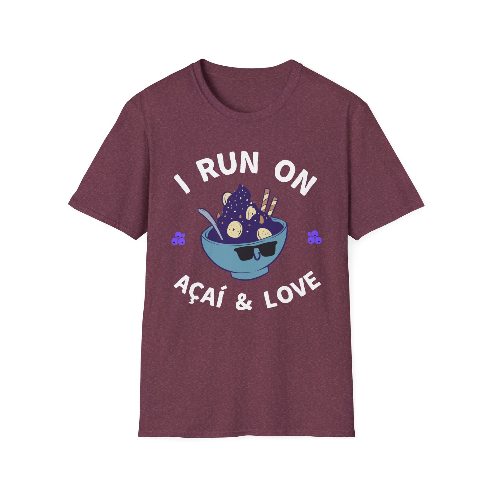 The I Run on Acai & Love unisex soft-style t-shirt puts a new spin on casual comfort. Made from very soft materials, this tee is 100% cotton for solid colors. Heather colors and sports grey include polyester. The shoulders have twill tape for improved durability. There are no side seams. The collar is made with ribbed knitting to prevent curling damage.