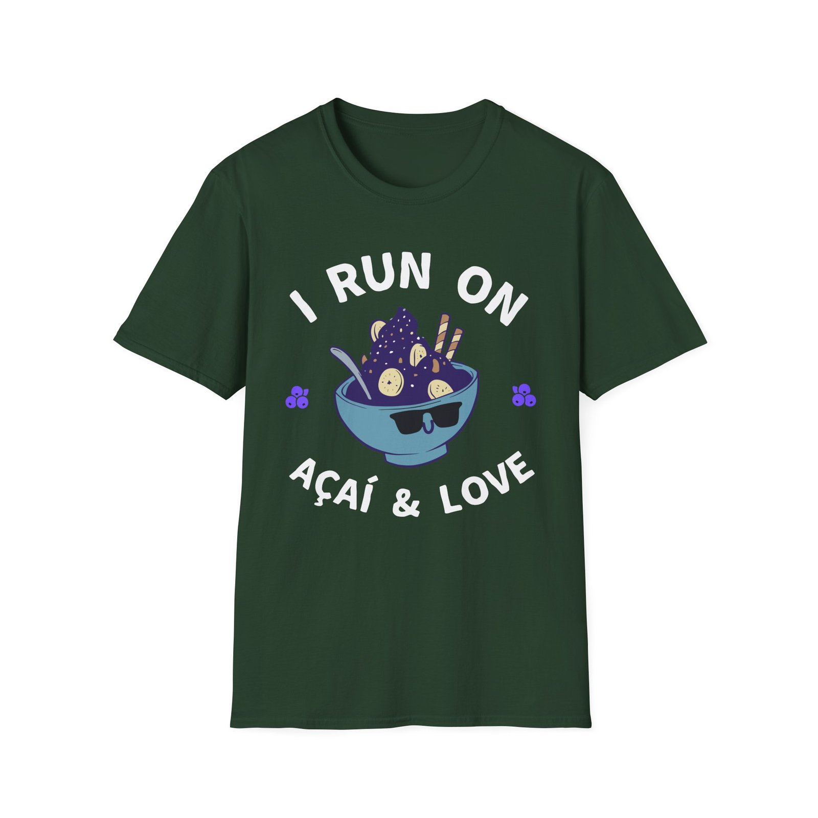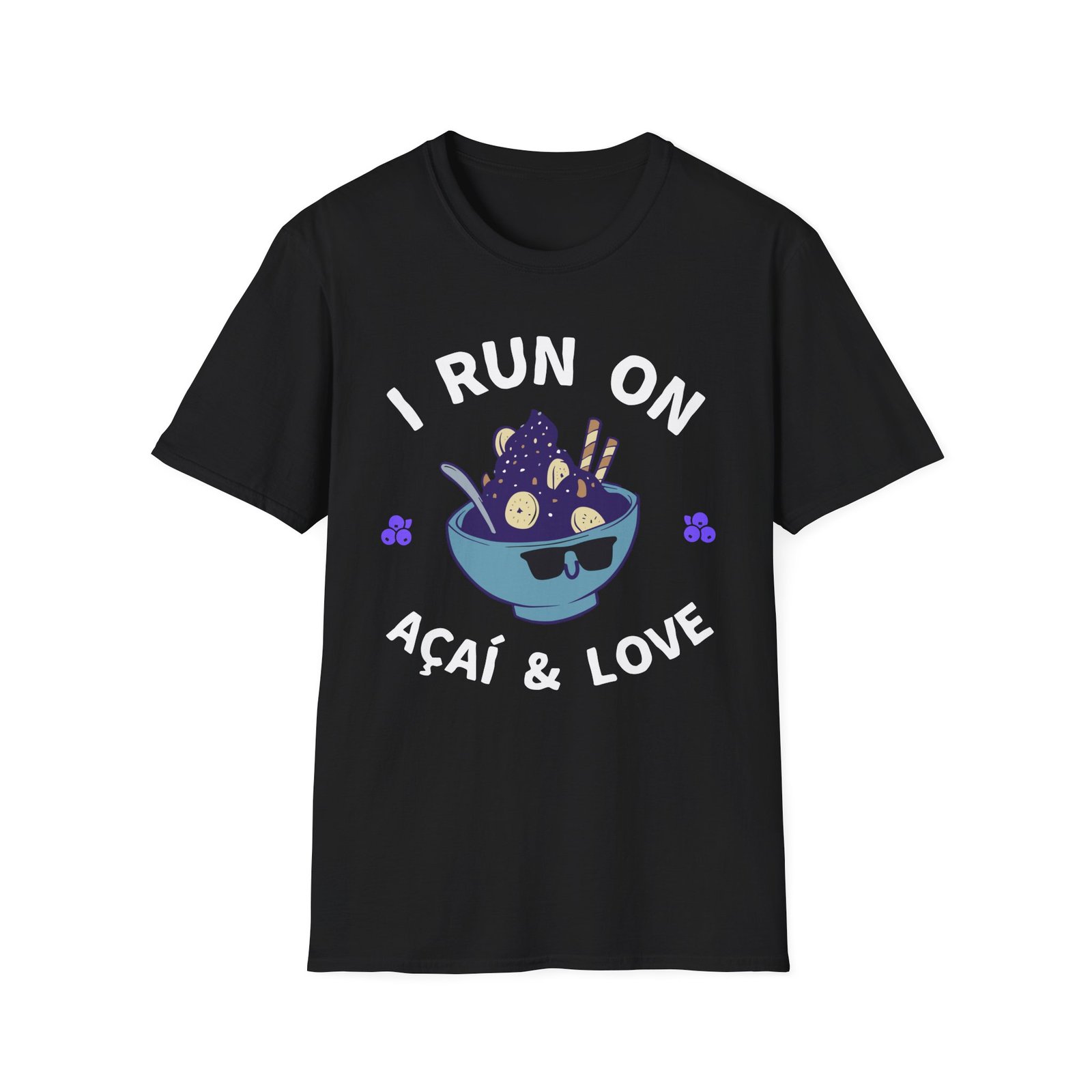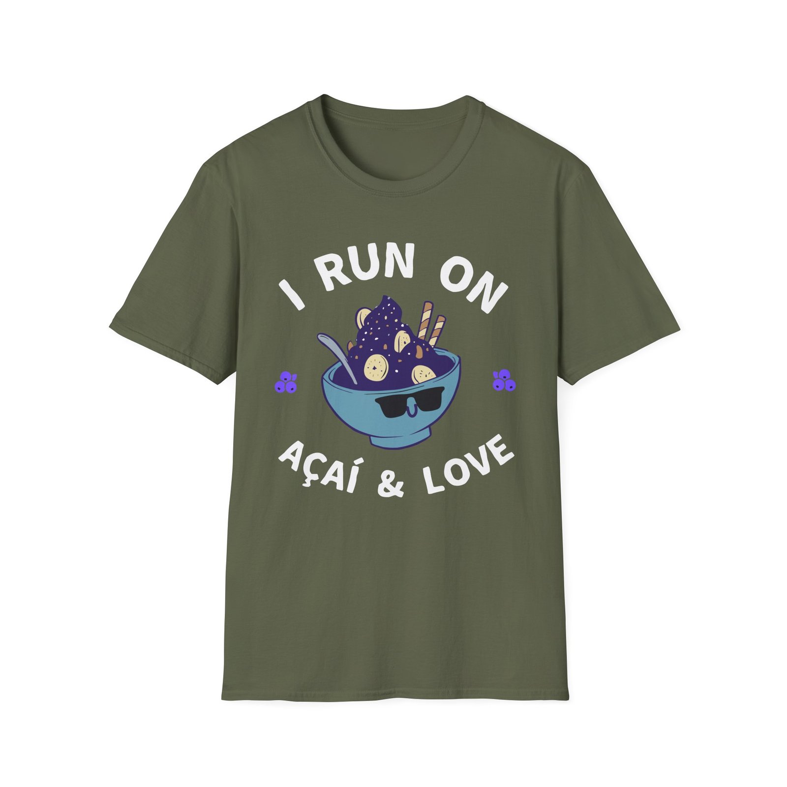The I Run on Acai & Love unisex soft-style t-shirt puts a new spin on casual comfort. Made from very soft materials, this tee is 100% cotton for solid colors. Heather colors and sports grey include polyester. The shoulders have twill tape for improved durability. There are no side seams. The collar is made with ribbed knitting to prevent curling damage.