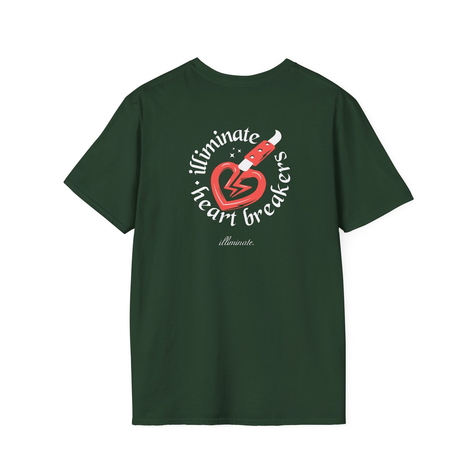 The Illiminate Heart Breakers unisex soft-style t-shirt puts a new spin on casual comfort. Made from very soft materials, this tee is 100% cotton for solid colors. Heather colors and sports grey include polyester. The shoulders have twill tape for improved durability. There are no side seams. The collar is made with ribbed knitting to prevent curling damage.
