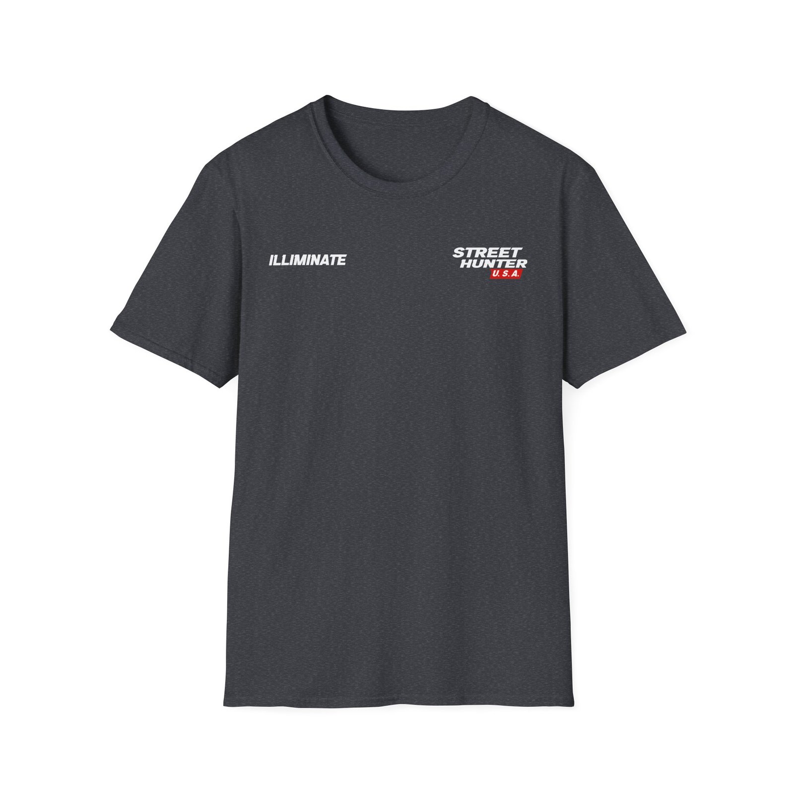 The Illiminate Illhunter unisex soft-style t-shirt puts a new spin on casual comfort. Made from very soft materials, this tee is 100% cotton for solid colors. Heather colors and sports grey include polyester. The shoulders have twill tape for improved durability. There are no side seams. The collar is made with ribbed knitting to prevent curling damage.